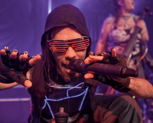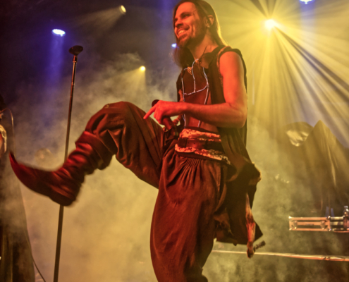 Einen Tag vor ihrer Show in Wien haben Vogelfrey ihr siebentes Album mit dem Titel ‚Make Mittelalter Great Again‘ veröffentlicht. Sie starteten ihre Show dann auch gleich mit dem Titeltrack des neuen Werkes. Auch wenn die Hamburger schon seit einigen Jahren nicht mehr in Wien auf der Bühne standen, ging hier gleich richtig die Post ab. Beim Song ‚1000 Jahre Bier‘ holte Sänger Jannick die Showeffekte aus der Kiste – mit seinen Laserstrahlhandschuhen zerschnitt er in neongrün die Dunkelheit. Beim inzwischen schon sechs Jahre altem Stück ‚Magst du Mittelalter?‘ zeigten dann die Wiener zum ersten mal, dass sie auch richtig laut mitsingen konnten. „Man bekommt langsam den Eindruck, als hättet ihr Bock“ sagte Jannick bezüglich der guten Stimmung. Dann gab es wieder was vom neuen Album, und trotzdem kannte diesen Song jeder. Vogelfrey spielten eine starke Coverversion vom Scooter Hit ‚How Much Is The Fish?‘. Während des Songs gab es zwei große Gummifische als Spielzeug fürs Publikum und es wurde weiterhin lautstark mitgegrölt. „Bitte so laut, dass es Mr. Hurley auch hören kann“ – und so schallte es nun fast in Stadionlautstärke ‚lalalallalalaaaala‘ durch die gesamte SimmCity. Bei ‚Nein, Mann‘ begannen die Fans dann auch mit dem Tanzen – super Stimmung jetzt – die Fans waren richtig gut vorbereitet und kannten jeden Song. Vogelfrey waren bei drei Shows der Mr. Hurley Tour mit dabei und sagten „danke Wien für den tollen Tourabschluss für uns“. Die Hamburger Band spielte eine starke, etwa vierzig minütige Show und wurde mit einem langanhaltenden Jubel verabschiedet.