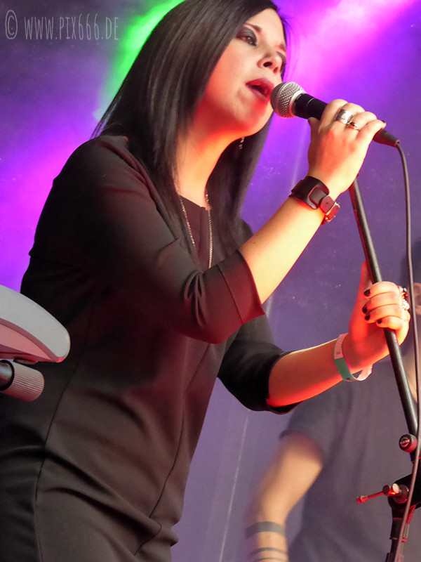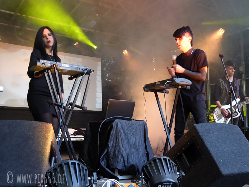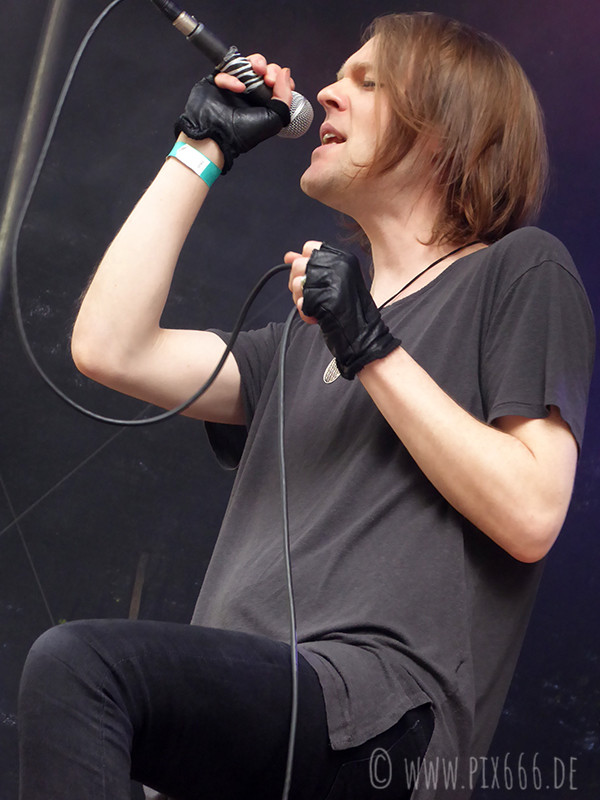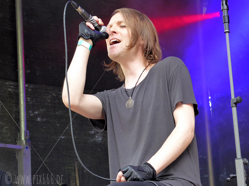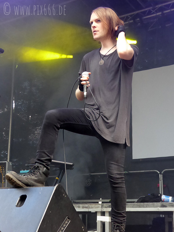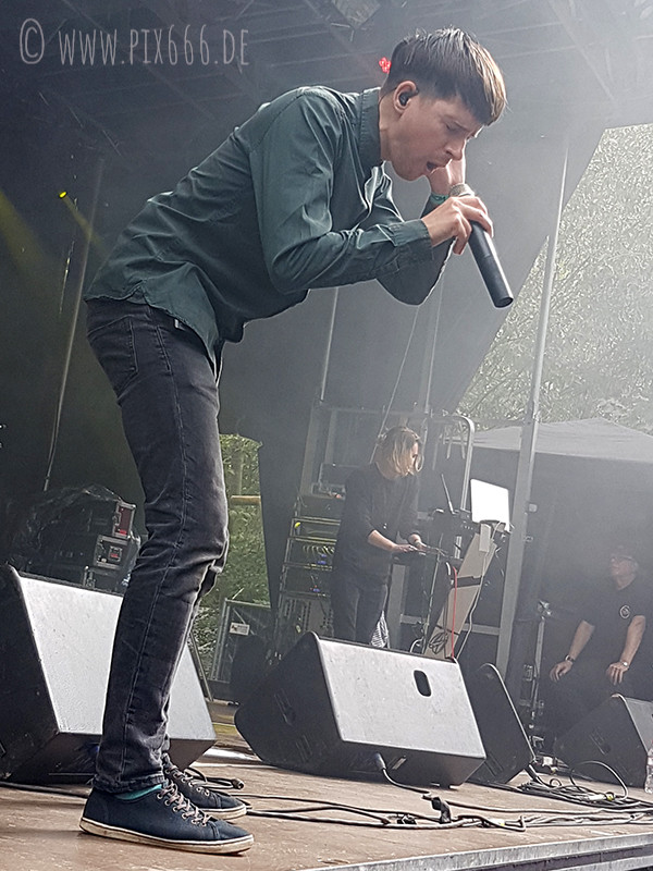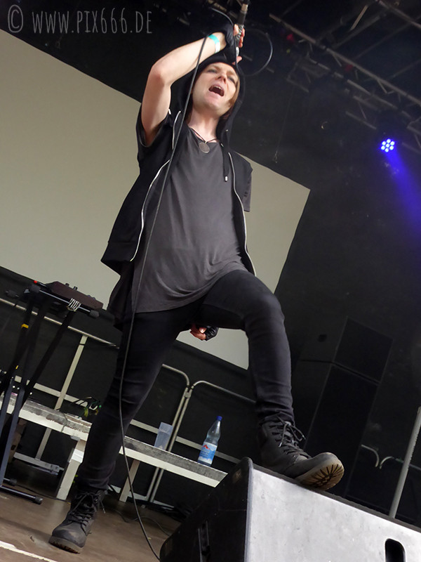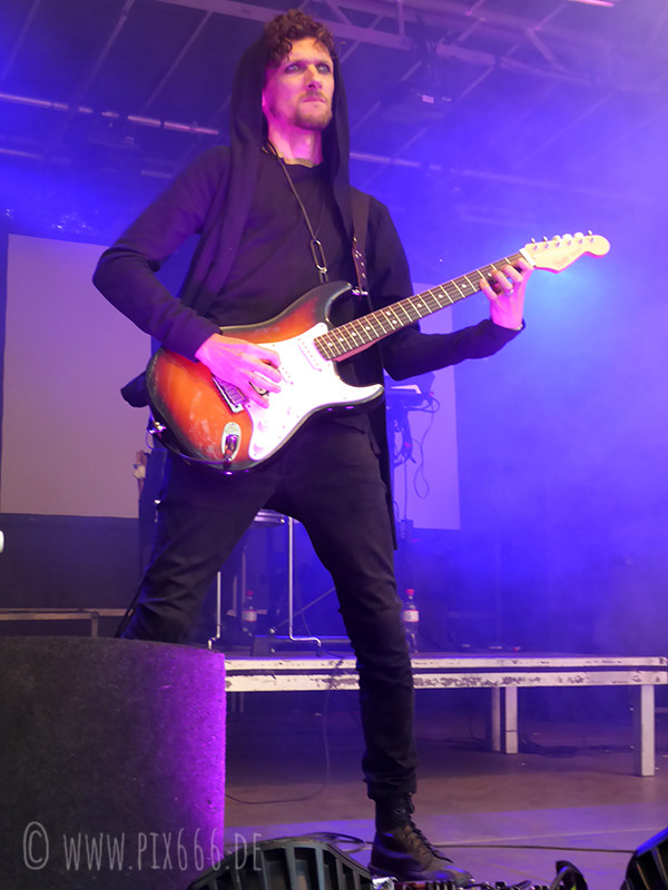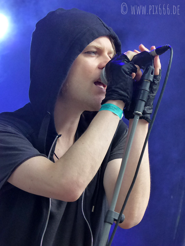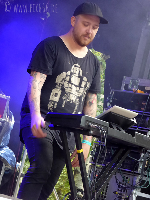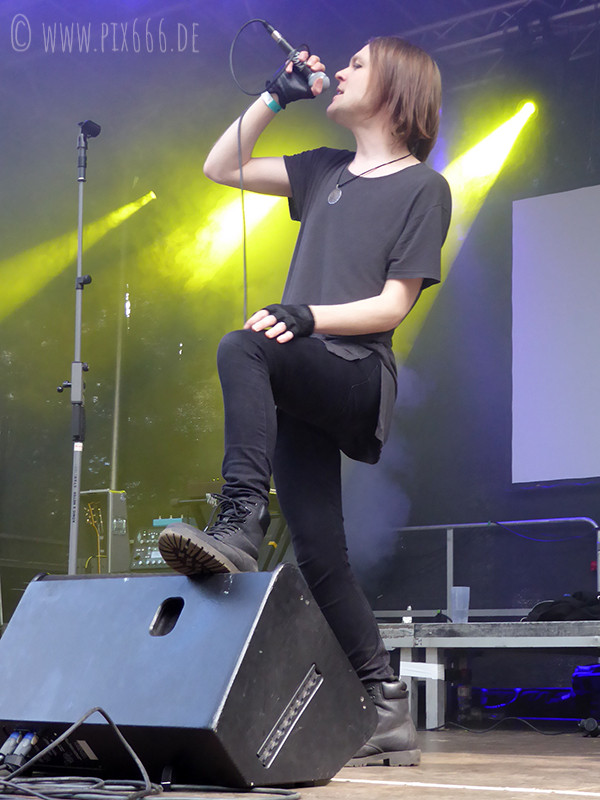 Der Opener des letzen Festivaltages waren bei tollem Sonnenschein die Norweger ESSENCE OF MIND. Bereits um 11.50 Uhr begann das Konzert der Elektro-Rock Band aus dem Norden Europas. Nach 2 Konzerttagen und kurzen Nächten ist es nicht das beste Los, so früh auf die Bühne zu müssen. Trotzdem versammelten sich immerhin ca. 300 Fans vor der Weidenbogen Bühne. Einige von ihnen hatten sogar norwegischen Flaggen dabei. Essence of Mind spielten vorwiegend Titel vom 2015 er Album ‚The Break Up!‘. Das Publikum hatte sichtlich Spaß und das 7 Titel umfassende Set verging wie im Flug. Ein gelungener Start in den dritten Tag NCN Festival.