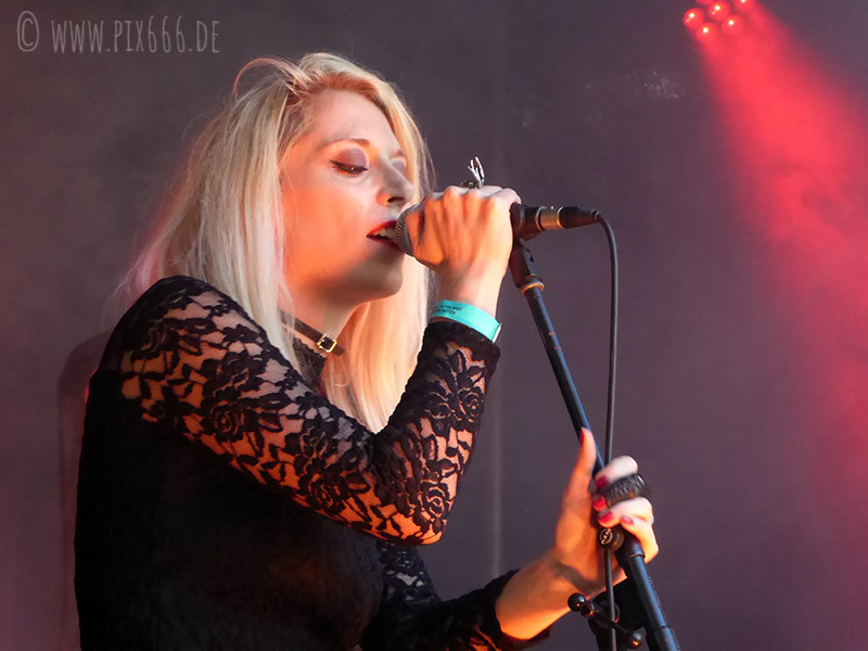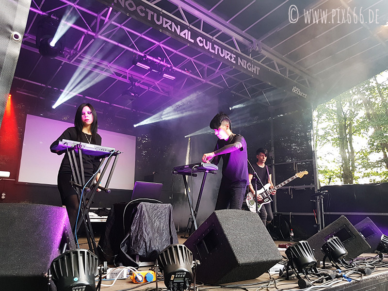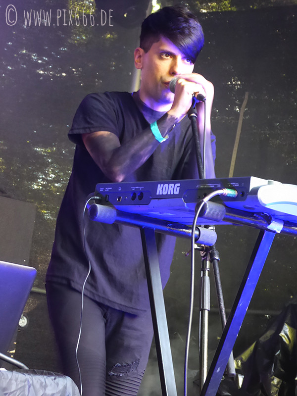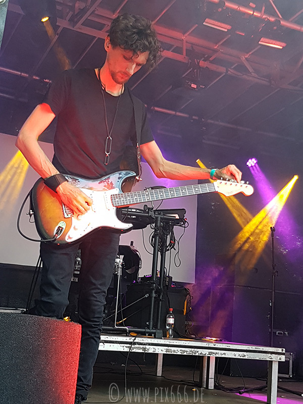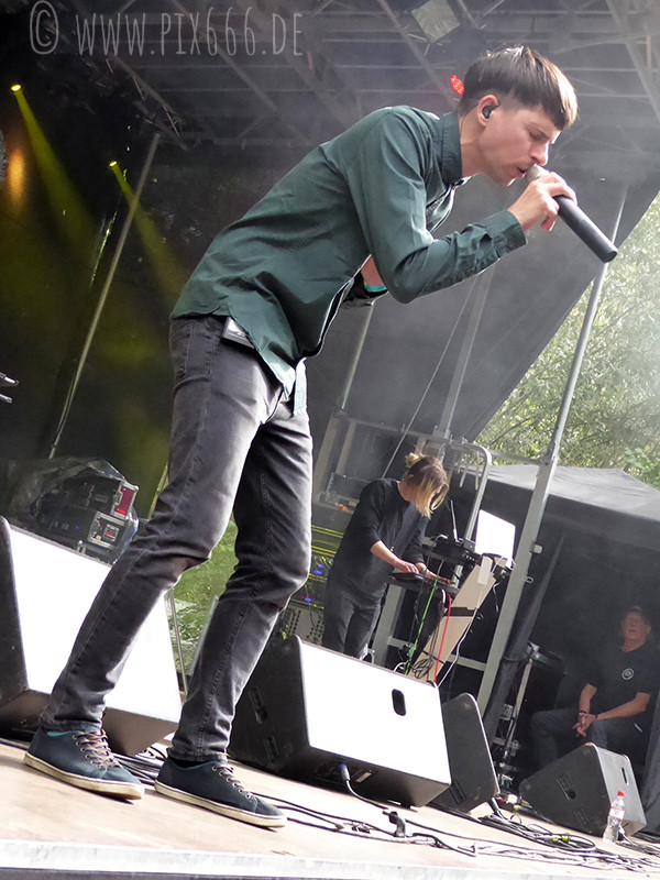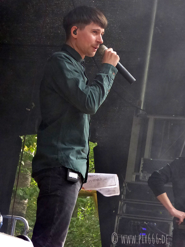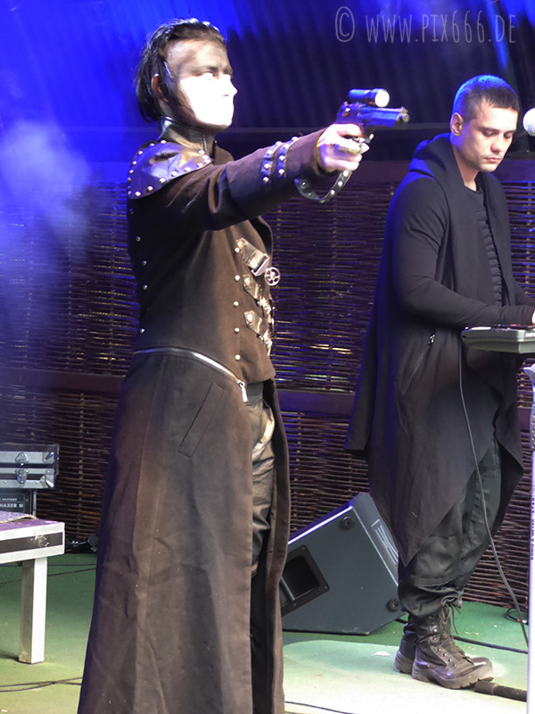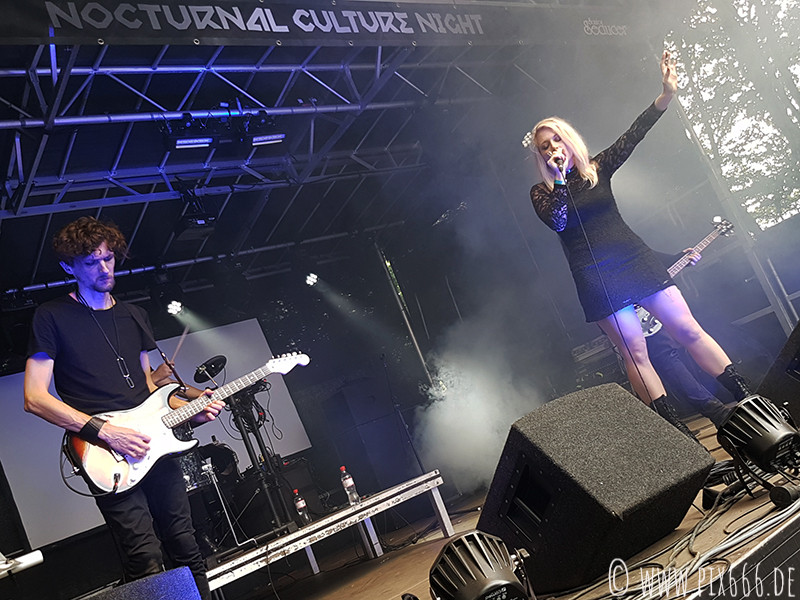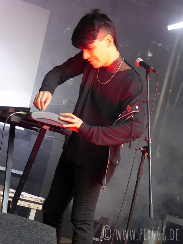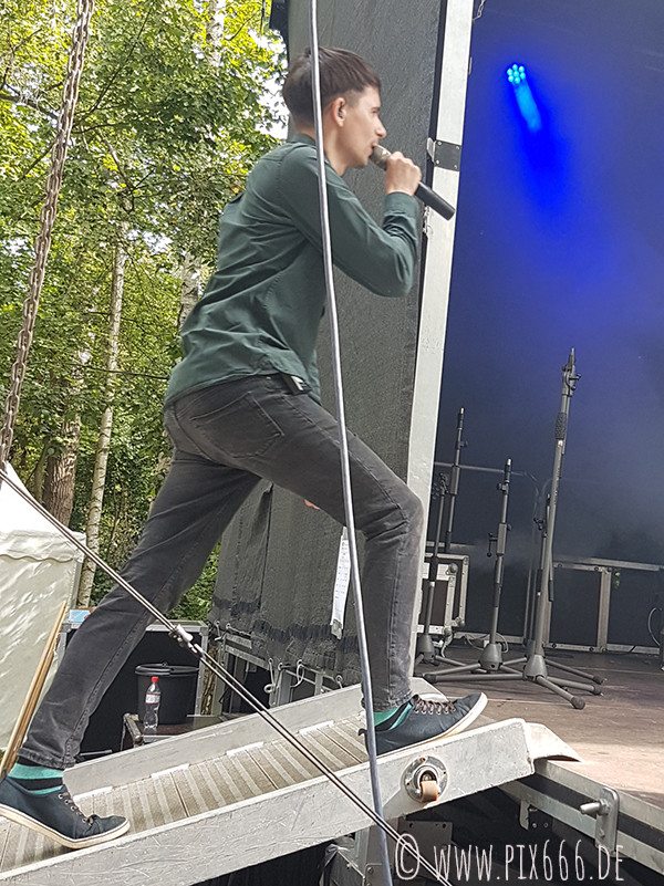 Der Opener des letzen Festivaltages waren bei tollem Sonnenschein die Norweger ESSENCE OF MIND. Bereits um 11.50 Uhr begann das Konzert der Elektro-Rock Band aus dem Norden Europas. Nach 2 Konzerttagen und kurzen Nächten ist es nicht das beste Los, so früh auf die Bühne zu müssen. Trotzdem versammelten sich immerhin ca. 300 Fans vor der Weidenbogen Bühne. Einige von ihnen hatten sogar norwegischen Flaggen dabei. Essence of Mind spielten vorwiegend Titel vom 2015 er Album ‚The Break Up!‘. Das Publikum hatte sichtlich Spaß und das 7 Titel umfassende Set verging wie im Flug. Ein gelungener Start in den dritten Tag NCN Festival.