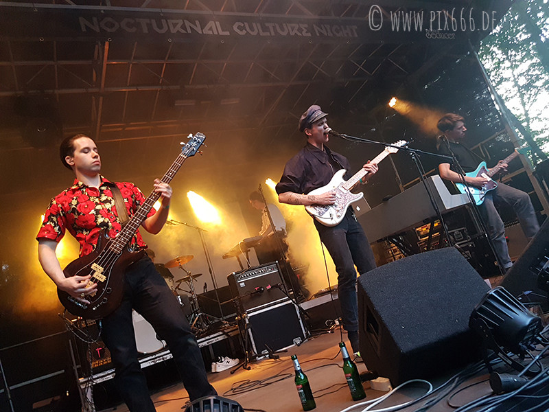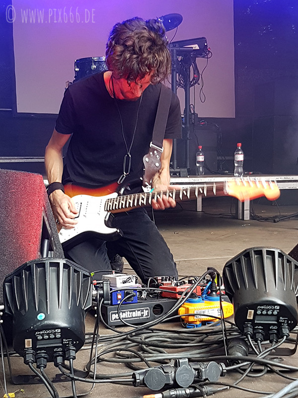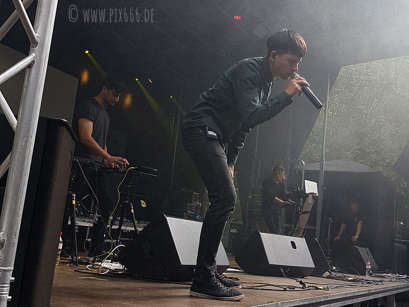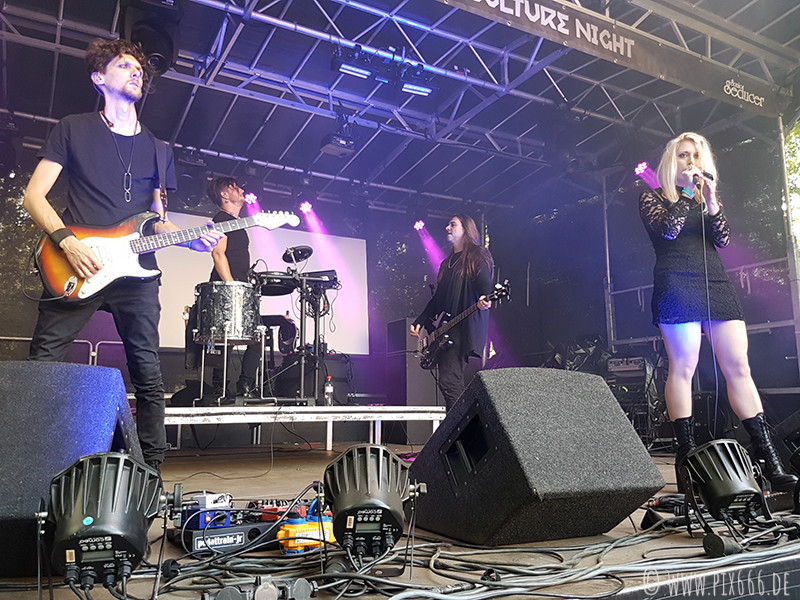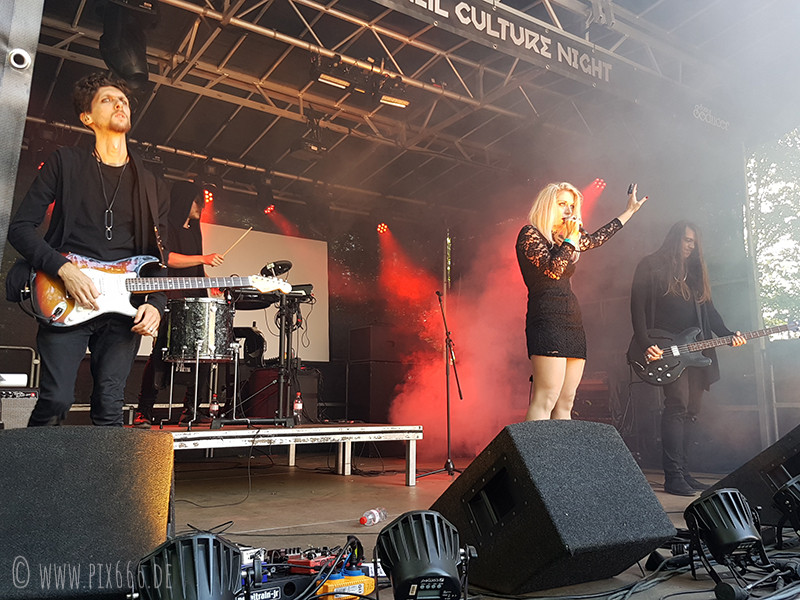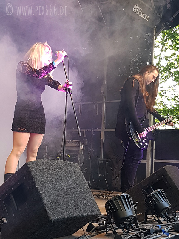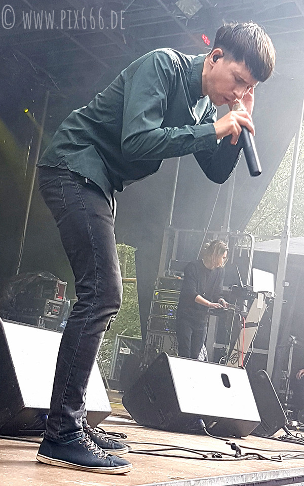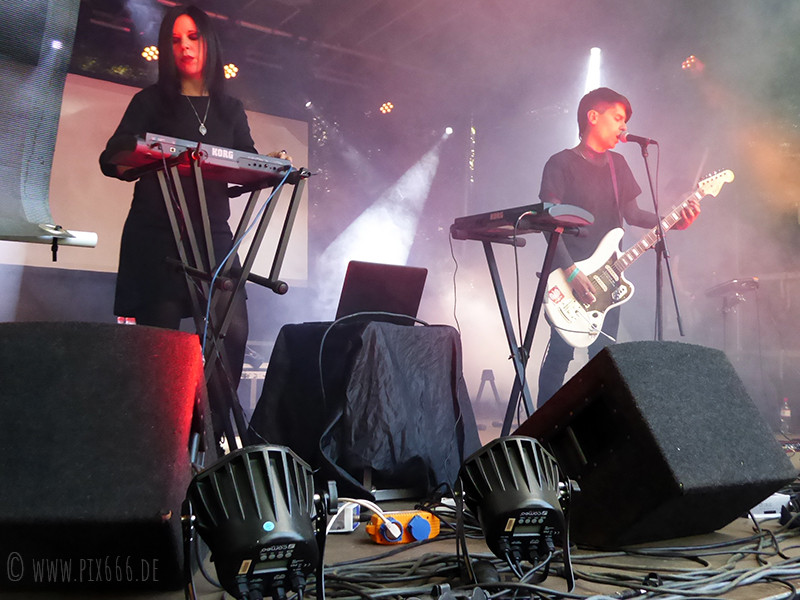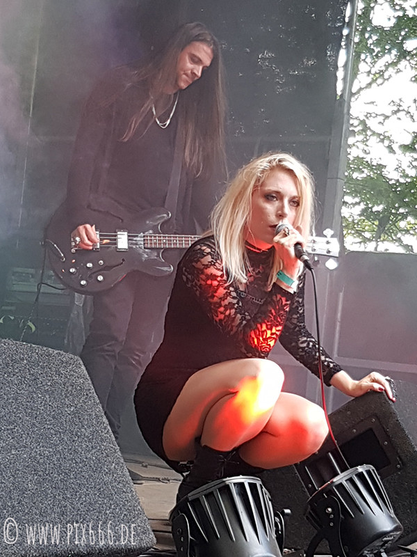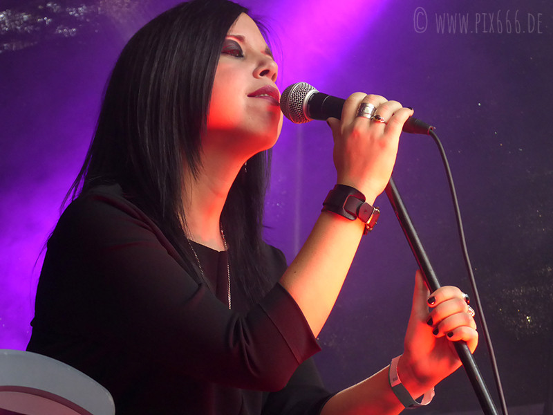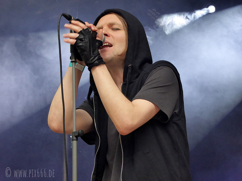 Der Opener des letzen Festivaltages waren bei tollem Sonnenschein die Norweger ESSENCE OF MIND. Bereits um 11.50 Uhr begann das Konzert der Elektro-Rock Band aus dem Norden Europas. Nach 2 Konzerttagen und kurzen Nächten ist es nicht das beste Los, so früh auf die Bühne zu müssen. Trotzdem versammelten sich immerhin ca. 300 Fans vor der Weidenbogen Bühne. Einige von ihnen hatten sogar norwegischen Flaggen dabei. Essence of Mind spielten vorwiegend Titel vom 2015 er Album ‚The Break Up!‘. Das Publikum hatte sichtlich Spaß und das 7 Titel umfassende Set verging wie im Flug. Ein gelungener Start in den dritten Tag NCN Festival.