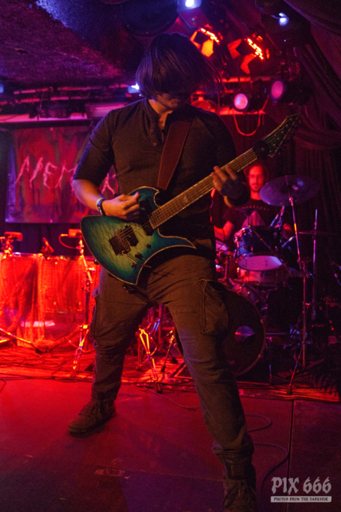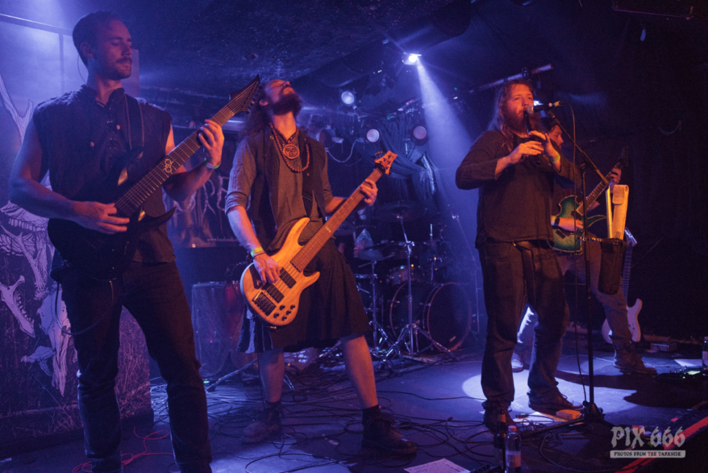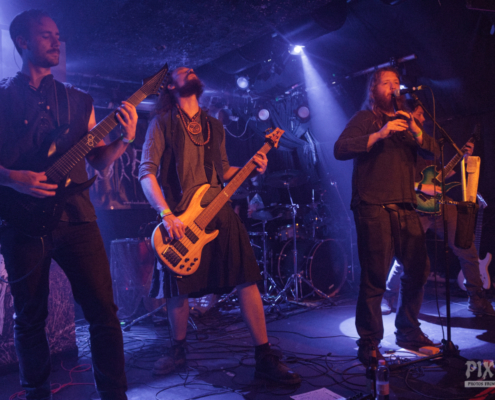 Die Geschichte der Band Nemoreus reicht zurück bis ins Jahr 2018. Damals veröffentlichte die Wiener Folk Metal Band ihre erste EP und spielte im selben Jahr beim Wacken Metal Battle.  Nemoreus starteten ihre Show mit einer Instrumentalversion von ‚Das Rote Tuch‘ – dies natürlich unfreiwillig, denn Sänger Fabians Mikrofon war noch nicht auf Betriebstemperatur. Er sagte danach: „Naja egal, wir haben noch so viele andere schöne Songs“. Und tatsächlich waren die Songs schön und auch abwechslungsreich,  zwischen den Gesangspassagen spielte der Sänger immer mal Flöte oder holte die Bouzouki aus der Ecke. Das Repertoire umfasste Folk, Rock und Metal, so dass es der Band bei den schnellen Songs sogar gelang, die Fans zu einer Mischung aus Wall Of Death, Circle Pit und Pogo Tanz zu animieren. Zumindest hatten die Fans Spaß bei den Songs der Lokalmatadoren, das war das Wichtigste. Als nächstes folgte ‚Dance Of The Fallen‘ – zu diesem Song haben Nemoreus 2019 einen schönen Videoclip veröffentlicht – schaut doch einfach mal auf dem YouTube Kanal vorbei. Der Support Act des Abends konnte sich richtig austoben, denn sie bekamen einen unglaublich langen Slot für einen Opener. Eines der Highlights der Show war der Song ‚Bring The Demons To The Hall‘, bei dem viele der Besucher im Viper Room das Tanzbein schwangen.