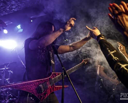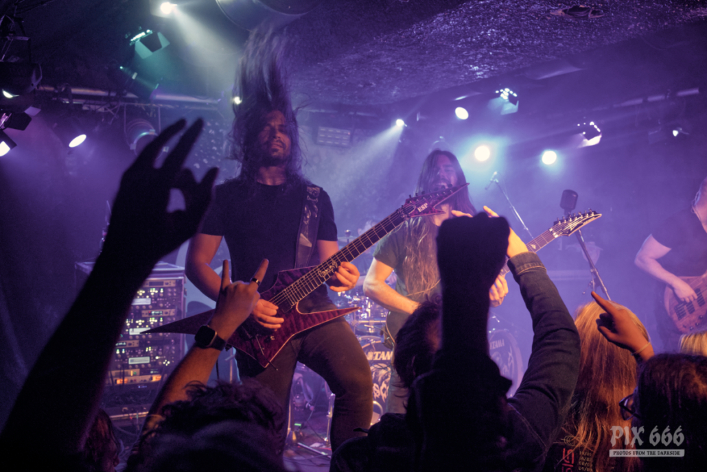 Nach einer kurzen Pause ging es weiter mit Death Metal aus Italien. Hideous Divinity veröffentlichten 2024 via Century Media ihr neues Album ‚Unxitinct‘. Mit ihrer unglaublich ausdrucksstarken Performance sorgten die Jungs für wilde Fans in den ersten Reihen – es war nun noch ein bisschen voller, als am Anfang des Konzertabends und die Stimmung nach wie vor toll – reichlich Applaus inklusive. „Danke wir sind Hideous Divinity aus Rom – es ist uns eine Freude hier zu sein“ – so begrüßte die Band das Publikum. Weiter ging es mit schnellen Songs, die die Fans in Bewegung hielten. „Es ist ganz schön heiß hier drin – Ihr habt es so heiß gemacht.“ Der Sänger hatte bei dieser schweißtreibenden Show längst seine Jacke abgelegt. Bevor das nächste Stück ‚Angel Of Revolution‘ angesagt wurde, lud der Sänger die Fans noch ein, mit einem Bier zum Merch zu kommen. „Das ist das letzte Konzert der Tour und Zeit für eine Party mit euch“. Mit ‚Mysterium Tremendum‘ ging es nun auf die Zielgerade der Show. „Das ist der letzte Song für uns heute Abend – macht nochmal richtig Lärm“. Die Fans ließen sich nicht zweimal bitten und machten die Hideous Divinity Show zu einem stimmungsgeladenen Death Metal Konzert.