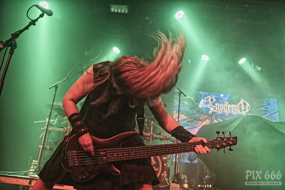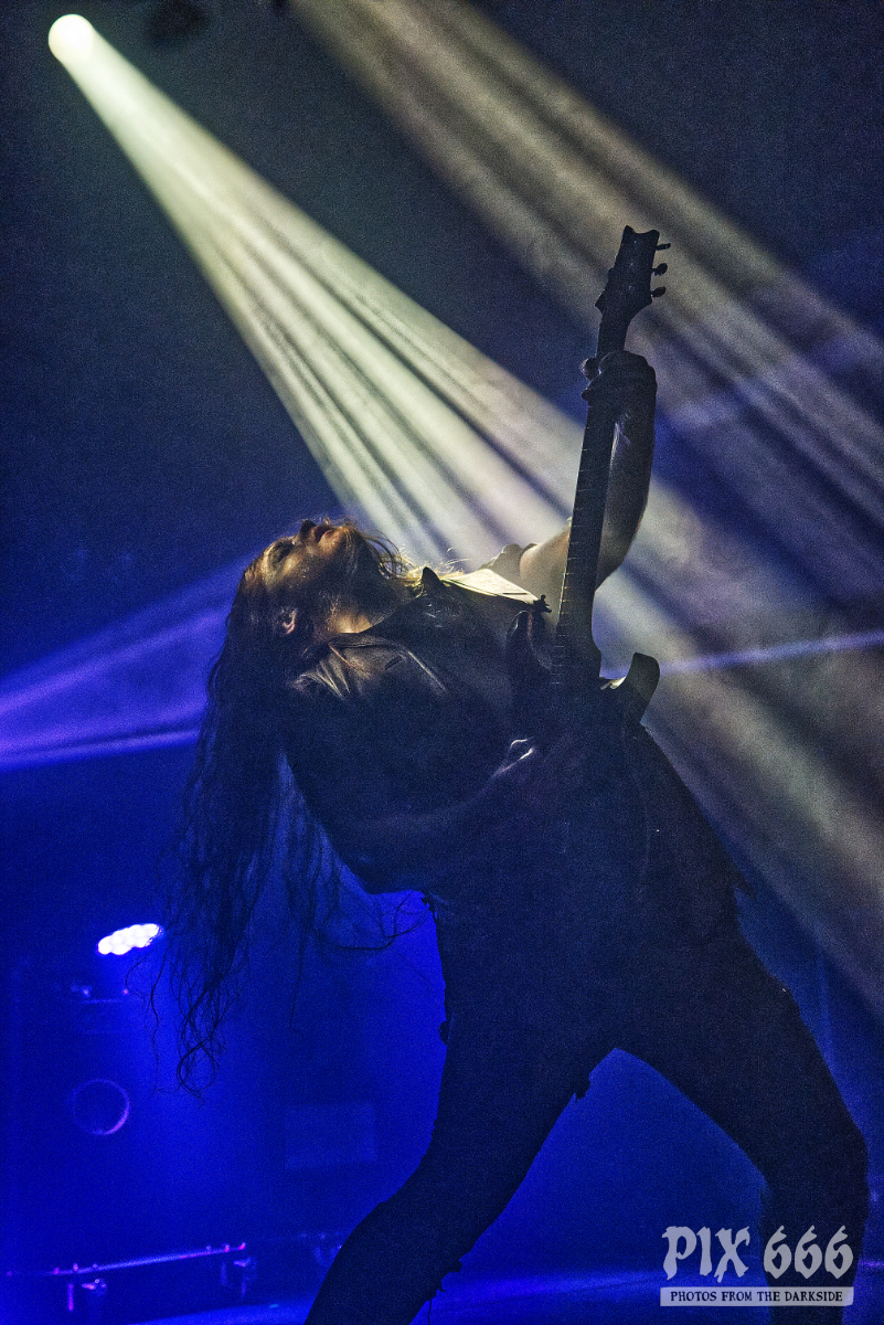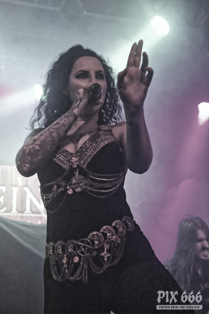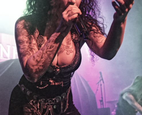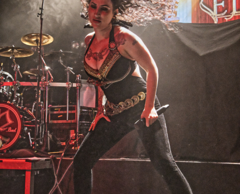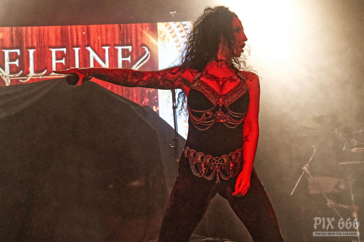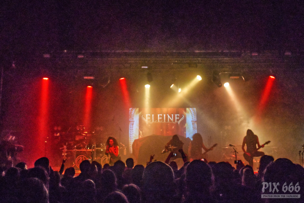 Mit dem vierten Studioalbum ‚We Shall Remain‘ im Gepäck lieferte die Band eine grandiose Show ab – Immer wieder wehten die Haare und Sängerin Madeleine sprach ziemlich viel mit dem Publikum. Jetzt folgten einige der neuen Songs, die auch allesamt richtig gut beim Publikum ankamen. „Eine Frage – wie geht es euch? Könnt ihr ein bisschen Lärm machen“ hieß es dann, um die Stimmung noch um ein Level zu erhöhen. Dann gab es ein bisschen Werbung für das neue Album und ein Dank an alle Besucher des Konzertes bzw der Tour. „Wir haben ein neues Album, was man am Merch kaufen kann. Danke, dass ihr live Musik unterstützt – wollt ihr mehr? „Das ist ‚Ava Of Death‘“. Danach spielten Eleine das wunderschöne ‚We Shall Remain‘, den Titeltrack vom aktuellen Album.