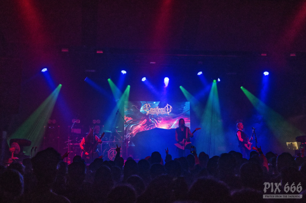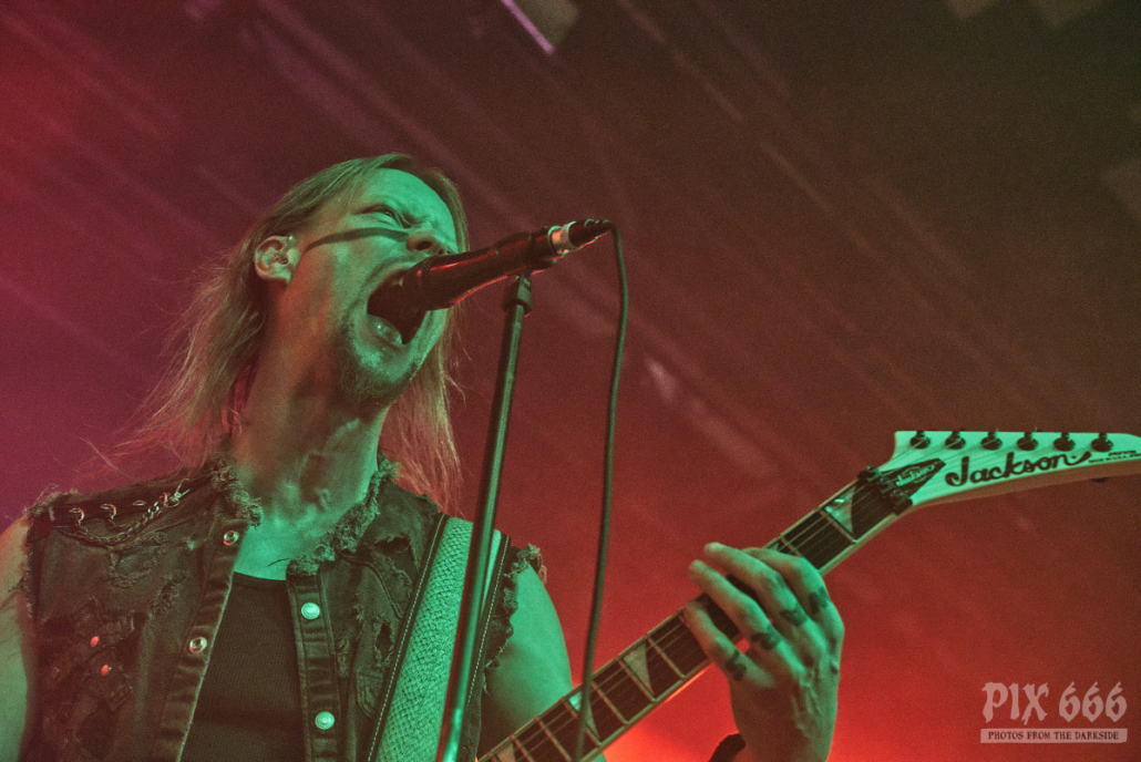 Eine der ganz großen Viking Metal Bands begleitete Pain auf deren Tour durch Europa. Die Jungs der Kultband Ensiferum waren auf der Tour zwar noch mit dem 2020er Erfolgsalbum ‚Thalassic‘ unterwegs, aber das störte die Fans kein Bisschen – es herrschte eine mega Stimmung vom ersten bis zum letzten Song. Nun war die Simm City auch ordentlich vollgestopft und der Rahmen für die Show, die von der ((Szene)) Wien in die nicht weit von dort entfernte, größere Location verlegt worden war, passte perfekt. Die Musiker gaben alles und ließen keine Wünsche offen – die Fans in den ersten Reihen waren total am positiv durchdrehen.