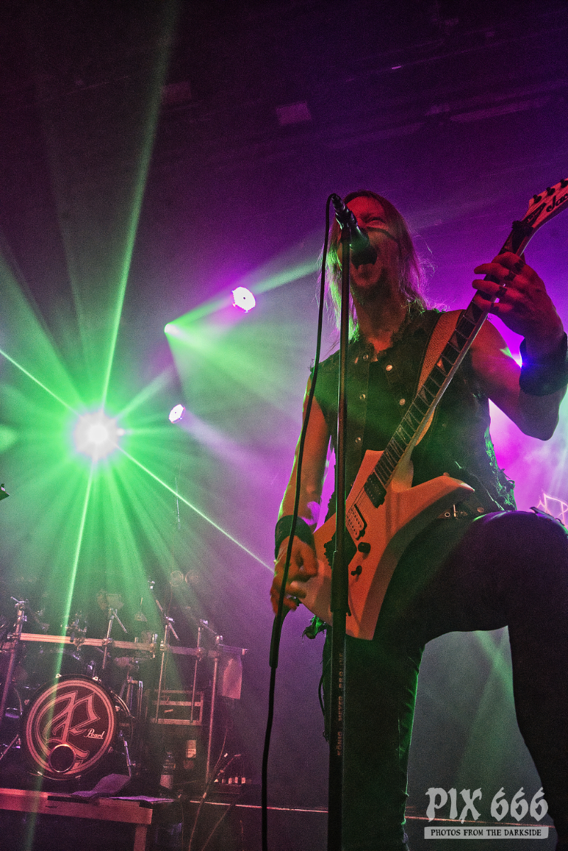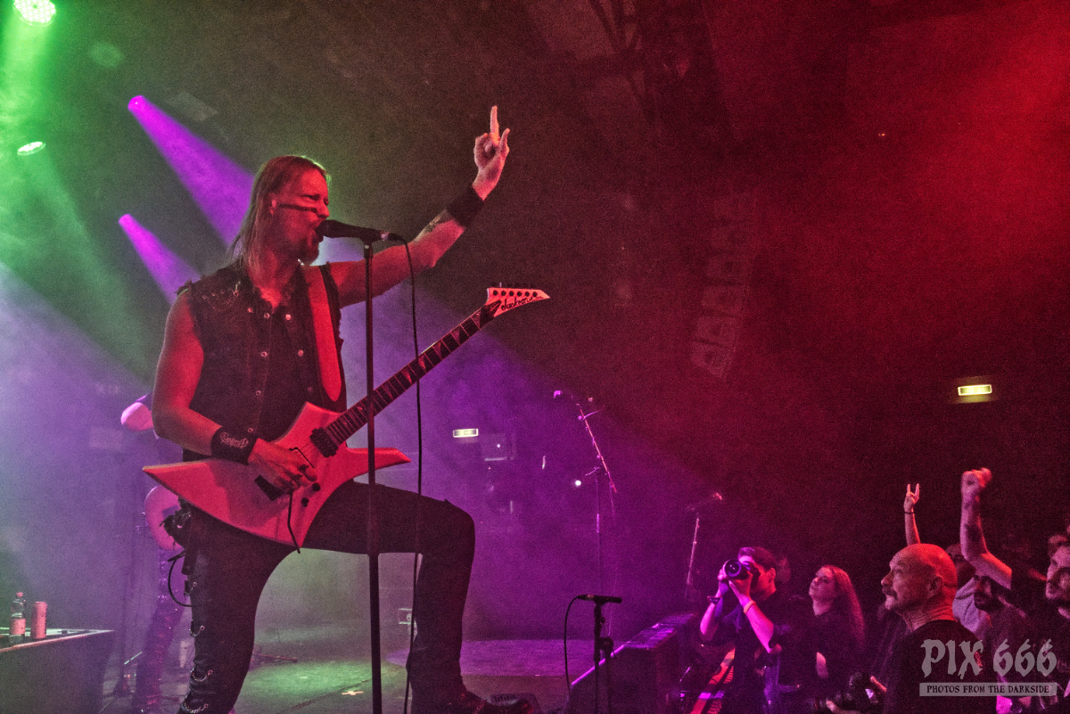 „So – mal sehen, was ihr jetzt bekommt. Wir haben einen neuen Song – ‚Revolution‘“ hiess es dann und auch das neue Stück fügte sich nahtlos und perfekt in die Show ein. Wunderschöne Laserstrahler wechselten zwischen lila und weißem Licht und verwandelten die Simm City in eine fantastische Metal Konzertlocation.