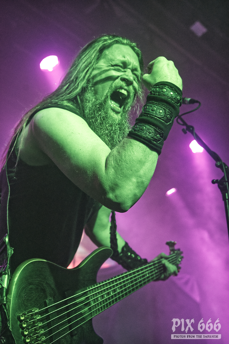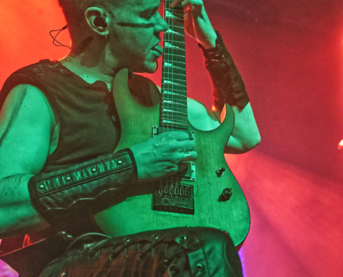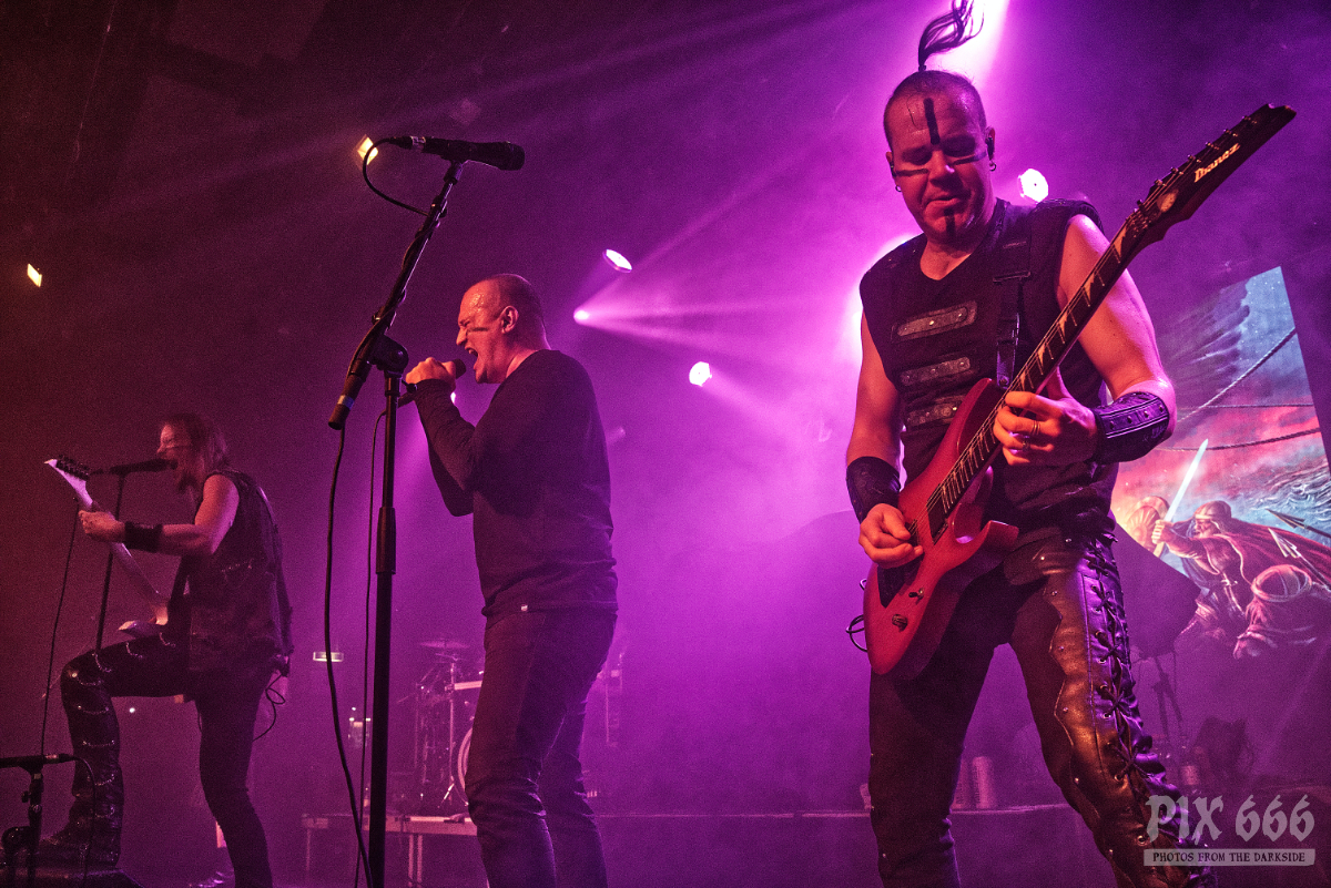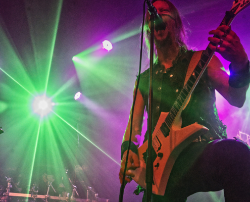 „Lasst uns feiern in unserer ‚Twilight Tavern‘“ lautete dann die Ansage für den Klassiker aus dem Jahr 2009. Das Tempo zog noch ein bisschen mehr an und die ‚Hey Hey‘ Rufe schalten durch den ganzen Club. Schnelle, zuckende Lichtwechsel sorgten auch visuell für ordentliches Konzertfeeling. „Vienna – was für ein wundervoller Freitagabend. Ihr seid unsere ‚Heathen Horde‘“, so lautete dann die Ansage für den Song vom 2015er Nummer 1 Album ‚One Man Army‘. … und Ensiferum legten gleich den Titelsong des Albums nach. „Nun ist Zeit für den Freitag Moshpit“ und die Stimmung erreichte nun so ziemlich den Höhepunkt.