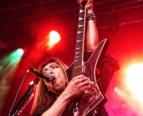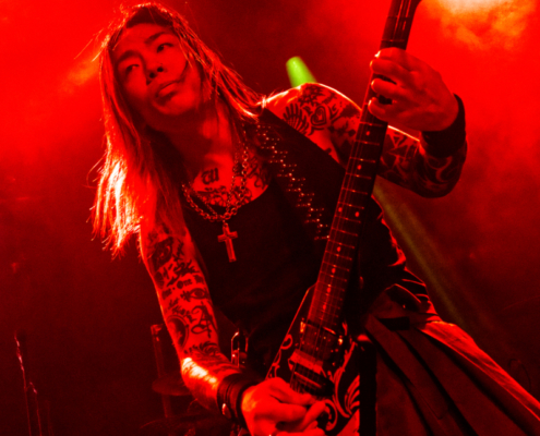 Im September 2023 hat die japanische Band Ryujin das erste Album unter neuem Bandnamen veröffentlicht. Seit ihrer Gründung im Jahre 2009 bis zu Beginn des Jahres 2023 war die Metalband aus Hokkaido unter dem Namen Gyze unterwegs. Als die selbstbetitelte ‚Northern Nostalgic Metal Band‘ ihre Show in der Simm City begann, waren erst sehr wenige Fans in der Konzerthalle. Wie wir später erfahren haben, stimmte etwas mit dem Timing am Einlass nicht und der Club wurde erst kurz vor halb sieben aufgesperrt. So waren um 18.30 Uhr nur die Fans vor der Bühne, die die Simm City über die Tiefgarage betreten hatten. Zum Glück war es dann aber ab dem dritten Song schon richtig gut gefüllt, die Metalfans hätten ansonsten ein klasse Konzert verpasst.