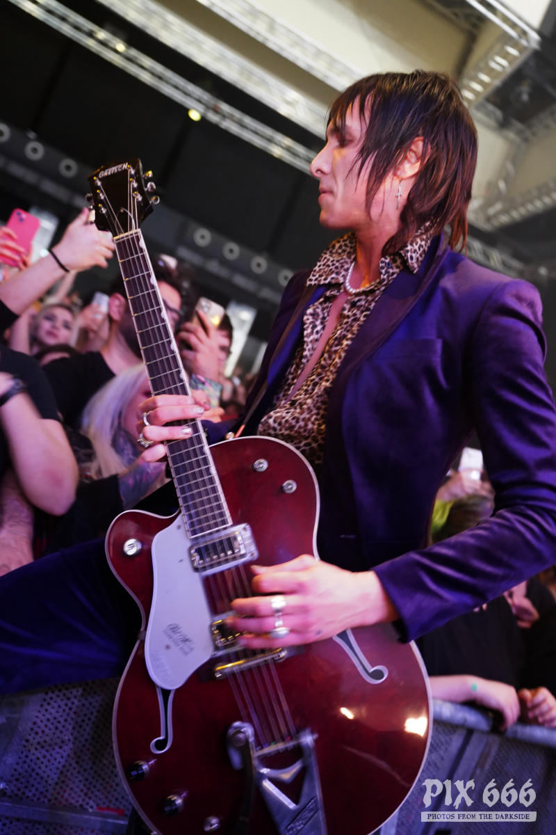 Yonaka boten eine energiegeladene Show. Der Wechsel zwischen brachialem Gitarrensound und poppigen Synthmelodien hatte es in sich. Unverkennbar im Sound der Briten sind die von ihnen selbst genannten Einflüsse wie Pink und Eminem. Während ‚Punch Bag‘ machte Gitarrist George einen kleinen Ausflug in die Menge und sorgte damit für ziemlich gute Stimmung. Riesen Jubel gab es dann auch nach dem schönen Song ‚Call Me A Saint‘.