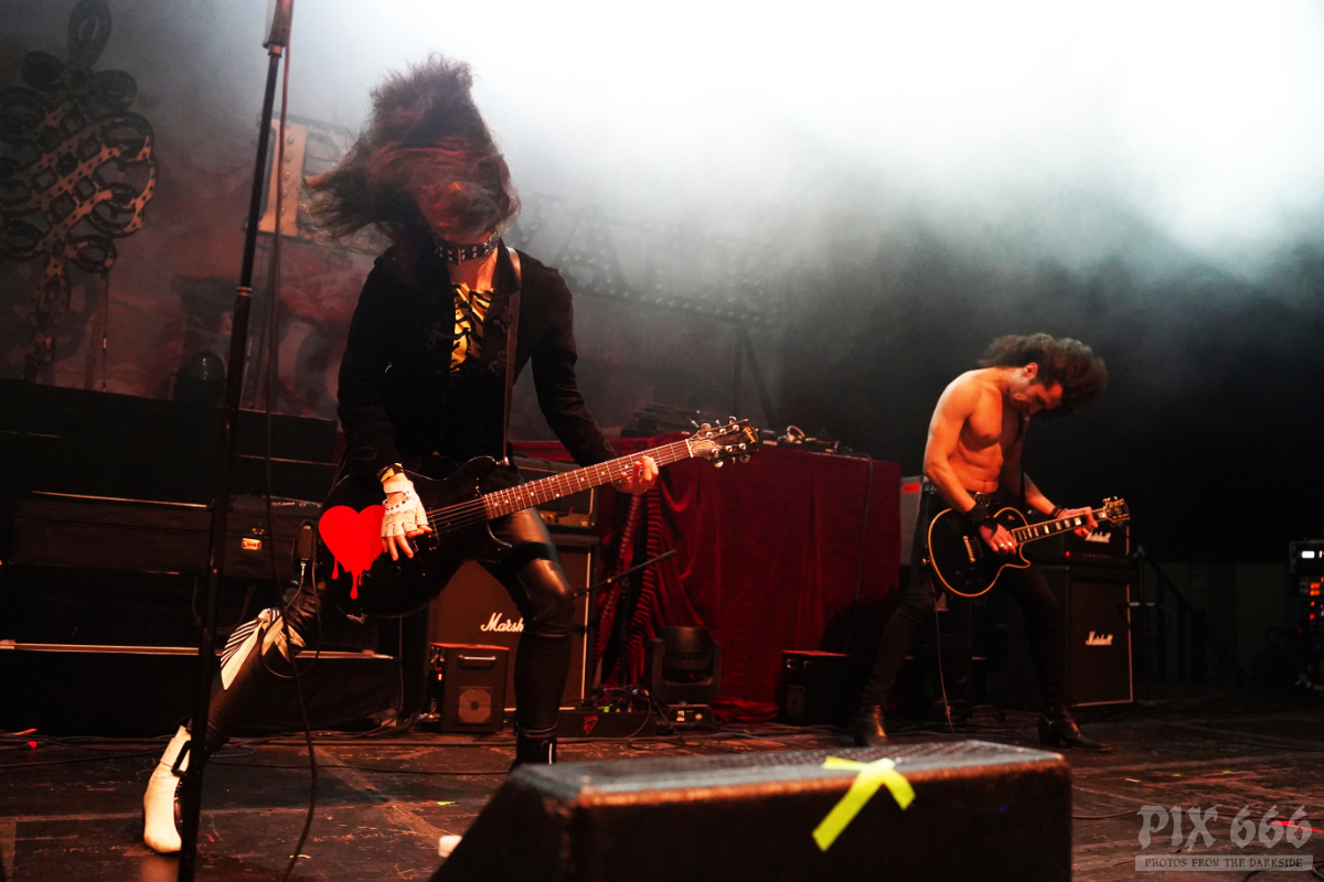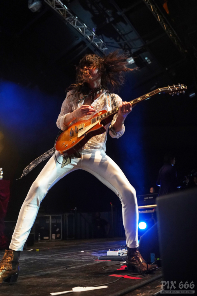 Die Pause zwischen den Auftritten von Yonaka und Palaye Royale dauerte etwa vierzig Minuten, aber es wurden auch allerhand Dinge aufgebaut. Beeindruckend war auf jeden Fall der Palaye Royale Schriftzug, der wie eine Leuchtreklame aus ihrer Heimat Las Vegas die Bühne verzierte.