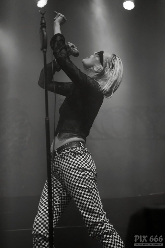 ‚All I hear is blah blah blah‘ war die nicht allzu schwierige Aufgabe für die Fans – und so stimmten alle gemeinsam den Beginn des Titels ‚Clique‘ an. Weiter ging es mit Aktivitäten für die Wiener. Jetzt sollten sich alle auf den Boden hocken. „Habt keine Angst – seid nicht schüchtern“ sagte die blonde Sängerin. Dann sprangen alle auf Kommando hoch und schon war richtig Stimmung in der Bude. Nach ‚Seize The Power‘ war es dann auch schon wieder vorbei und die Band bedankte sich bei den tollen Fans fürs Mitmachen.