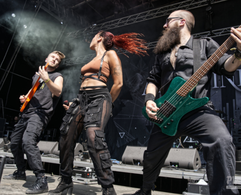 Weiter ging es mit Female-Fronted Symphonic Metal. Die wunderbaren Xandria aus Deutschland eroberten mit ihrer neuen Sängerin Ambre die Herzen der Rock Castle Besucher. „Es ist so großartig, hier zu sein“ sagte sie. Das ‚Hey hey hey‘ hatten die Fans schon richtig gut drauf, das klappte auch bei Xandria perfekt. Gut gelaunt und stimmungsvoll ging es weiter mit ‚Reborn‘, auch wenn die Hitze allen Beteiligten jetzt schon ganz schön zu schaffen machte. „Ihr kennt das oder?“ fragte Ambre dann vorm nächsten Song. Und ja, den Bandklassiker ‚Nightfall‘ mit seinem nunmehr über 35 Millionen YouTube Aufrufen hat bestimmt fast jeder schon mal gehört. „Danke, dass ihr mit uns Party gemacht habt – Ihr wart toll – zeigt mir eure Hände“ hiess es dann vorm finalen Song ‚Valentine‘. Im November stehen Xandria übrigens unter anderem in Prag und Wien auf der Bühne.