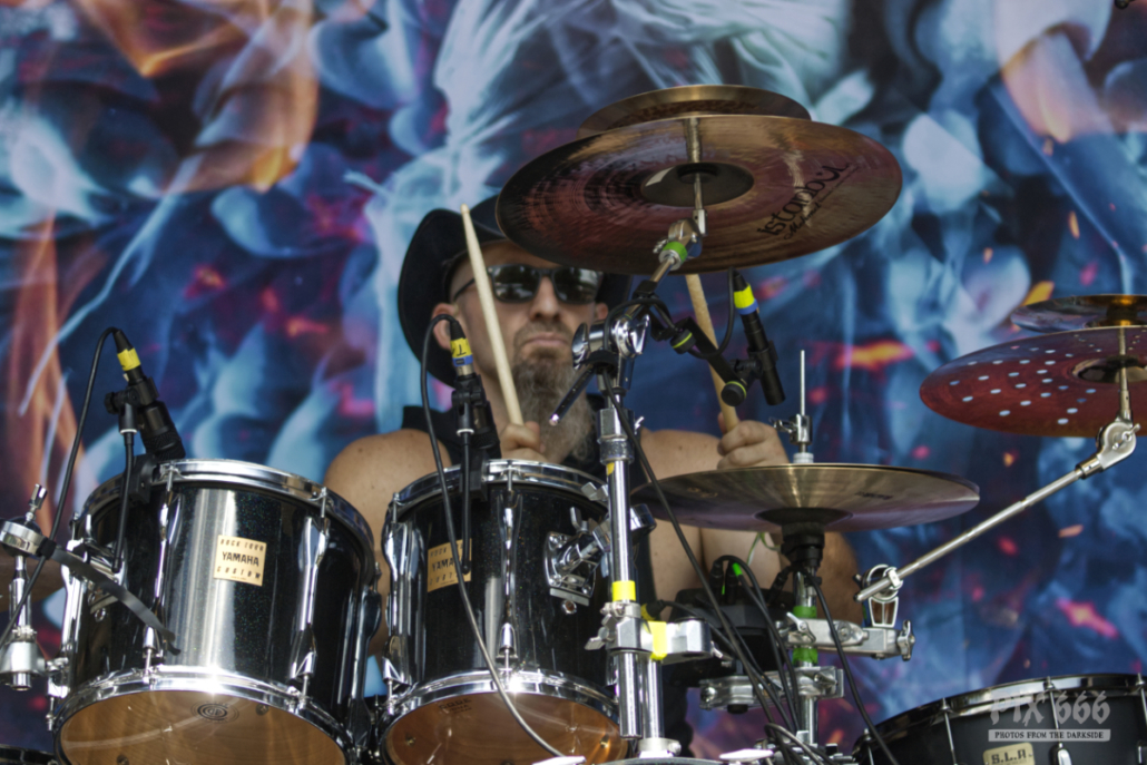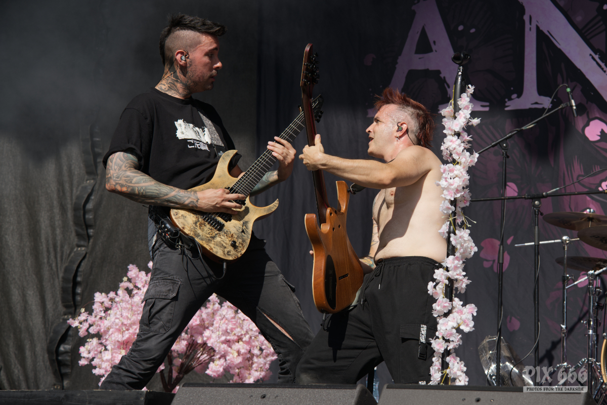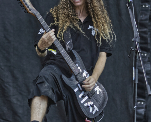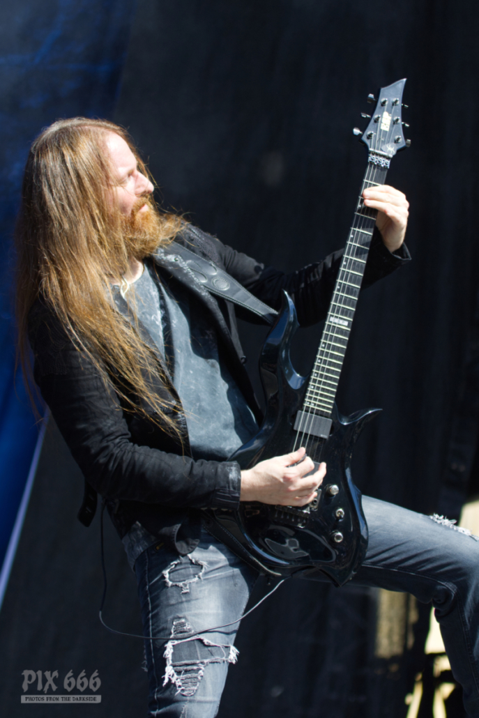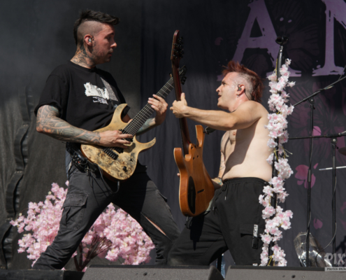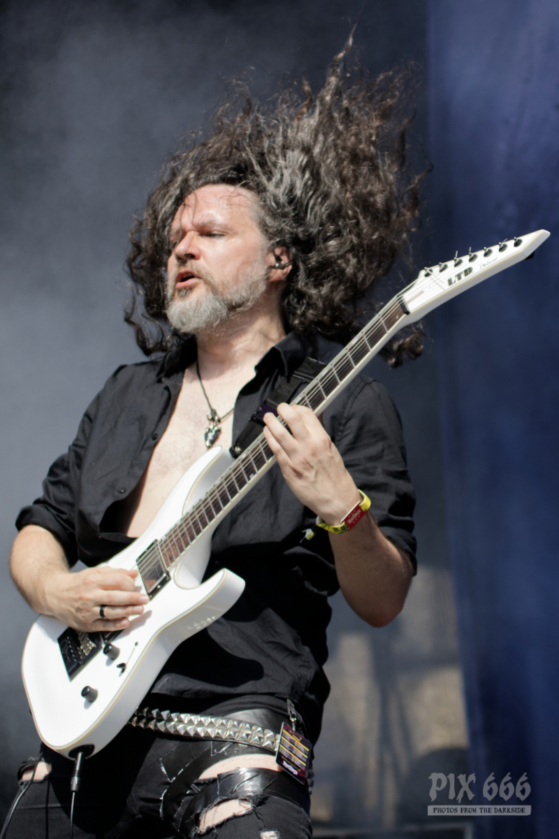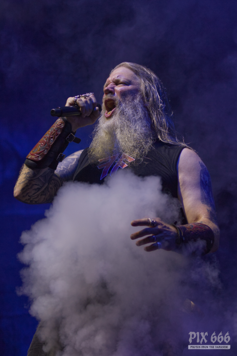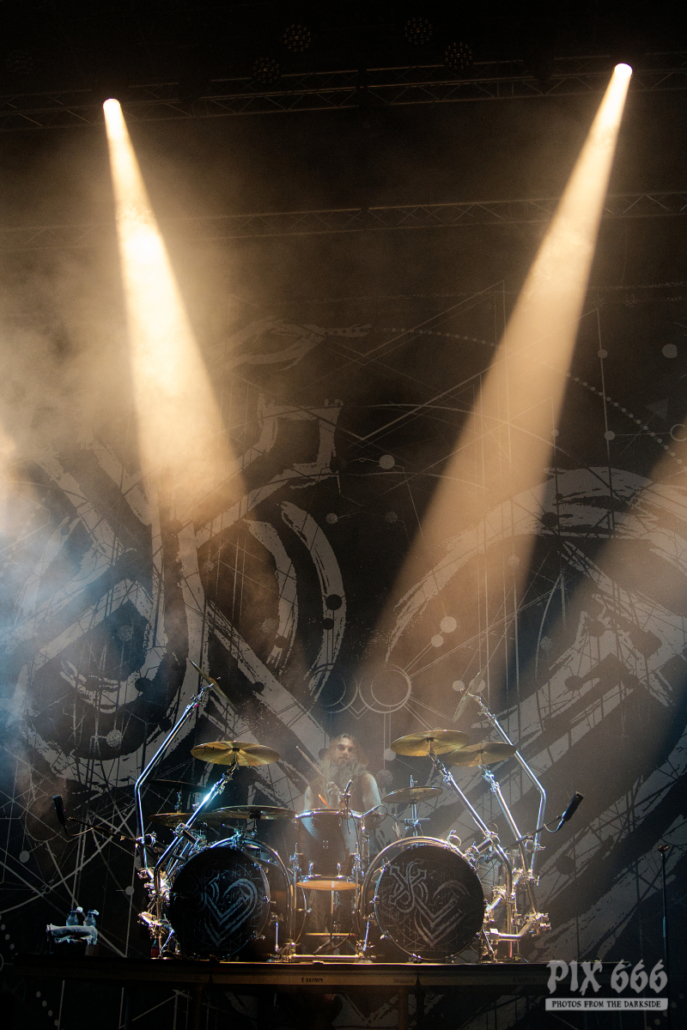 Nun war Headliner Zeit. Amaon Amarth waren für viele nicht nur der Donnerstags-Headliner, sondern das Festivalhighlight generell. Die legendäre Melodic Death Metal Band aus Schweden steuerte mit ihren letzten drei Alben bis auf die Spitze des Berges – dreimal Nummer 1 inklusive goldener Schallplatte für ‚Jomsviking‘ in Deutschland. Auch in anderen Ländern ist die Band um Sänger Johan nicht zu stoppen. Zu Beginn sagte er „Wir sind froh wieder hier zu sein in Tschechien, im Land des Pilsener“. Amon Amarth lieferten eine gigantische Show ab – da passt einfach alles. Heiße Pyros, phänomenale Lichter, Top Sound – das ließ alle Metalherzen höher und schneller schlagen. Wer dabei nicht begeistert war, war definitiv am falschen Ort. Nun hiess es „Hinsetzen und rudern wie die Vikinger“. Auch zahlreiche Crowdsurfer schwebten auf den Händen des Publikums Richtung der Flammen und der Band. Später gab es einen lauten Knall und eine Art Funkenvorhang – auch das sah spektakulär aus. Und immer wieder erhellten die Feuersäulen das Festivalgelände. Amon Amarth und ihre Show waren unglaublich toll und die Musiker gaben das Kompliment an die Fans zurück „Ihr wart toll danke. – Raise your horns – skål.“