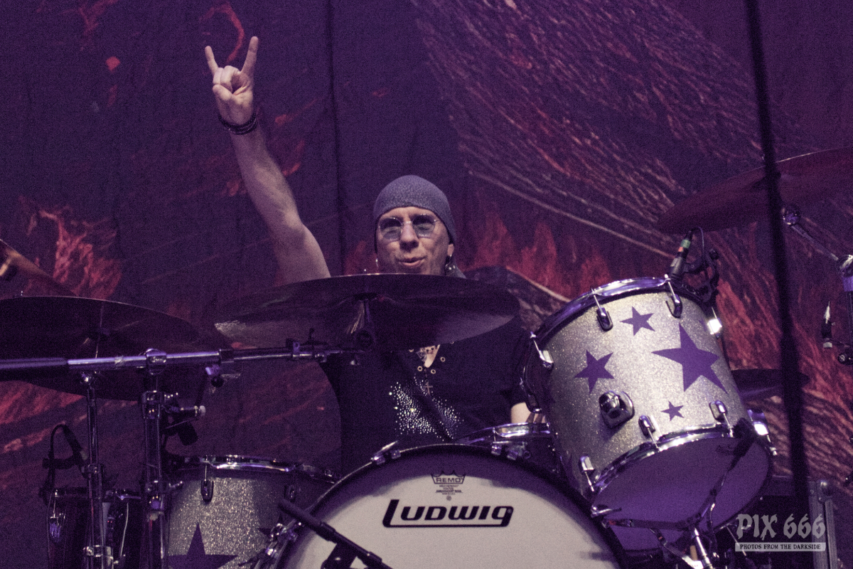Gitarrenlegende Axel Rudi Pell zupfte in den 80er Jahren zunächst die Saiten bei der Band Steeler, ehe er 1989 eine neue Band gründete, die seinen Namen trägt. Unzählige Alben sind während dieser 35 Jahre erschienen, die letzten fünf starteten allesamt voll durch und charteten in die deutschen Top10. Das vor kurzem erschienene, nagelneue Album heisst ‚Risen Symbol‘. Mit ‚Forever Strong‘ legten die Rocker dann gleich mit Vollgas los und Sänger Johnny sagte später „Ohne euch sind wir nichts – mit euch sind wir stark.“ Nach einigen temporeichen Stücken gab es dann eine verdiente Erholungspause. Beim Leonard Cohen Cover ‚Hallelujah‘ sang Johnny nicht alleine – ein Chor aus tausenden tschechischen Kehlen stimmte mit ein. Im Anschluss daran verneigte sich die Band vor den Fans. Nun ging es wieder schneller zur Sache. „Are you ready to rock – with me? Wir erlebten eine flotte Heavy Metal Stunde mit Axel Rudi Pell und nach dem letzten Song ‚Rock The Nation‘ hiess es dann „Ich will euch mit nach Hause nehmen – lasst uns ein Foto machen. – danke, dass ihr hier wart.“
