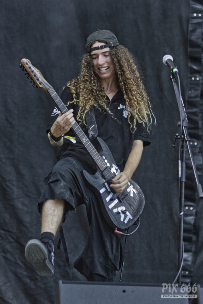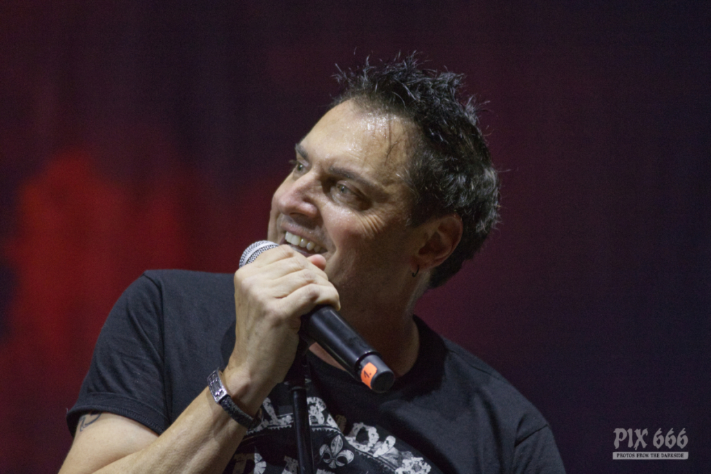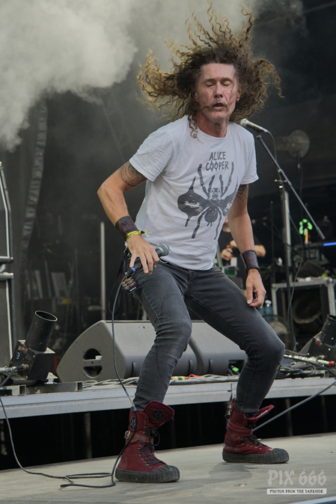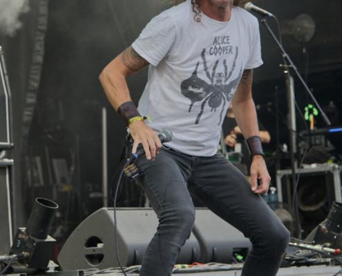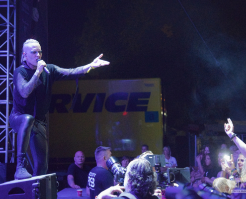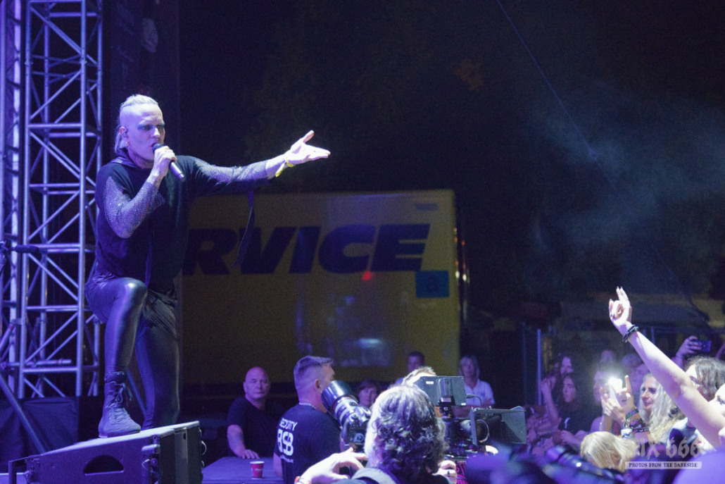 Nach dem Headliner stand noch ein Late Night Special auf dem Programm. Auch wenn sich einige Festivalbesucher bereits auf den Heimweg gemacht hatten, spielten Lord Of The Lost aus Deutschland vor einer beachtlichen und enthusiastischen Kulisse. „Es ist eine Ehre hier vor euch zu spielen – inmitten dieser wunderschönen Sommernacht“ sagte Sänger Chris. Die Band packte heute die härteren ihrer Songs aus und spielten sich damit in die Herzen ihren tschechischen Fans. Bei ‚Six Feet Underground‘ machte der Sänger mitten im Song ein Selfie, auf dem natürlich auch die Fans mit drauf sein sollten. „Ich möchte eure Hände in der Luft sehen“. Bei ‚Drag me to hell‘ machte er dann einen Ausflug an die Barriere und die Fans flippten nun völlig aus. „Jetzt will ich euch alle springen sehen“ – und auch das funktionierte bei ‚Blood For Blood‘ problemlos. Das Publikum wurde wirklich erstklassig unterhalten und jetzt wurde der ‚one person circle pit‘ gefordert, bei dem sich jeder einfach um seine eigene Achse drehen sollte. Der Spaßfaktor blieb weiterhin hoch und bei ‚We’re All Created Evil‘ war Gitarrist Pi mit seinem Instrument mitten im Auge des Circlepit. Großes Tagesfinale dann kurz nach 1 Uhr morgens mit dem weltbekannten Song ‚Blood and Glitter‘ vom gleichnamigen Nummer 1 Album.