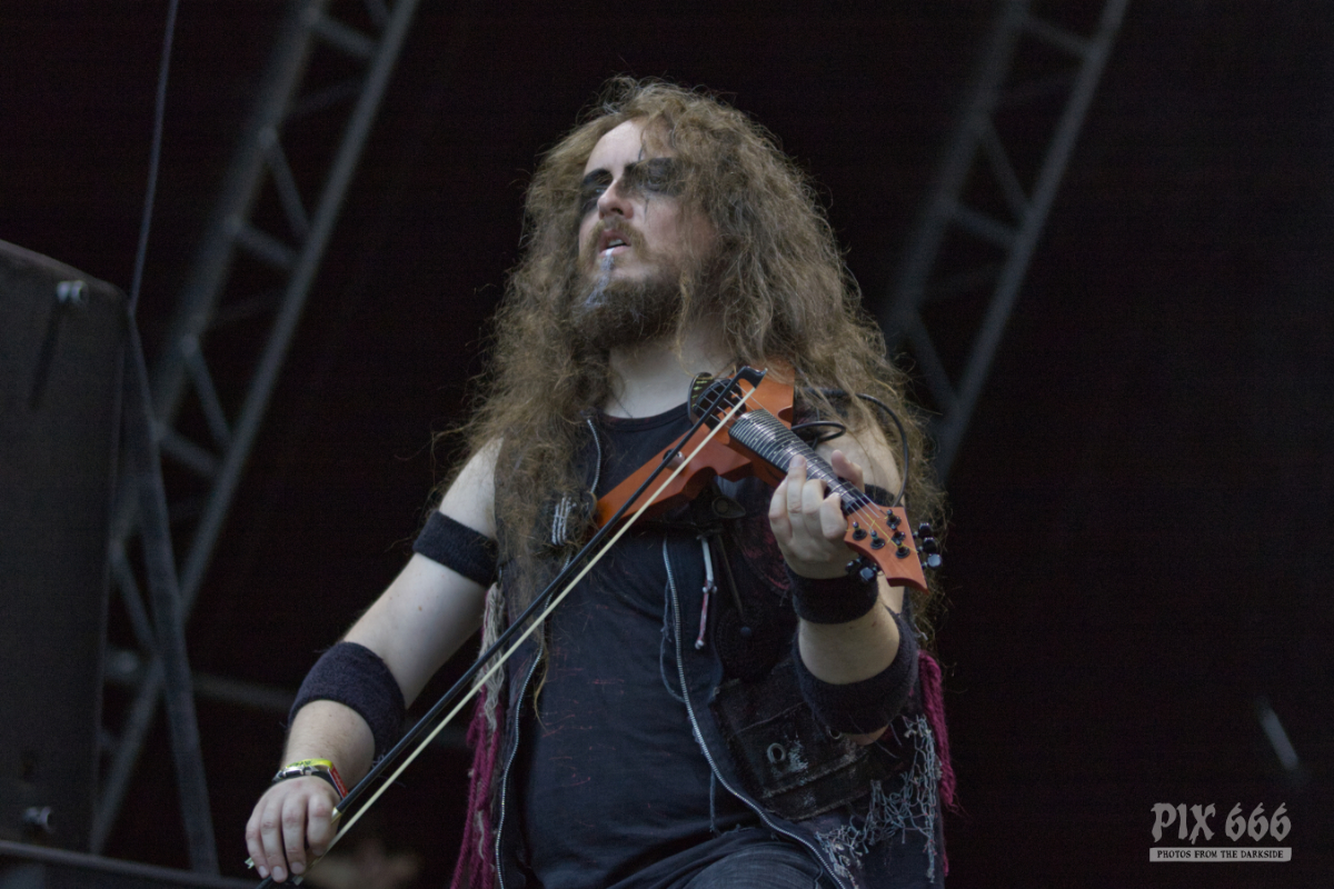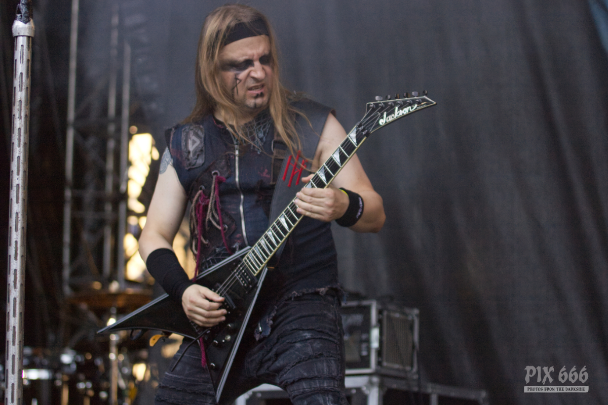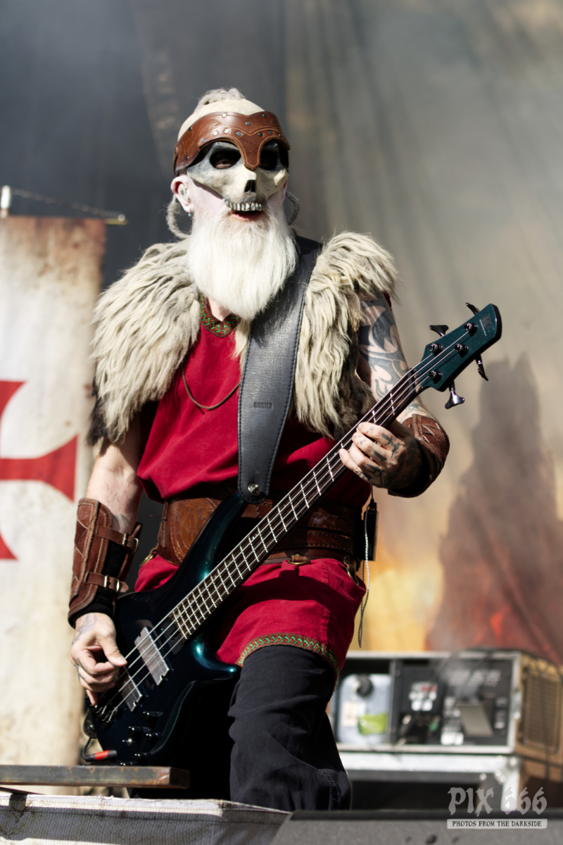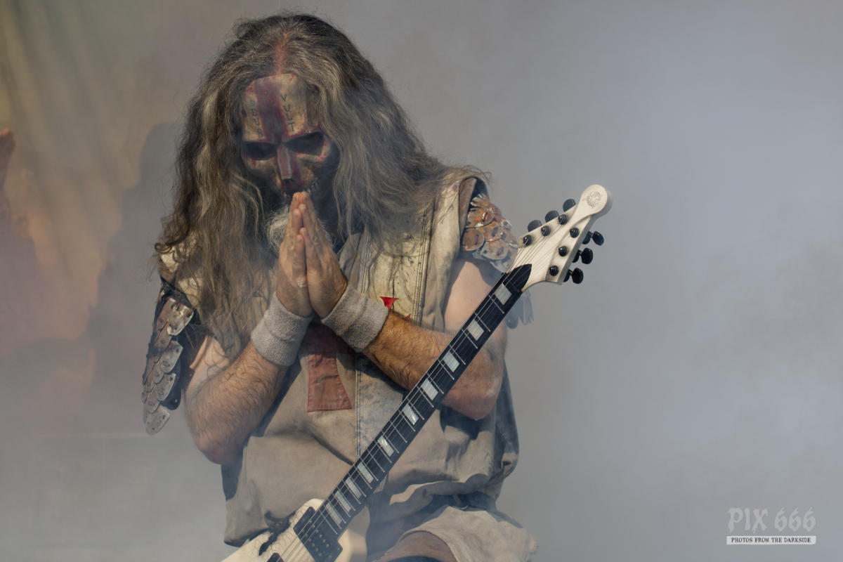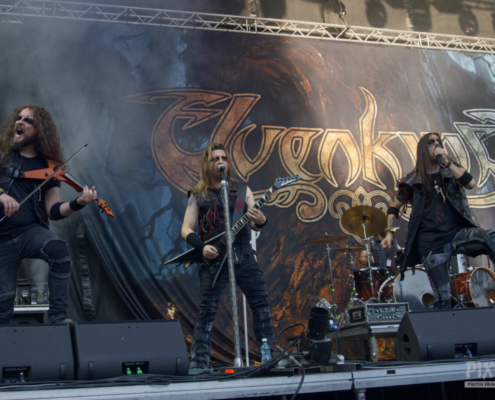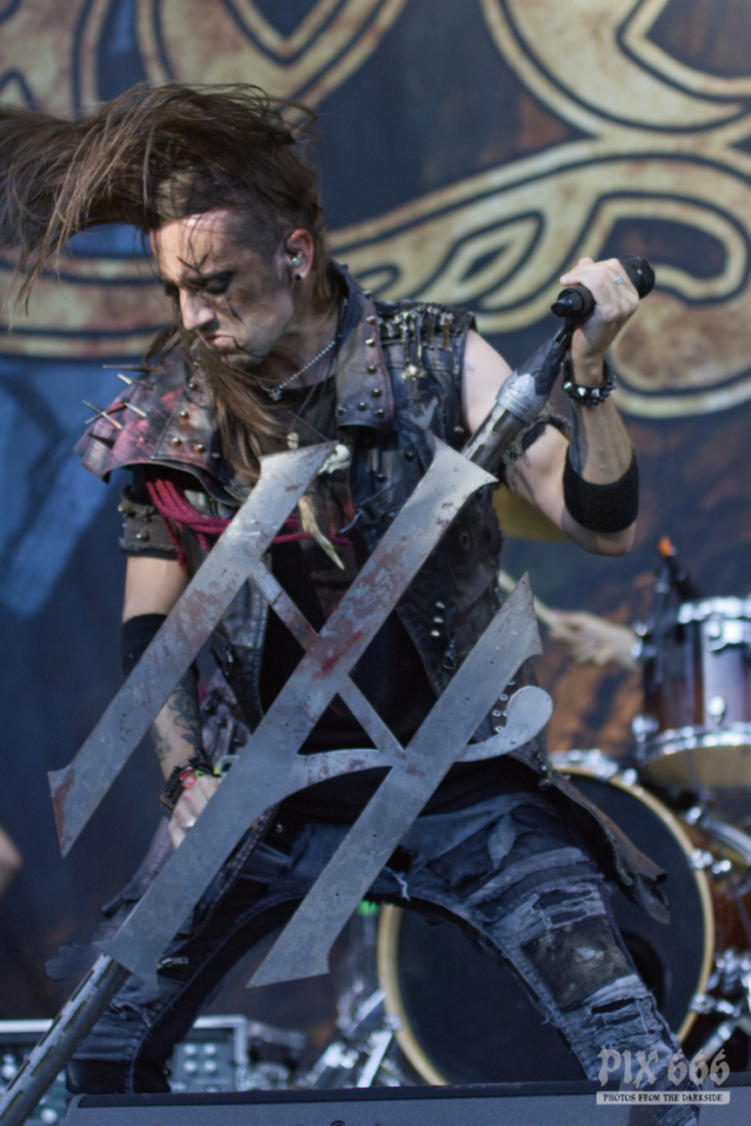 Als nächstes betraten die Warkings die Arena im Schlosspark. Der Auftrag ihrer etwa 50-minütigen Schlacht lautete: das Publikum zum Schwitzen zu bringen – und glaubt mir, dass hätte die Band auch bei anderen Temperaturen locker geschafft. Bei weit über 30 Grad gaben die Musiker mit ihren Maskierungen und tollen Kostümen genau so viel Gas, wie die anderen Bands. Die Fans in Tschechien waren absolut begeistert vom melodiösen Powermetal der Österreicher. In den ersten Reihen wurden jetzt pausenlos die Haare geschüttelt. Vor dem nächsten Song hiess es in Richtung Fans: „Ich frage mich, ob ihr bereit seid mit uns zu kämpfen“. Bei weiterhin mega Stimmung ging es also weiter mit ‚Fight‘ und bei ‚We Are The Fire‘ drehte dann wie vielen schon bekannt sein dürfte Shieldmaiden Andrea mit dem Warkings Banner eine Runde durchs Publikum. Dann folgte mit ‚Sparta‘ einer dieser Songs mit dem Refrain mit Hitgarantie. „Für den letzten Song müsst ihr alle mit uns gemeinsam die Arena betreten“. Die Warkings verabschiedeten sich für heute mit ‚Gladiator‘ und hinterließen ein mehr als zufriedenes Metalvolk.
