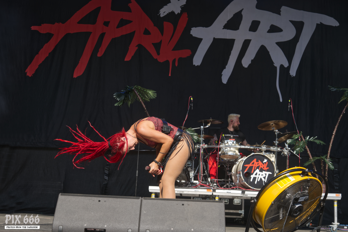 April Art waren bereits 2022 beim Rock Castle Open Air zu Gast. „Es ist schön wieder hier zu sein und irgendwie ist es jedesmal so heiß bei euch“ sagte Sängerin Lisa-Marie zum Beginn der Show. April Art brachten beim Rock Castle Open Air 2025 eine beeindruckende Portion moderner Power auf die Bühne. Mit einer Mischung aus Alternative Rock und modernen Metal-Elementen performte die Band ein leidenschaftliches und energiegeladenes Set, das das Publikum sofort mitriss. Die Frontfrau war der klare Mittelpunkt des Geschehens – mit kraftvoller Stimme, charismatischer Ausstrahlung und einer unbändigen Bühnenpräsenz, die ansteckend wirkte. Die Band selbst agierte tight und mit absoluter Spielfreude, während treibende Beats und eingängige Hooks für durchgehend Bewegung im Publikum sorgten. Trotz Hitze gab es Circle Pits am laufenden Band, wie zum Beispiel beim Song ‚Superhero‘. „Seid ihr noch da wollt ihr mehr? – lets go“ hiess es dann als noch zusätzlicher Stimmungsmacher. Bei ‚Karma is a Beach‘ flogen dann jede Menge rote Bälle durch die Menge und die Sängerin bereitet die Fans auf einen nächsten Circle Pit vor. Aber dann fragte Lisa-Marie plötzlich „Soll ich zu euch runter kommen?“ Unten angekommen schaute sie in die Runde „wer von euch ist stark genug, um mich auf den Schultern zu tragen“? Und dann ging die Post ab – Lisa-Marie im Circle Pit auf den Schultern eines Fans – wow das war wild. Dann beim Song ‚Jackhammer‘ kam die Zeit der Crowdsurfer. April Art lieferten eine wirklich tolle Open Air Show – besser geht’s eigentlich nicht. Der Circle Pit drehte sich auch beim letzten Song ‚Not Sorry‘ unaufhörlich – alle hatten ihren Spaß.
