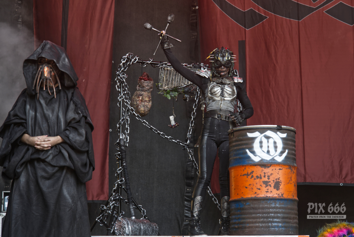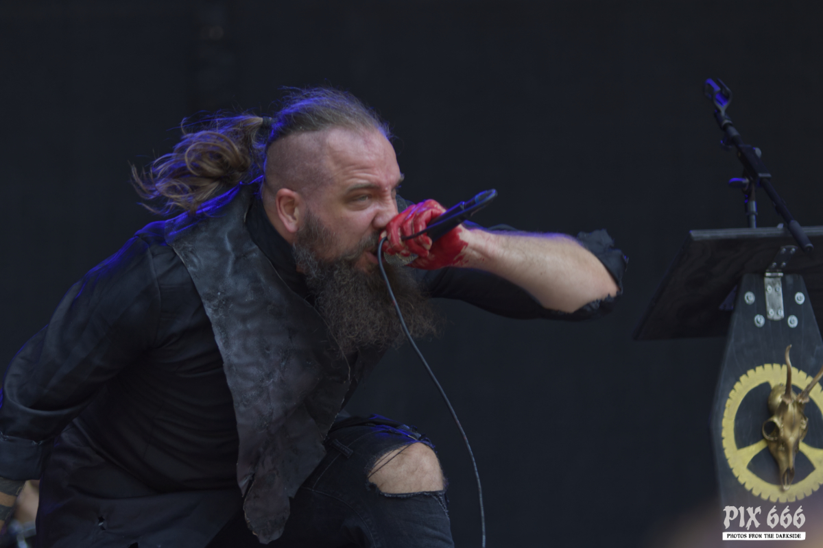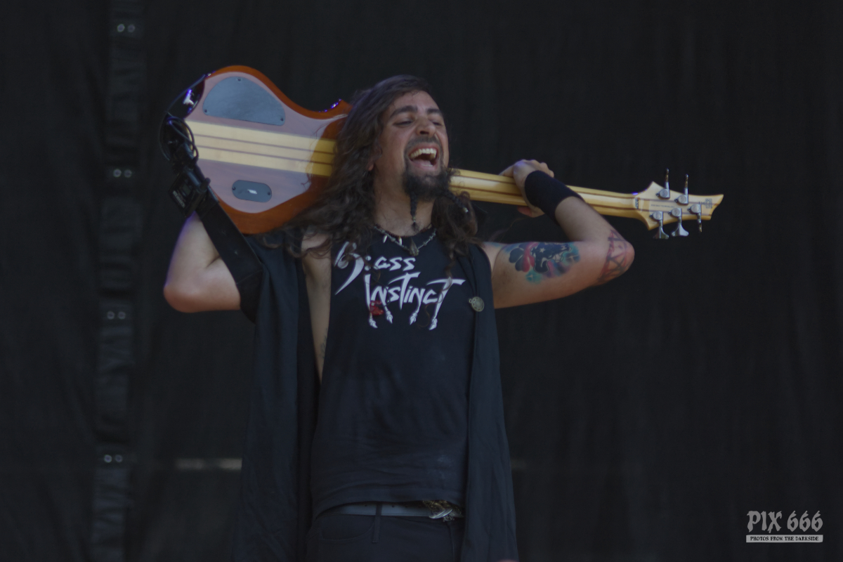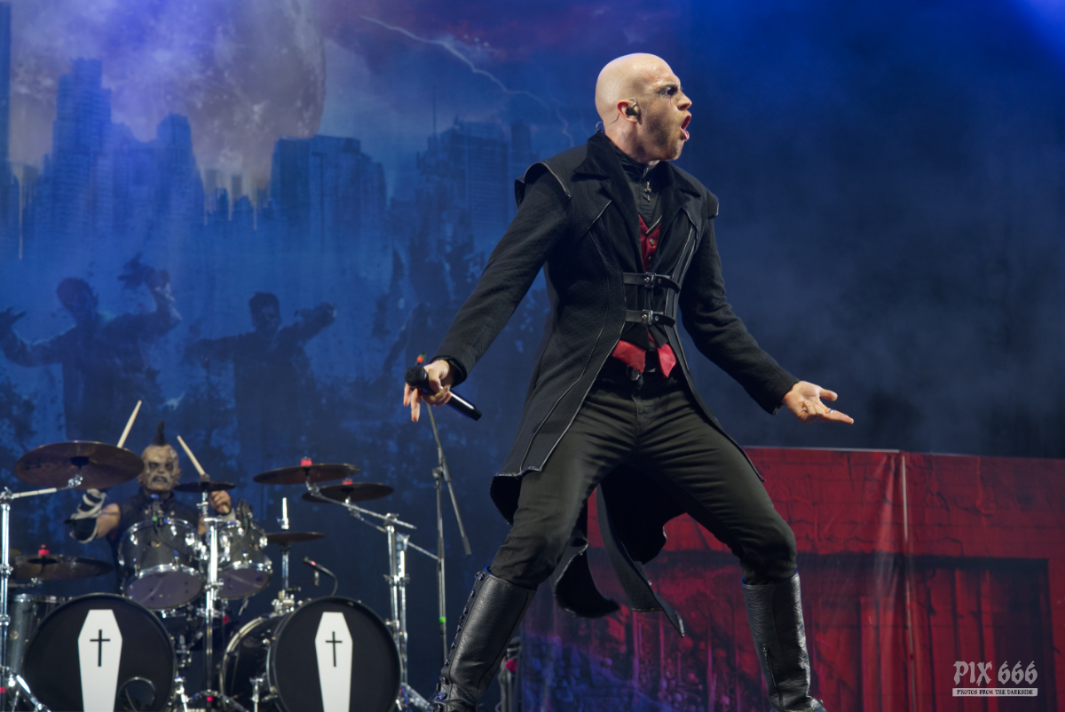 Mit ihrer Mischung aus modernem Metal, dramatischer Inszenierung und schauriger Eleganz lieferten Dominum beim Rock Castle Festival 2025 ein visuell wie musikalisch einprägsames Erlebnis. Schon beim ersten Song ‚Danger Danger‘ tauchte das Publikum in eine morbide Kulisse ein – düstere Bühnenoutfits, stimmungsvolle Lichtregie und eine perfekt abgestimmte Dramaturgie machten schnell klar: Hier ist jede Sekunde durchdacht. Der Sound war hart und hymnisch zugleich, irgendwo zwischen Power- und Horror Metal. Die Band zeigte sich spielfreudig und animierte das Publikum immer wieder zum Mitmachen und schuf eine dichte Atmosphäre, in der Horrorästhetik und Stadiontauglichkeit keine Gegensätze waren. „Wollt ihr, dass es episch wird – dann dürfen nicht nur fünf Leute mitmachen, sondern alle.“ Und es machten tatsächlich sehr viele mit – der fast ununterbrochene Circle Pit glich fast einem Zombie-Run. Dominum lieferten die erste bombastische Pyroshow des diesjährigen Festivals und überzeugten mit einer energiegeladenen, theatralischen Show, die das Publikum fesselte. Die Band gestand dem Publikum ihre Liebe für die tschechischen Fans und berichteten über ihren magischen Moment beim Masters Of Rock 2024. Tausende Hände wurden zum Song ‚We All Taste the Same‘ geschwenkt und bei der Zugabe ‚The Chosen Ones‘ wurde pausenlos gesprungen. Wer auf düstere Inszenierung und mitreißende Refrains steht, kam bei der Show von Dominum voll auf seine Kosten – ein starker Auftritt mit eigenem Charakter, eines der Highlights des gesamten Wochenendes.