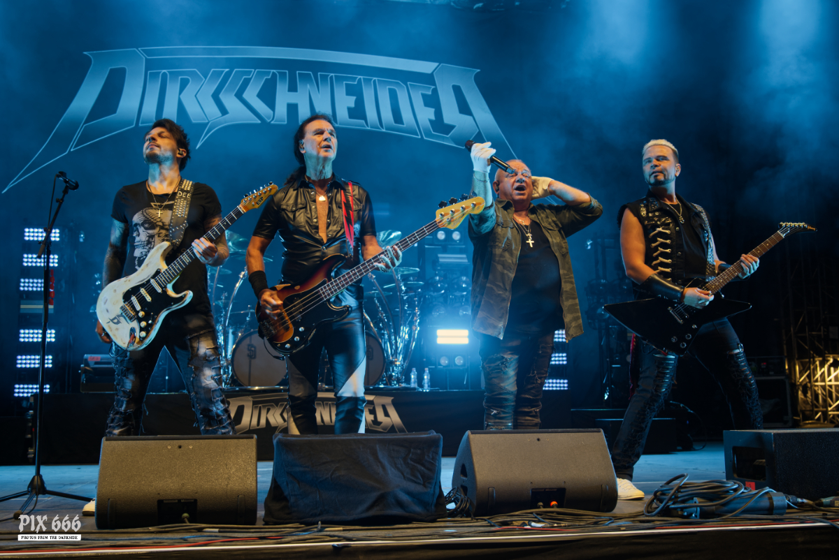 Wenn Udo Dirkschneider die Bühne betritt, weiß man, was man bekommt: ehrlichen, kompromisslosen Heavy Metal der alten Schule – und genauso war es auch beim Rock Castle Open Air 2025. Mit unverwechselbarer Reibeisenstimme, mächtigen Riffs und unerschütterlicher Bühnenpräsenz lieferte Dirkschneider ein nostalgisches und energiegeladenes Set, das sowohl junge Fans als auch gestandene Metalheads vereinte. Dirkschneider und tschechische Metalfans – das passt wirklich gut zusammen. In Scharen strömten die Metalheads nun vor die Bühne. Die Festivalshow stand ganz im Zeichen der alten Accept Klassiker. Songs wie ‚Midnight Mover‘, ‚Balls to the Wall‘ oder ‚Winter Nights‘ wurden von der Menge lauthals mitgegrölt. Bei ‚Balls to the Wall‘ hatten die Fans dann eine weitere Beschäftigung bekommen – sie spielten begeistert mit den riesigen Bällen, die ins Publikum geworfen wurden. Eine starke Lichtshow und hin und wieder dichte Nebelschwaden sorgten für den passenden Rahmen für die starke Old School Metalshow. Dirkschneider bewiesen einmal mehr, dass echter Heavy Metal zeitlos ist. Eine mitreißende, ehrliche Show voller Energie, Nostalgie und purer Lautstärke – Dirkschneider und seine Band sorgten für einen absoluten Abriss beim Rock Castle 2025. Nachdem es bei ‚Winter Dreams‘ aber fast schon etwas gemütlich wurde, gab es dann als Zugabe nochmal zwei magische Metalhymnen und ordentlich Power. ‚Up To The Limit‘ und ‚Burning‘ waren die Kracher zum Abschluss und hinterließen tausende glückliche Fans.