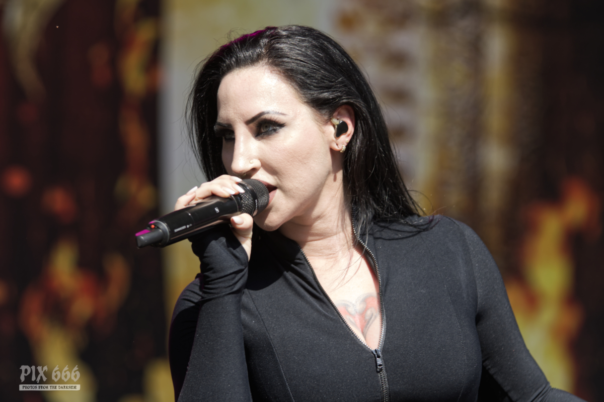 Nach anfänglichen Soundproblemen spielten Sirenia eine wundervolle Symphonic Metal Show. Mit einer atmosphärischen Mischung aus orchestraler Epik, schweren Gitarren und nordischer Melancholie sorgte die norwegische Band mit ihrer französischen Sängerin Emmanuelle beim Rock Castle Open Air 2025 für einen der elegantesten Auftritte des Tages. Die Frontfrau beeindruckte mit opernhafter Stimmgewalt und ausdrucksstarker Bühnenpräsenz, während die Band sie mit donnernden Riffs, symphonischen Keyboards und präzisem Drumming kraftvoll untermalte. Die Balance zwischen klassischem Gothic-Flair und moderner Härte funktionierte dabei perfekt. „Es ist schön zurück zu sein in der Tschechischen Republik bei wunderschönem Wetter“ sagte Emmanuelle. „Wir spielen jetzt ein bisschen neues Zeug – der nächste Song heißt ‚A Thousand Scars‘“. Ein wirklich mitreißendes Stück, welches gleich im Ohr bleibt. „Ich will eure Hände in der Luft sehen“ hieß es dann. Aber egal ob ältere Klassiker oder neuere Titel – das Publikum genoss die epischen Klangwellen, sang mit, schwelgte in den Melodien und feierte die tolle Stimmung. Nun folgte das Cover des 80er Jahre Hits ‚Voyage Voyage‘ und es kam so was wie Urlaubsstimmung auf. Alle, die beim Rock Castle waren, hatten sich an diesem Wochenende für ihre Reise eh das beste Ziel ausgesucht. Sirenia lieferten bis zum Ende eine stilsichere, klanglich dichte und emotional mitreißende Performance. Ein Fest für Fans symphonischen Gothic Metals – gefühlvoll, kraftvoll und wunderschön düster. Mit den Worten „Danke, dass ihr alle hier in der brennenden Sonne geblieben seid“ verabschiedeten sich die Musiker vom Publikum.