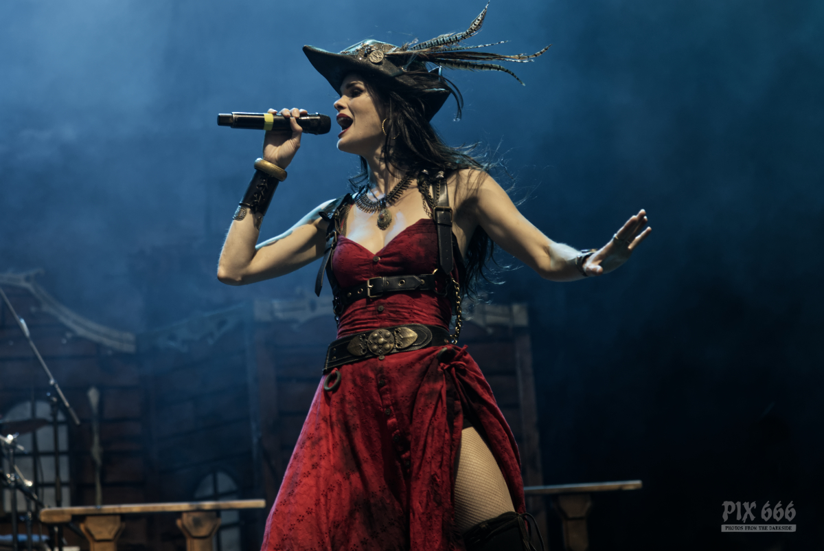 Eine atemberaubende Show wie eh und je lieferte die Band Visions Of Atlantis. Das tschechische Publikum, bei dem die Piraten Metaller längst einen festen Platz im Herzen haben, spendete unaufhaltsam stürmischen Applaus. Es folgte Hit auf Hit, gepaart mit ein paar neuen Stücken. Es entstand eine wunderbare Fahrt durch raue See, aber auch ruhige Passagen mit fast Windstille gehören zum Repertoire der Ausnahmeband. Wundervolle Lichter begleiteten das musikalische Spektakel. Die Fans in der ersten Reihe sangen lautstark mit und immer wieder überquerten Crowdsurfer die Menge. Songs wie ‚Collide‘ oder die neue Single ‚Hellfire‘ wurden perfekt in die Show integriert – rotes Licht und dicke Nebelschwaden durchfluteten die Bühne. Das Wechselspiel von Clémentine Michele Guaitoli sorgte wieder mal für tiefe Emotionen und dramatische Momente, während die restliche Band die Bühne mit Symphonic-Metal-Wucht füllte. Songs wie ‚Melancholy Angel‘ oder ‚Legion of the Seas‘, die immer noch zu den Lieblingen der Fans gehören, verwandelten das Festivalgelände in ein episches Abenteuer – das Publikum sang mit, jubelte und ließ sich mitreißen. Viel zu schnell war aber das Ende der Fahrt erreicht. „Das ist der letzte Song – ich zähle bis drei und ihr schreit ‚Armada‘“. Wie immer bezogen die Musiker das Publikum toll in die Show mit ein, was kann man da eigentlich noch besser machen? Wir sagen mal – nächstes Level Pyroshow – hoffentlich in ein paar Jahren mal wieder zu Gast im wunderschönen Schlossgarten von Moravsky Krumlov. Visions of Atlantis lieferten eine mitreißende, bewegende und perfekt inszenierte Performance. Ein Fest für Fans symphonischer Klänge, großer Emotionen und musikalischem Fernweh – einfach majestätisch.