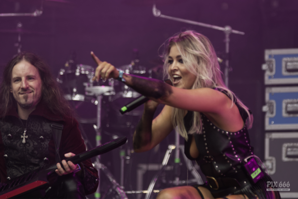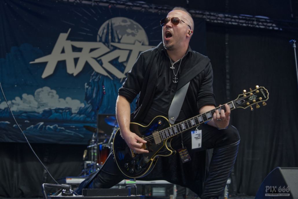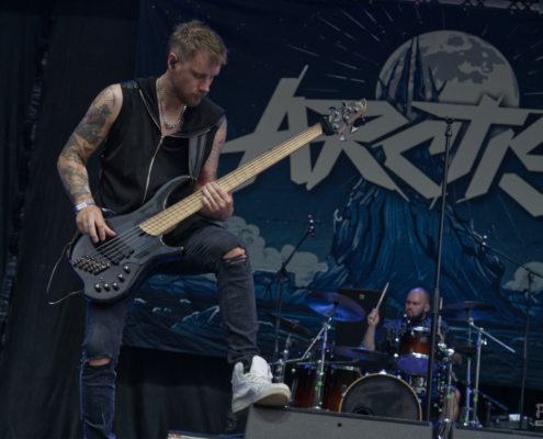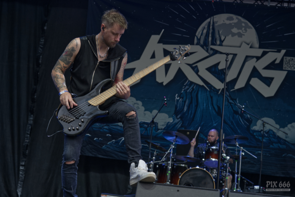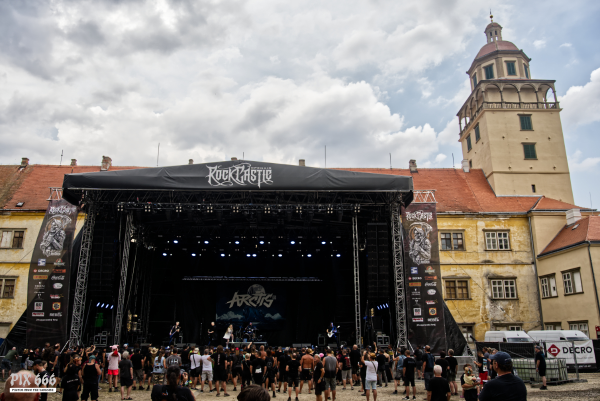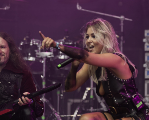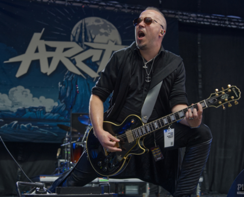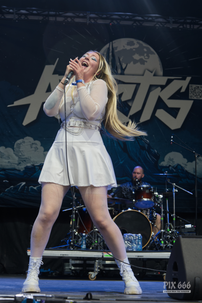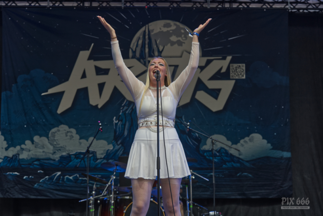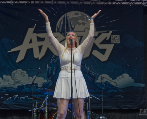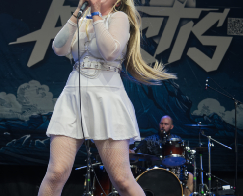 Das Banner mit dem Bild ihres Debutalbums zierte die große Open Air Bühne – „wir sind Arctis aus Finnland“ sagte Sängerin Alvi. Mit einem Sound, der frostige Weite und metallische Härte vereint, entführten Arctis das Publikum beim Rock Castle Open Air in nordisch inspirierte Klanglandschaften. Die Band überzeugte mit einer druckvollen Modern Metal Show, die majestätische Keyboardflächen, treibende Rhythmen und kraftvolle Riffs sorgten für tolle Stimmung im Publikum. Auch der Band hat es Spaß gemacht und vor allem Tschechien schien es ihnen angetan zu haben – „Es ist so schön in eurem Land, ich liebe euer Bier ihr habt das beste Bier der Welt“. Arctis schafften es, eine Atmosphäre von rauer Schönheit und melancholischer Tiefe zu erzeugen. „Wir haben bisher ein Album und das zweite kommt bald – wir spielen heute zwei unveröffentlichte Songs und das ist einer davon ‚Unstoppable‘“. Die Fans klatschten auch beim neuen Song genüsslich im Takt mit und ließen sich von den schönen Melodien mitreißen. „Wir bringen euch eine nordische Brise mit dem nächsten Song“ hiess es dann. Und pünktlich zum Song ‚Frozen Swan‘ frischte der Wind auf und hunderte kleine Blätter wehten über dem Gelände durch die Luft – es sah ein bisschen aus wie ein Schneegestöber in Finnland. Arctis brachten beim Rock Castle 2025 eine stimmungsvoll-wuchtige Show auf die Bühne. Atmosphärisch dicht, musikalisch präzise und mit starker Live-Energie – ein Geheimtipp, der Eindruck hinterließ und von dem man mit Sicherheit in Zukunft noch einiges hören wird.
