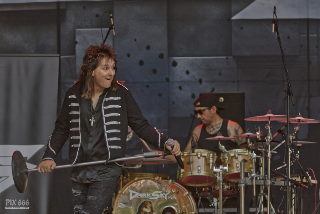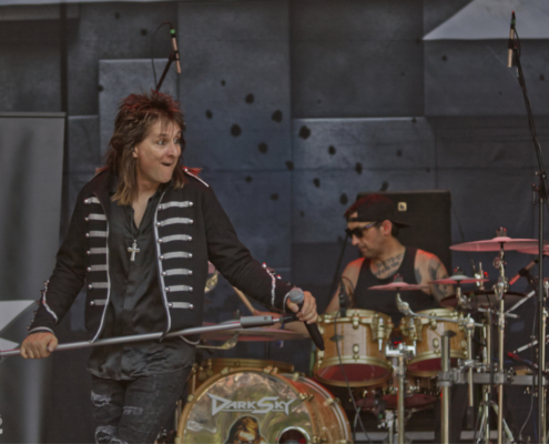 Wieder war es mega heiß am Samstag und wieder hatten zahlreiche Besucher einen Platz unter den Bäumen gefunden. Sänger Frank sagte „Kommt Leute Ich will euch vorn an der Bühne seehen“ Aber auch vor der Bühne spielte sich schon einiges ab – mehre hundert Fans feierten zum Beispiel beim tollen Song ‚Endless Forgiveness‘. Mit einer perfekten Mischung aus melodischer Stärke und emotionalem Tiefgang überzeugten Dark Sky beim Rock Castle Open Air 2025 auf ganzer Linie. Die Band präsentierte ein ausgewogenes Set mit kraftvollen Hymnen, eingängigen Refrains und virtuosen Gitarrensoli. Der Sound war klar und druckvoll – das Zusammenspiel aus Keyboards und Gitarren verlieh der Musik eine epische Tiefe, ohne dabei an Härte zu verlieren. „Den Nächsten kennen bestimmt viele von euch – dreht euch“ hieß es dann und das Publikum hatte Spaß beim 80er Cover ‚You spin me round‘. Und weiter ging es mit guter Stimmung – Sänger Frank jetzt für einen Song im Eishockeytrikot auf der Bühne – es war Zeit für die legendäre Hymne ‚Heroes On Ice‘, die Frank vor einigen Jahren für seinen Lieblingsverein Schwenninger Wild Wings geschrieben hat – immer wieder schön anzuhören. Das Publikum nahm die Performance dankbar auf: mit hochgereckten Fäusten, begeistertem Applaus und lauten Mitsing-Momenten bei den Refrains. Dark Sky zeigten sich beim Rock Castle 2025 als erfahrene Live-Band mit musikalischer Klasse und emotionaler Tiefe. Ein rundum starker Auftritt, der für bleibende Eindrücke sorgte. Nun wird es mal Zeit für eine Show bei uns in Österreich.