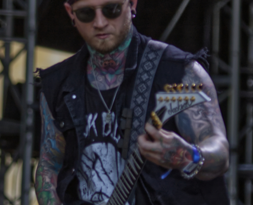 Und schon war es passiert – wir waren am letzten Festivaltag angekommen. Zeit, schon mal ein kleines Fazit zu ziehen. Unser spezieller Fokus liegt dabei auf dem Festivalgelände. Die Auswahl an Ständen beim Rock Castle lässt keine bzw. kaum Wünsche offen. Die Verteilung und Anordnung von Merch, Bekleidung, Schmuck und Essen/Getränkeständen war perfekt. Vor allem die Getränkepreise waren sehr angenehm – und das ist auch gut so, denn trinken ist wichtig bei einem Sommer Open Air, vor allem wenn man ein richtig heißes Wochenende erwischt hat. Das Gelände selbst ist groß, hat viele Sitzgelegenheiten und bietet sogar so viel Platz, dass es sich viele Besucher im mittleren und hinteren Bereich auf selbst mitgebrachten Picknickdecken gemütlich gemacht haben – das ist auf jeden Fall eine tolle Idee, denn drei Tage je zwölf Stunden stehen würde sonst ganz schön kräftezehrend sein. Wir selbst starteten am Samstag mit der zweiten Band.