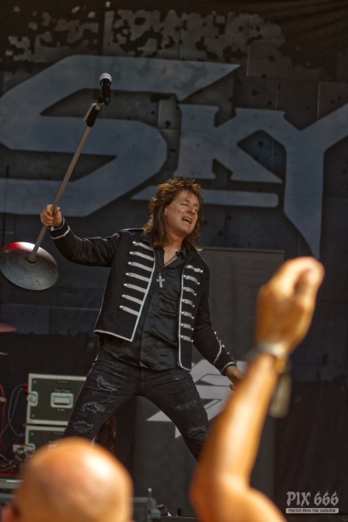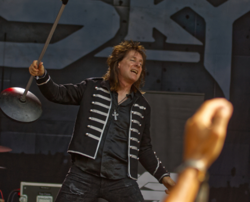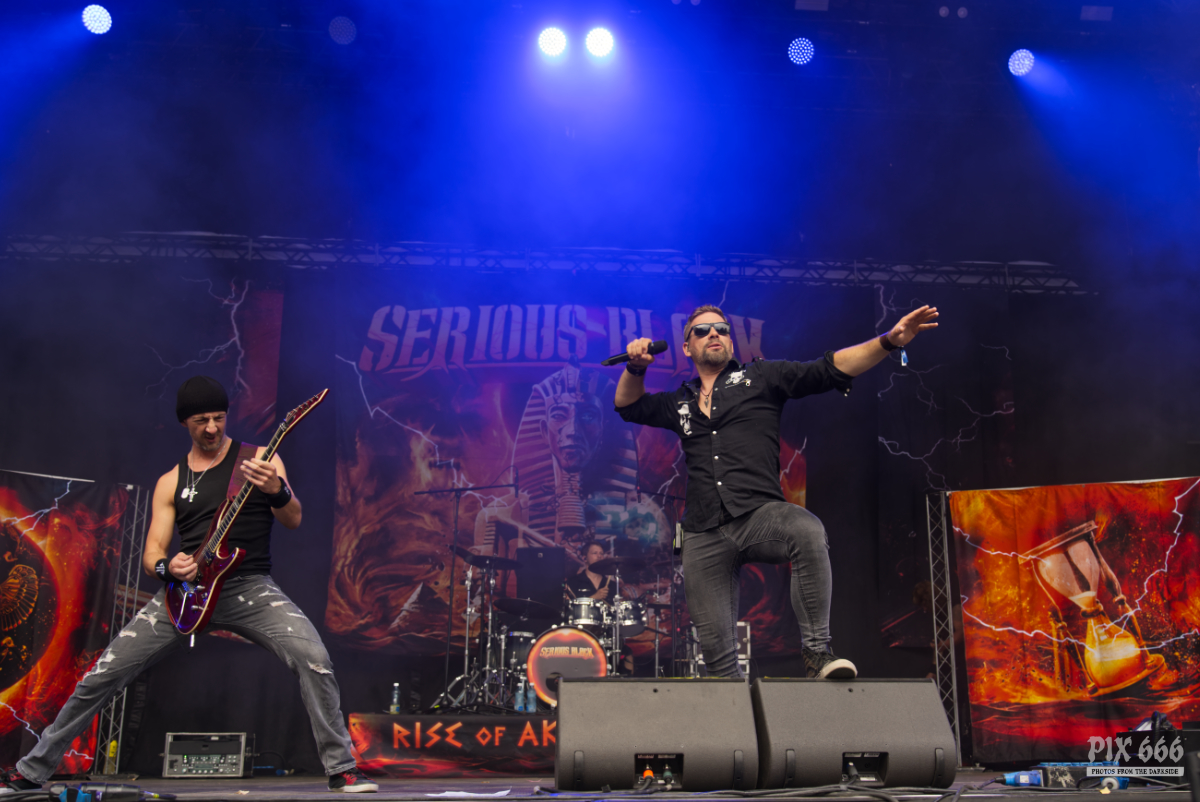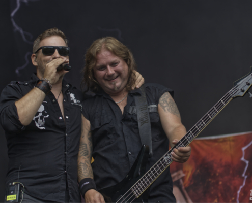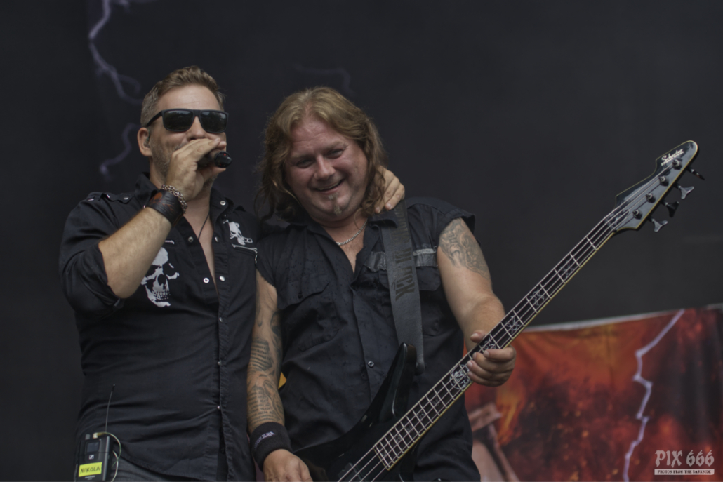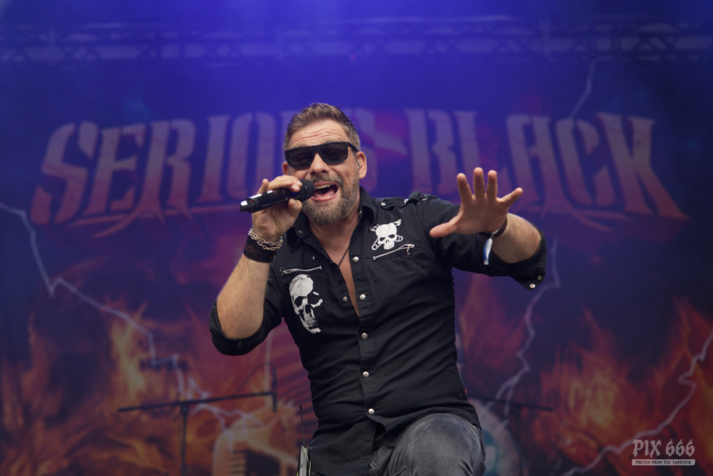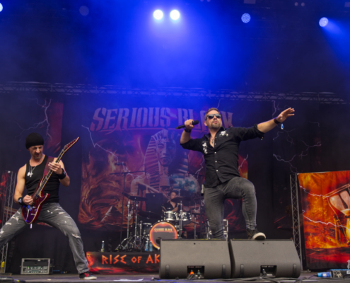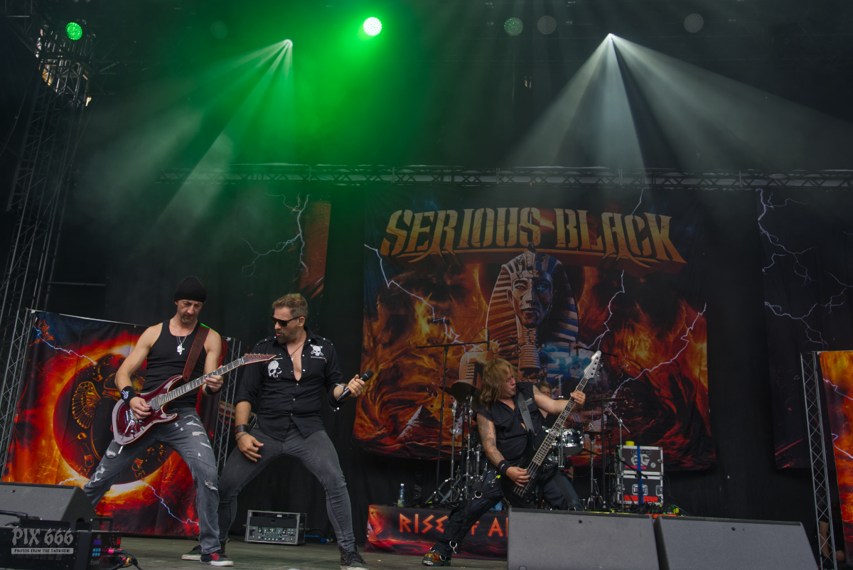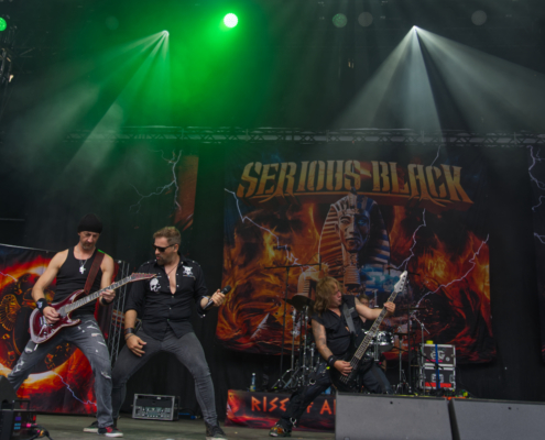 Nun gab es wieder mal einen Rückkehrer zu erleben. Serious Black spielten 2023 hier die Nightsession inklusive einer Pyroshow – in diesem Jahr ging es für die Band aus Deutschland bereits am späten Nachmittag auf die Bühne. Serious Black zeigten 2025 erneut eindrucksvoll, warum sie längst zu den festen Größen des modernen Power Metal zählen. Mit einem druckvollen, melodisch ausgefeilten Set zogen sie das Publikum vom ersten Song an in ihren Bann. Frontmann Niklas überzeugte mit starker Stimme und souveräner Bühnenpräsenz, während die Band energiegeladen aufspielte. Auch der zwischenzeitlich kurz ausgefallene Bass konnte die Band nicht aufhalten. Melodische Gitarrenriffs, hymnische Refrains und eine perfekt ausbalancierte Mischung aus Härte und Eingängigkeit prägten den Auftritt. „Macht alle eure Hände hoch bis nach hinten – jetzt könnt ihr Mitsingen“. Und so geschah es dann auch beim Song ‚Serious Black Magic‘. Die tolle Power-Metal Hymne sorgte für kollektives Mitsingen, Headbangen und Begeisterung nicht nur in den ersten Reihen. „Haben wir noch Zeit für einen Song, Tschechien? Are you ready to fight?“ weiter ging es also mit ‚ Tonight I’m Ready to Fight‘ aus dem Jahr 2022. „Ich hoffe wir sehen uns irgendwann, irgendwo wieder oder ihr kommt nachher gleich zum Merch“ sagte der Serious Black Sänger zum Abschied. Aber zum Schluss sorgten die Musiker mit dem Cover ‚Rockin‘ in the Free World‘ für ein grandioses Ende ihrer umjubelten Show.