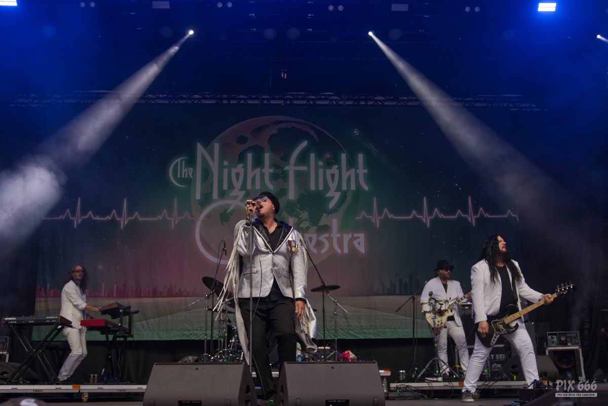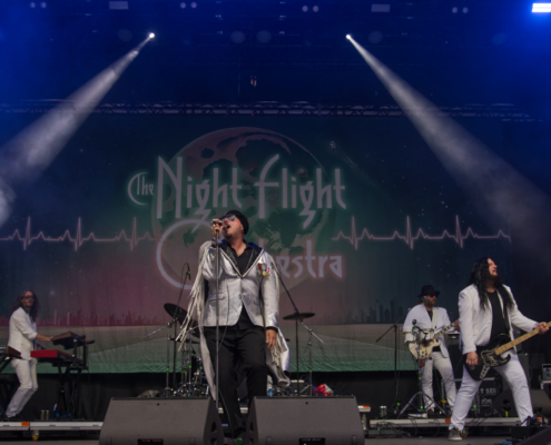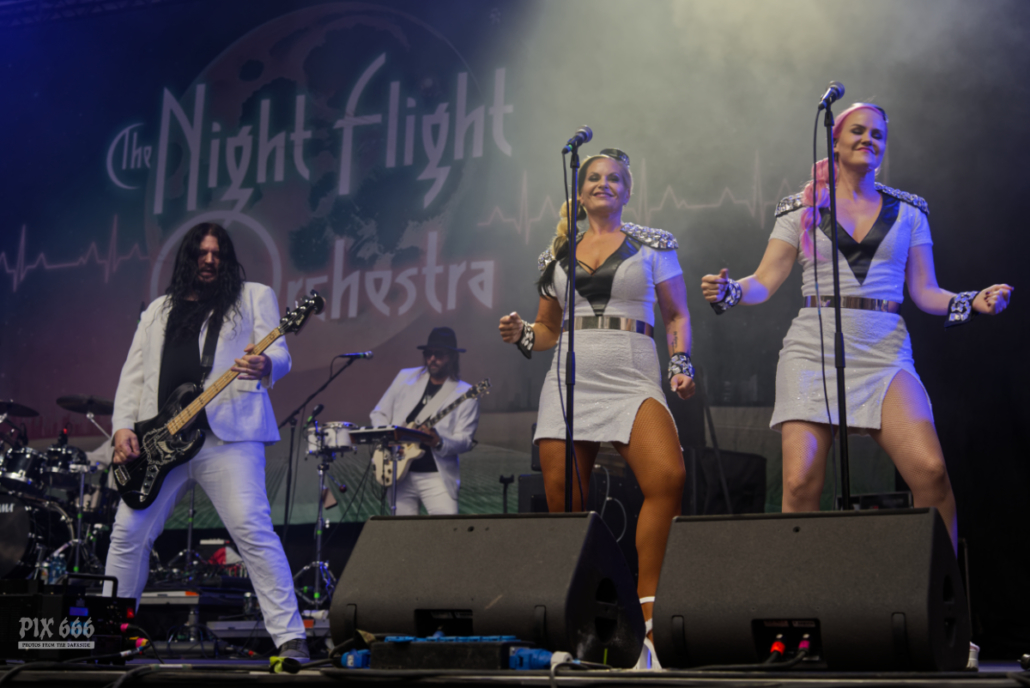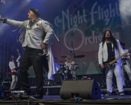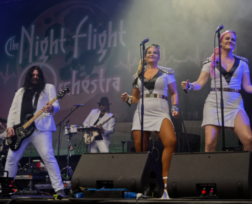 Mit einer großen Portion 70er- und 80er-Flair, guter Musikalität und charismatischer Performance lieferten The Night Flight Orchestra beim Rock Castle 2025 einen unterhaltsamen und stilvollen Auftritt ab. Die Band um Björn Strid verwandelte die Festivalbühne in eine retrofuturistische Rock-Disco, komplett mit Funk-Vibes, Synthesizer-Sounds und eleganten Outfits. Mit ihrem aktuellen Album ‚Give Us the Moon‘, welches Anfang 2025 erschienen ist, kletterte die Band in Deutschland wie schon mit den drei Alben zuvor erneut in die Top20 der Albumcharts. Erstmal gelang das auch in Österreich. Songs wie ‚Shooting Velvet‘ animierten zum Tanzen, Mitsingen und Träumen. Trotz aller stilistischen Nostalgie wirkte nichts altbacken – im Gegenteil. Nur leider wollte der Funke aufs Publikum nicht so richtig überspringen, wahrscheinlich waren die Fans noch ausgepowert von der Trollfest-Orgie zwei Stunden zuvor. Aber spätestens bei ‚White Jeans‘ waren dann doch jede Menge Fäuste in der Luft und das Konzert von The Night Flight Orchestra nahm noch mal an Fahrt auf. Mit schönen Melodien und relativ sanftem Sound fielen die Schweden stilvoll aus dem Rahmen.