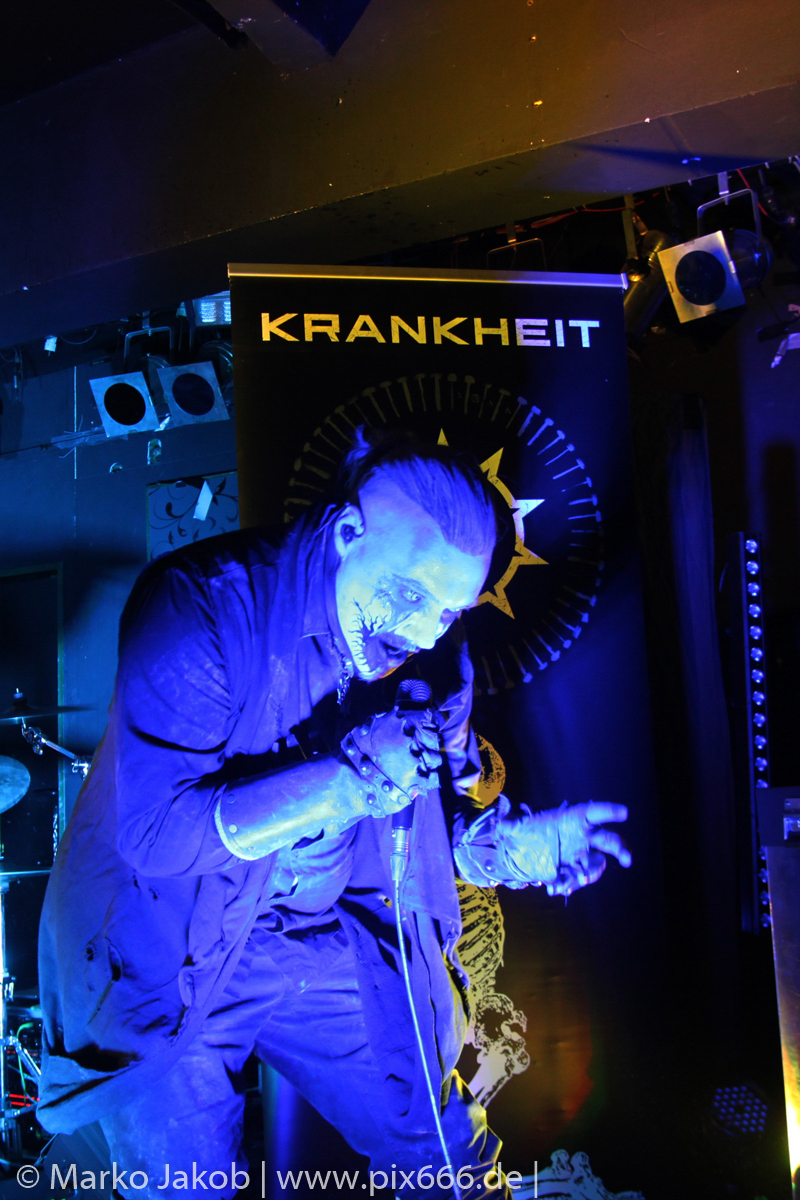 Sie starteten ihren Auftritt nach einem Intro mit einem Song vom neuen Album. ‚Kalte Liebe‘ zeigte gleich, wie außergewöhnlich die Musik der Österreicher ist – Metal, unterbrochen von klassischen Zwischenspielen. Prägnant sind natürlich auch Make-Up und die Bühnenoutfits von Sänger Christian und seinen Kollegen. Die Band hatte neben einigen neuen Songs auch Klassiker mit dabei, so zum Beispiel ‚Für Elise‘ und ‚Krampus‘. Die Show der Band war unglaublich toll und das Publikum war total begeistert. Die Jungs zeigten extremen Einsatz, vor allem der Gitarrist ist durch sein wildes Herumspringen aufgefallen. Das war Leidenschaft pur. Den Abschluss eines fantastischen Auftritts machten Krankheit mit dem Song ‚Saat des Bösen‘ vom gleichnamigen Album aus dem Jahr 2016. Gothic Empire ist froh, die Band Anfang November beim Schattenwelt Festival in Wien erneut begleiten zu dürfen.
