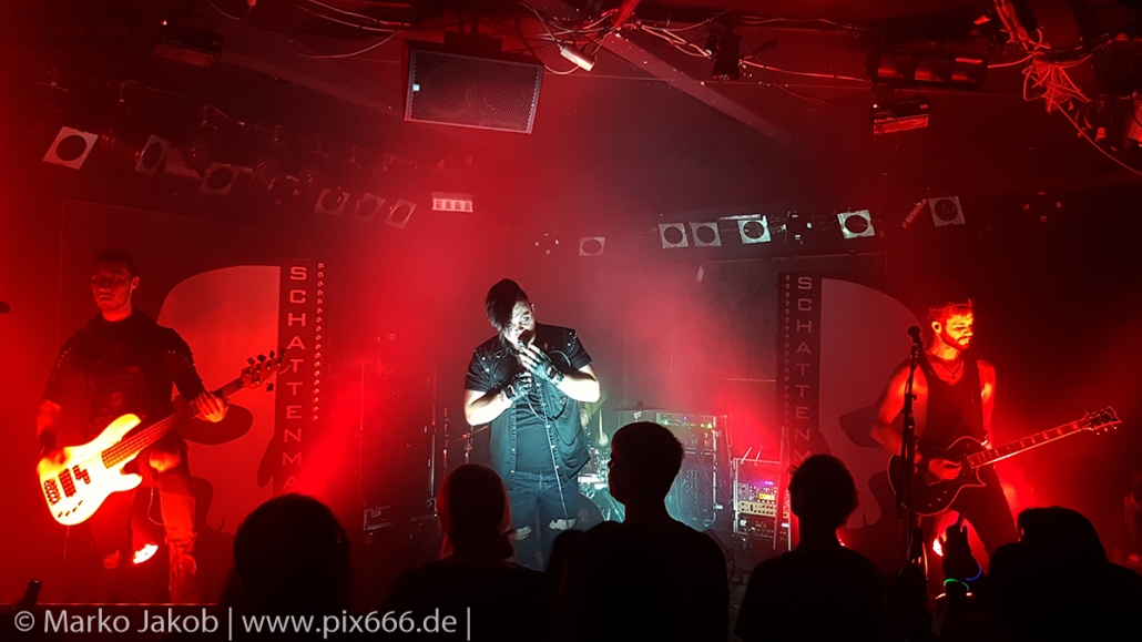 Die Band Schattenmann ist nicht mehr aufzuhalten, ziemlich rasant wächst ihre Beliebtheit und Fangemeinde. Sie sind relativ neu im Geschäft. Die Band wurde vor etwa zwei Jahren gegründet und hatte in diesem Jahr bereits einige Festivalauftritte, unter anderem auch beim bekannten M’era Luna Festival und beim Autumn Moon Festival in Hameln. Harte Gitarrenriffs und treibende Drums beherrschen ihren Sound. Im März 2018 veröffentlichte die Band um den Ex-Stahlmann Gitarristen Frank Herzig ihr Debutalbum ‚Licht An‘.