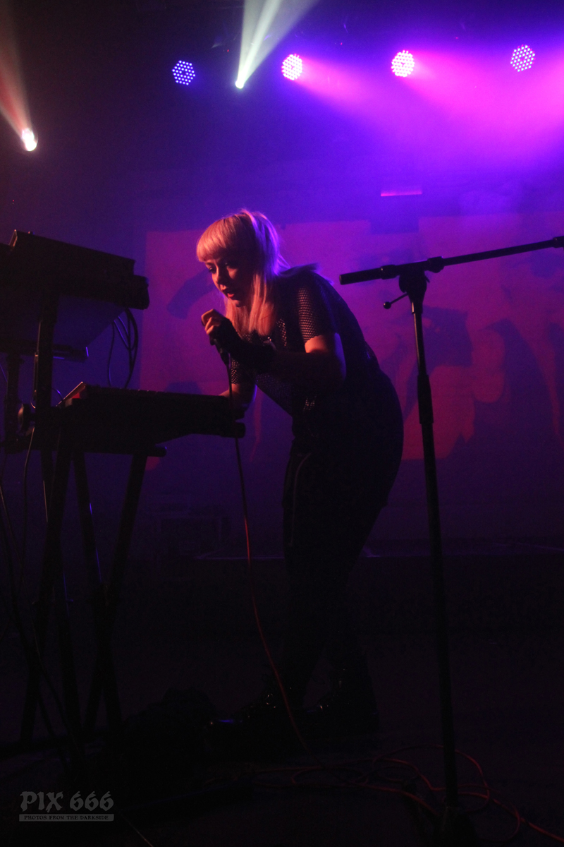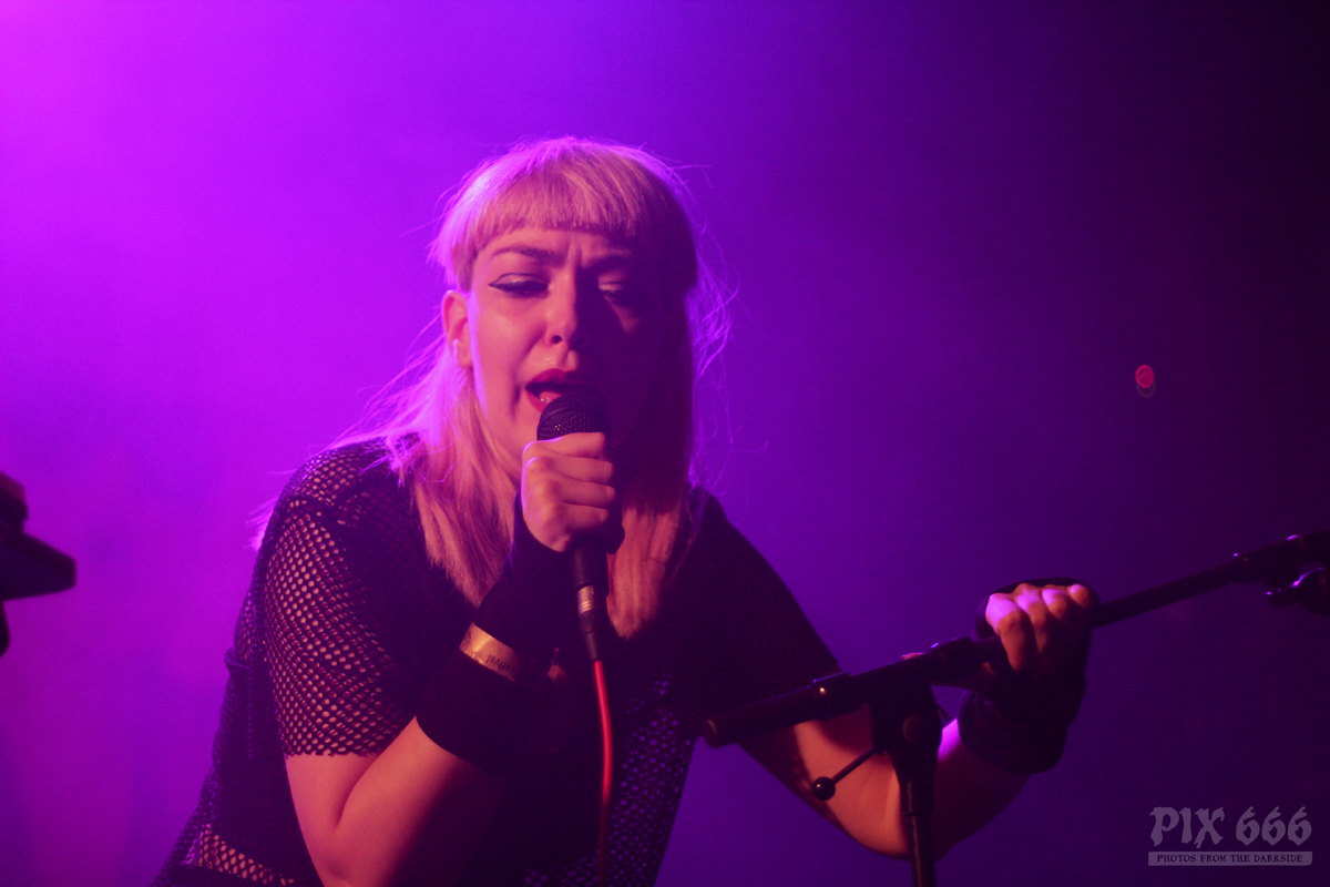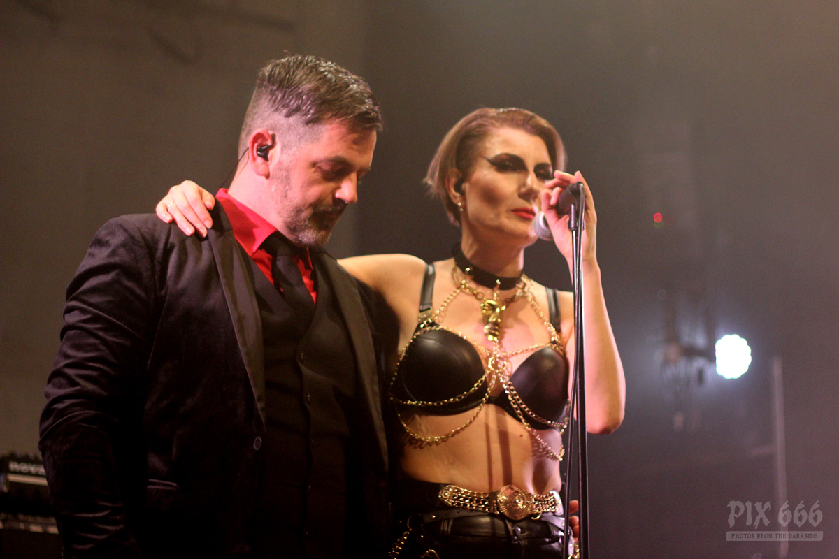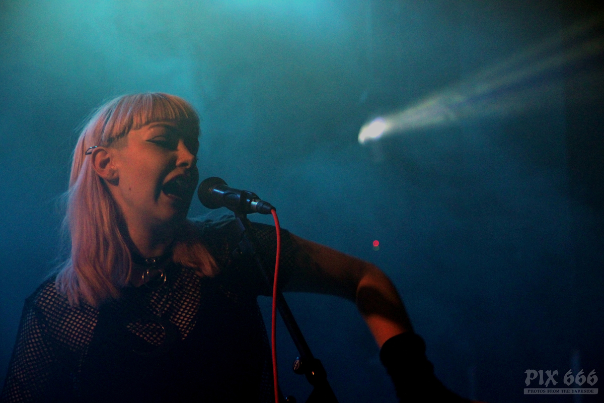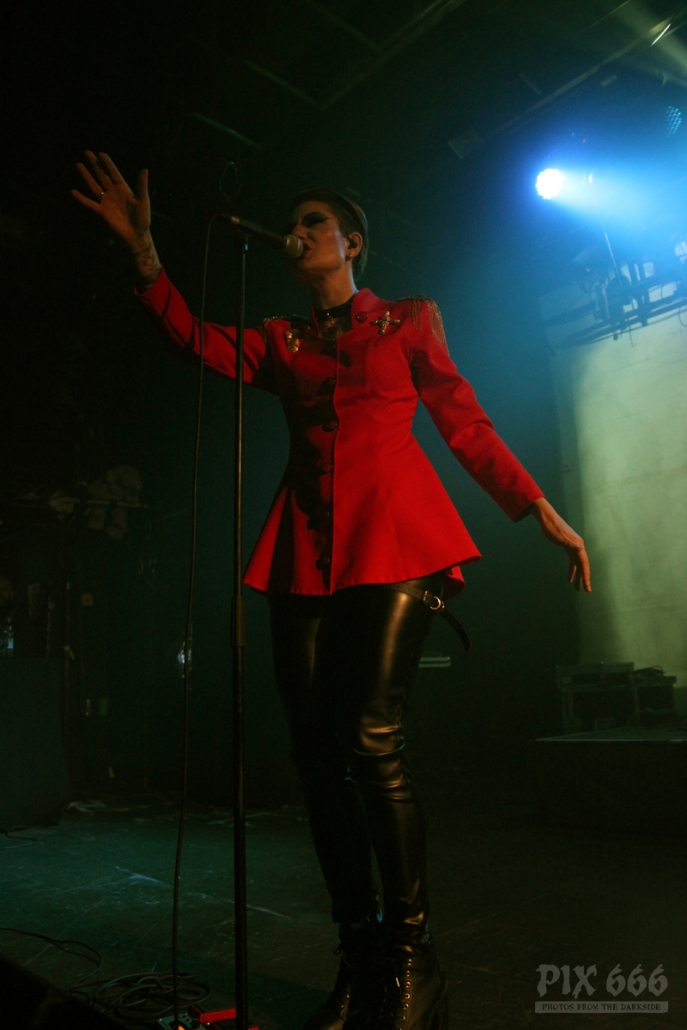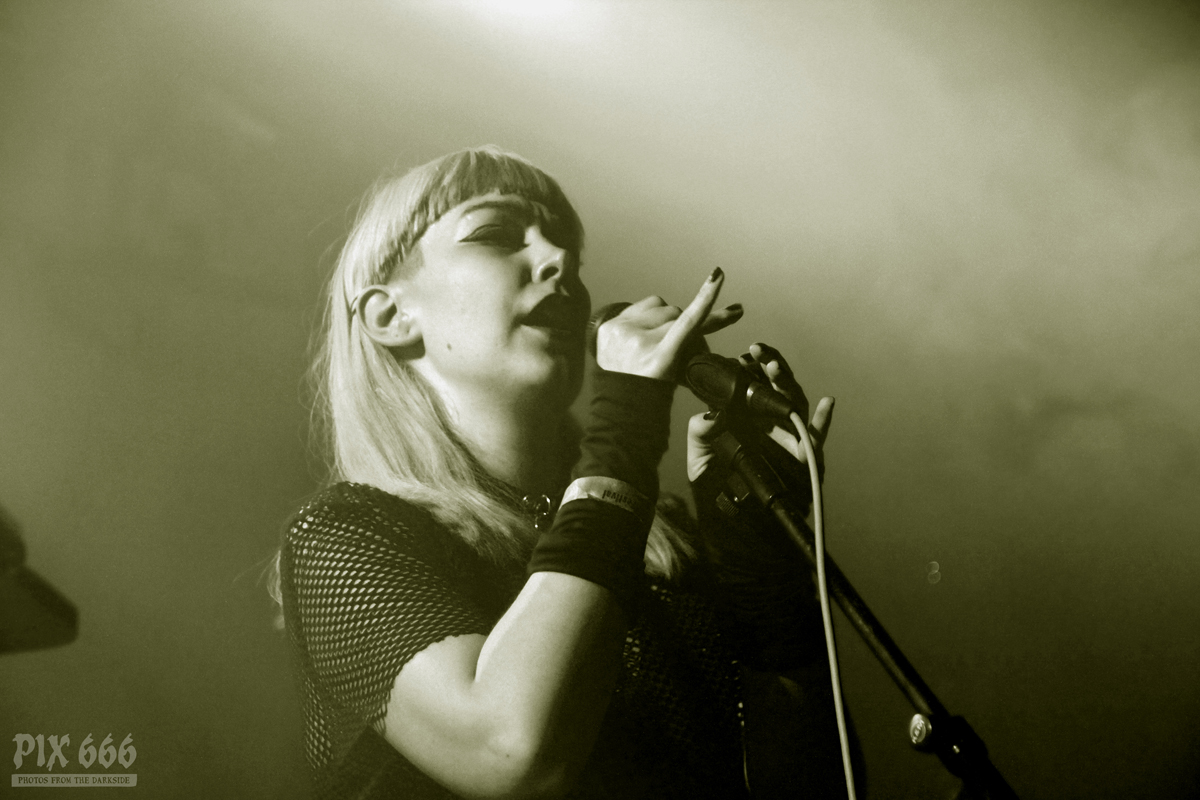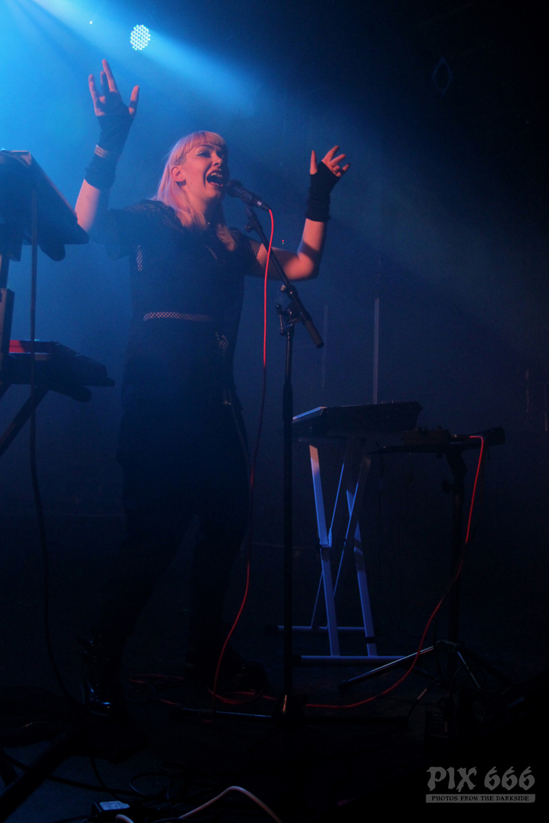 Die ersten drei Songs, die Black Nail Cabaret mitgebracht hatten waren sehr ruhig, aber ab ‚Spheres‘ wurde es dann flott und Schattenwelt war wieder ein Tanztempel, inzwischen wurde in den ersten Reihen auch richtig gekreischt. „Ihr seid toll“ sagte Emese. Die rote Uniform hatte dann ausgedient und es gab ein schickes Oberteil und viel Haut zu sehen – die Fans rasteten dann allmählich so richtig aus und die Absperrung wackelte sogar ein Bisschen. Die ((szene)) war inzwischen richtig gut vollgepackt, den Auftritt des ungarischen Pop-Noir Duos wollte sich niemand entgehen lassen. „Das ist leider schon das letzte Lied – ein Song, ohne den wir das hier nicht beenden können.“ – natürlich war die Rede vom Klassiker ‚Veronica‘ vom Debutalbum der Band.