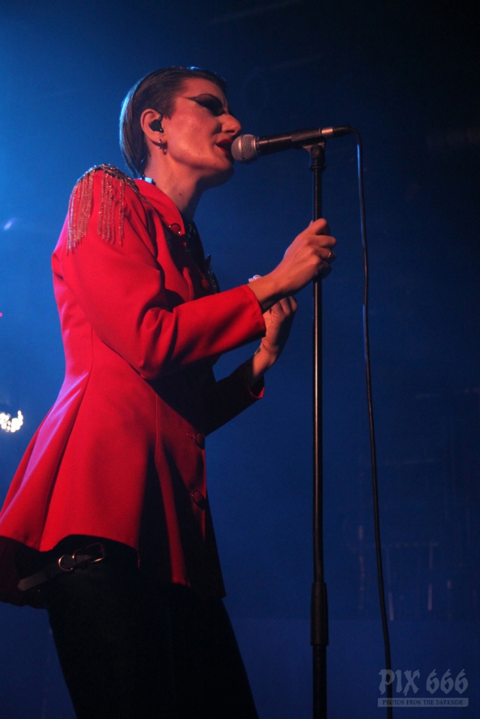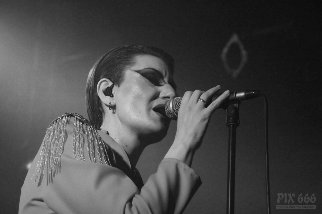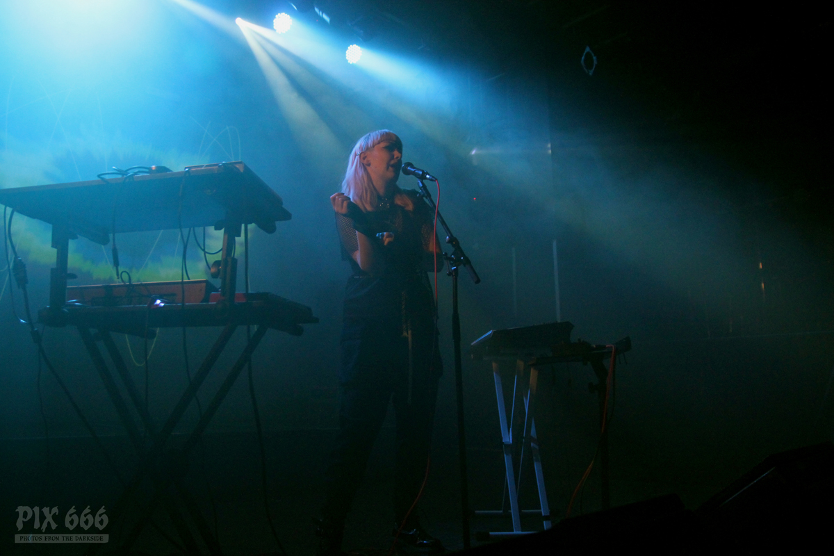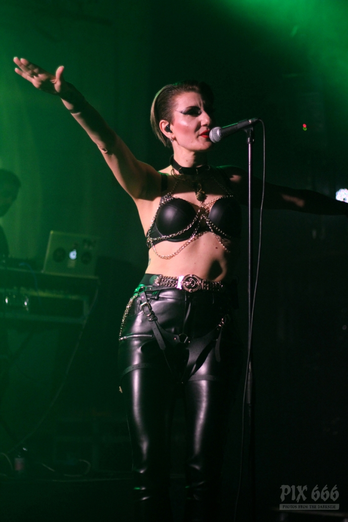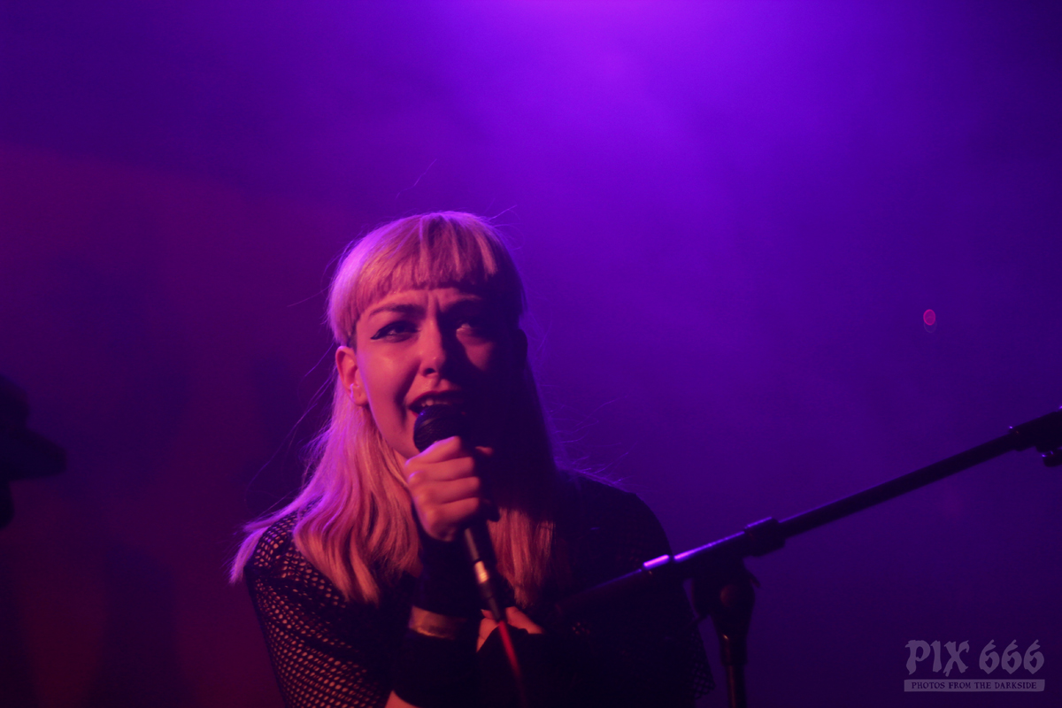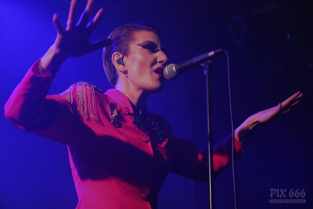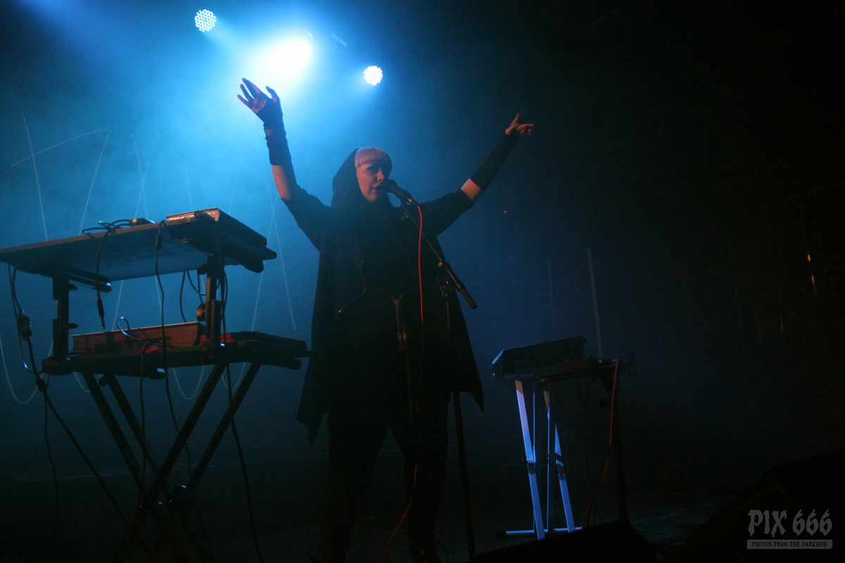 Die ersten drei Songs, die Black Nail Cabaret mitgebracht hatten waren sehr ruhig, aber ab ‚Spheres‘ wurde es dann flott und Schattenwelt war wieder ein Tanztempel, inzwischen wurde in den ersten Reihen auch richtig gekreischt. „Ihr seid toll“ sagte Emese. Die rote Uniform hatte dann ausgedient und es gab ein schickes Oberteil und viel Haut zu sehen – die Fans rasteten dann allmählich so richtig aus und die Absperrung wackelte sogar ein Bisschen. Die ((szene)) war inzwischen richtig gut vollgepackt, den Auftritt des ungarischen Pop-Noir Duos wollte sich niemand entgehen lassen. „Das ist leider schon das letzte Lied – ein Song, ohne den wir das hier nicht beenden können.“ – natürlich war die Rede vom Klassiker ‚Veronica‘ vom Debutalbum der Band.