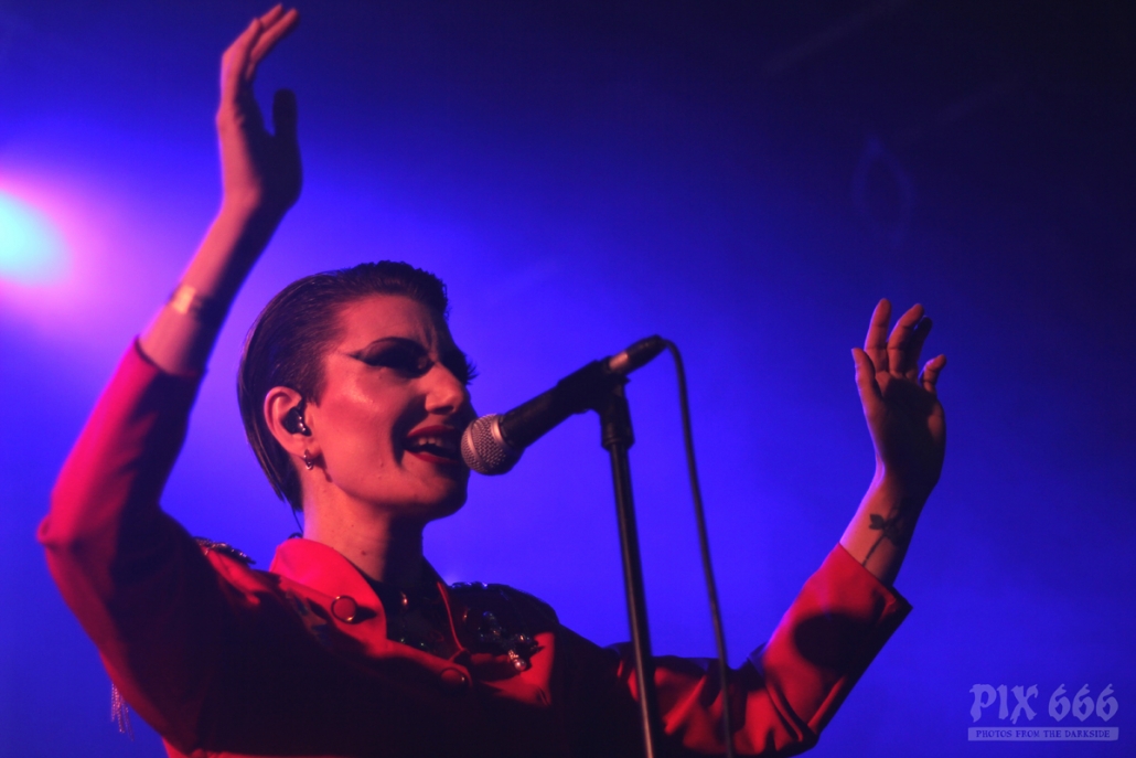Auf die nächste Band haben sich viele Festivalbesucher ganz besonders gefreut, denn Black Nail Cabaret aus Ungarn haben sich in den letzten Jahren einen Namen in der Szene gemacht und sind für die tollen Live-Performances bekannt. Auch auf die abwechslungsreiche Garderobe von Sängerin Emese sind die Fans jedes Mal gespannt. Heute gab es einen tollen roten Blazer, der zu einer Art Uniformjacke aufgepimpt wurde.