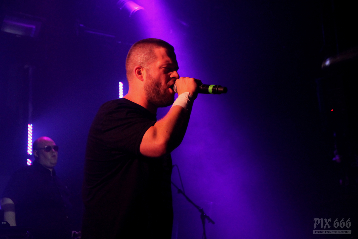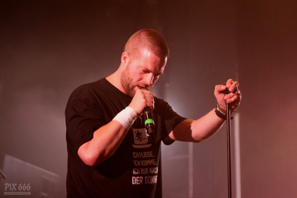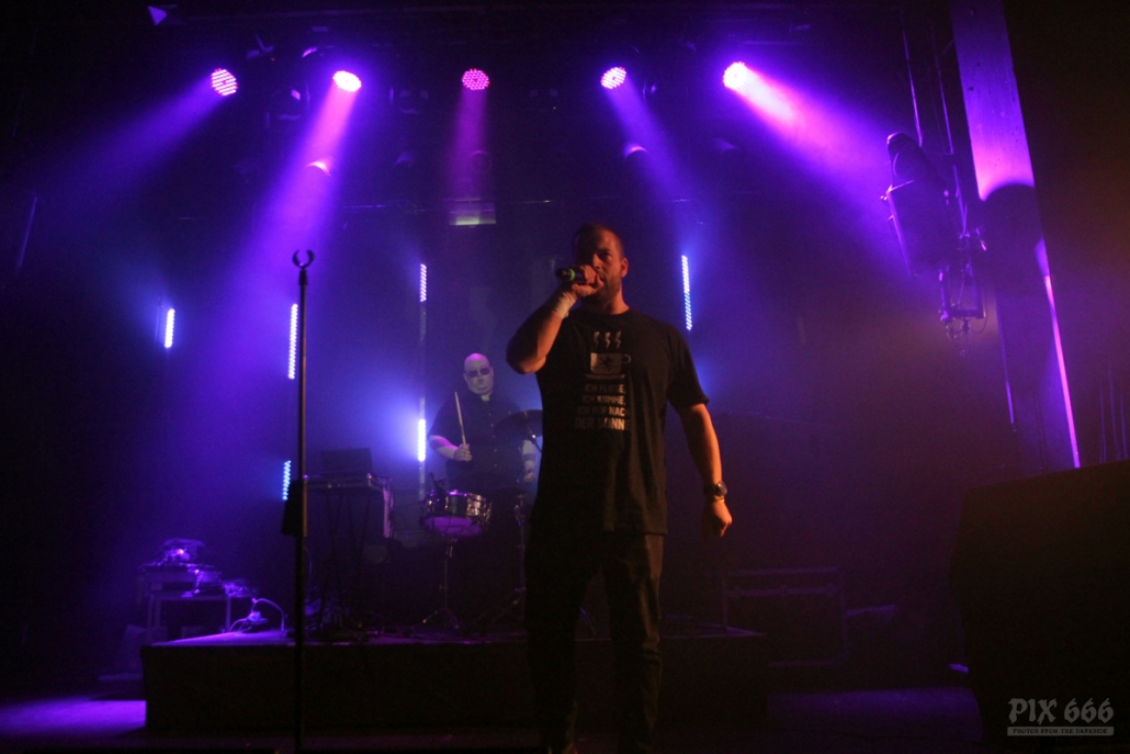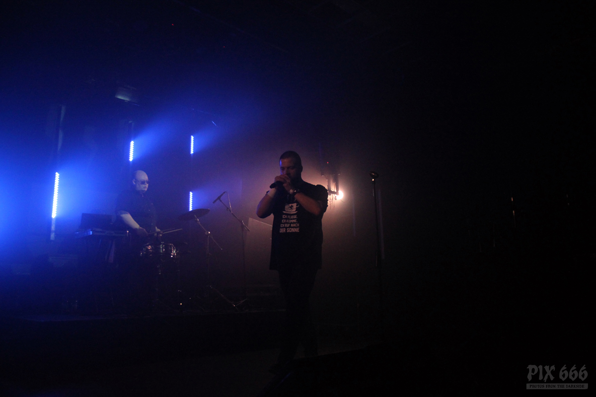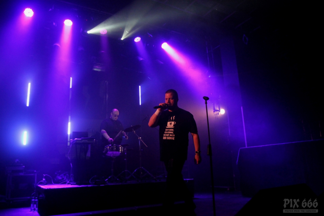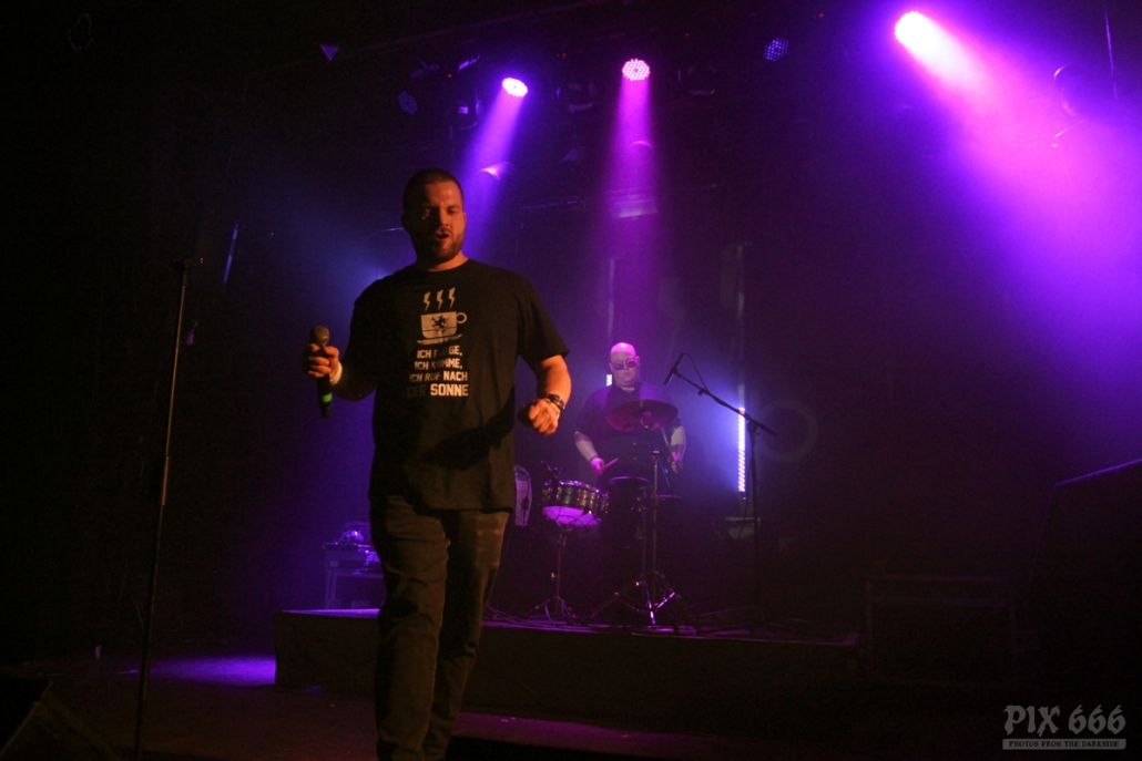 Zum Abschluss des Festivals stand nun die Band in den Startlöchern, die am Längsten auf ihren Auftritt warten musste – das Future Pop Duo Rotersand. „Ich sitze seit drei Stunden wie ein Tiger im Käfig und warte darauf, dass die Show endlich losgeht“ sagte Sänger Rascal. Los ging es mit einem neuen Song – ‚Grey‘ sorgte sofort für tolle Stimmung bei der Headlinershow, die zu einer Art Mitternachtsdisco mutierte – so ziemlich alle haben ununterbrochen getanzt.