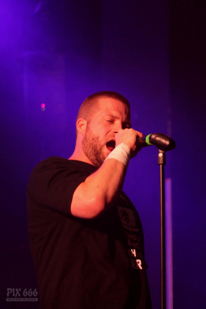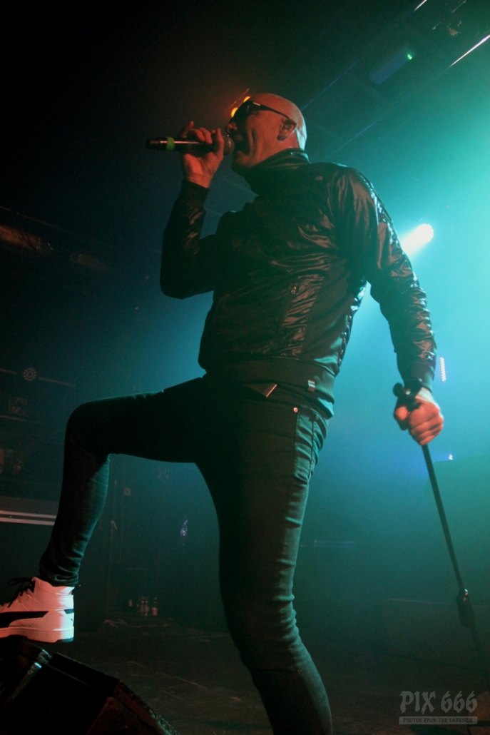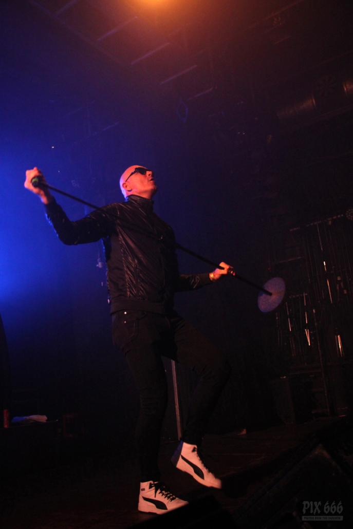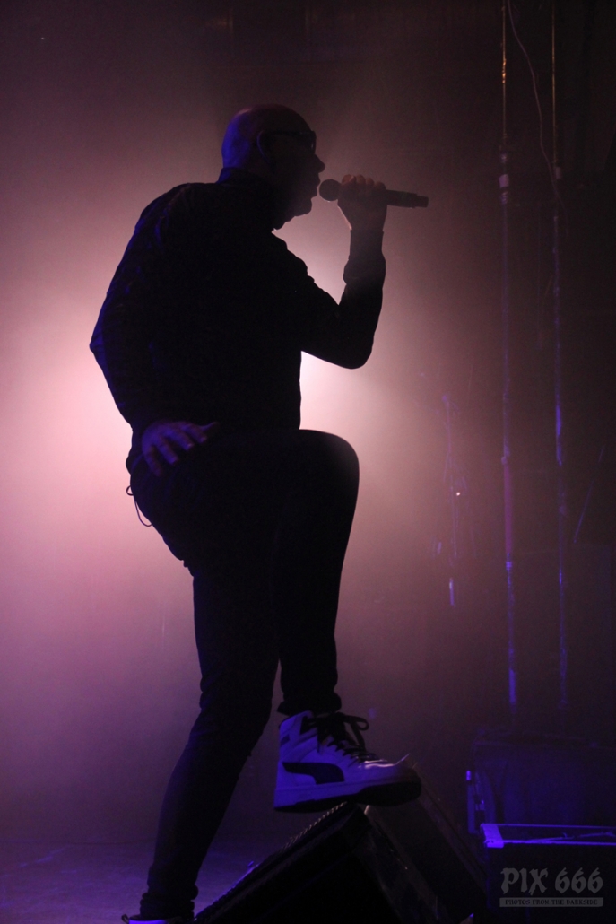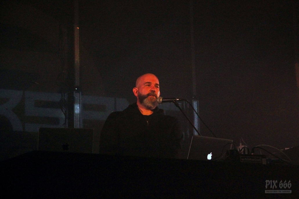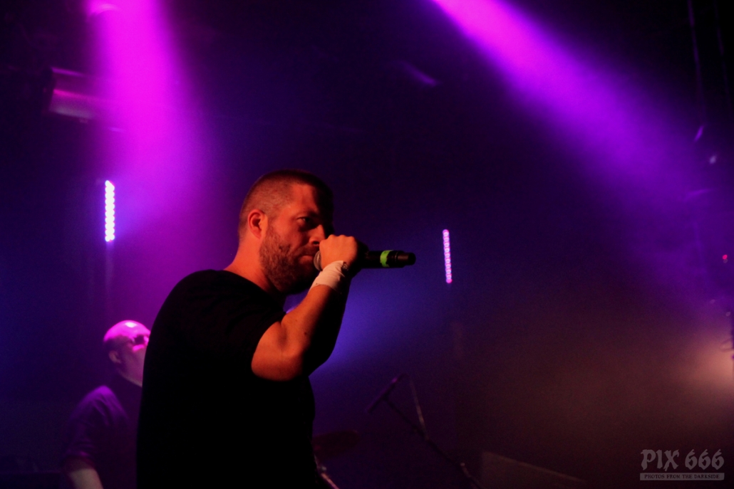 Zum Abschluss des Festivals stand nun die Band in den Startlöchern, die am Längsten auf ihren Auftritt warten musste – das Future Pop Duo Rotersand. „Ich sitze seit drei Stunden wie ein Tiger im Käfig und warte darauf, dass die Show endlich losgeht“ sagte Sänger Rascal. Los ging es mit einem neuen Song – ‚Grey‘ sorgte sofort für tolle Stimmung bei der Headlinershow, die zu einer Art Mitternachtsdisco mutierte – so ziemlich alle haben ununterbrochen getanzt.
