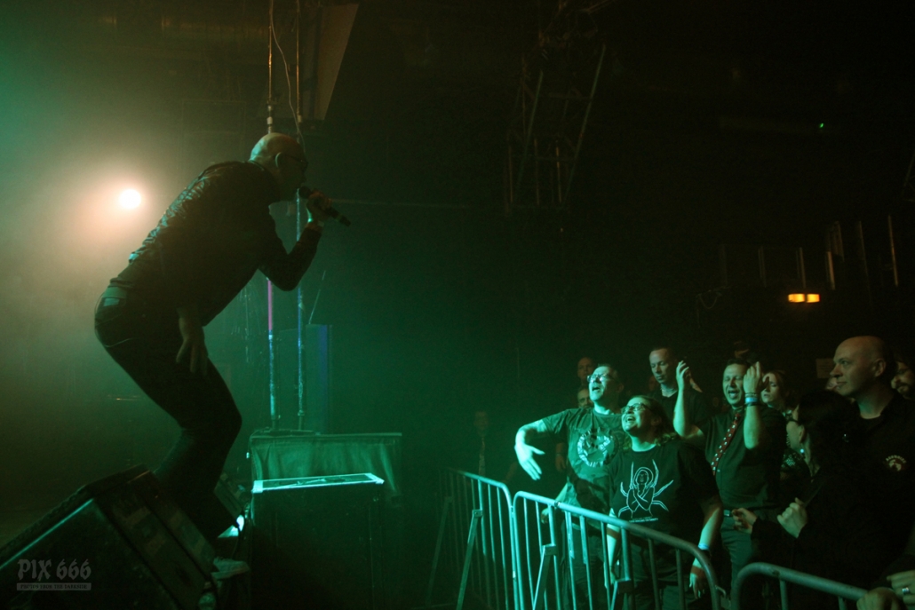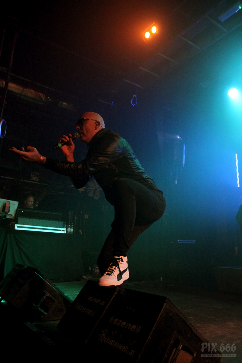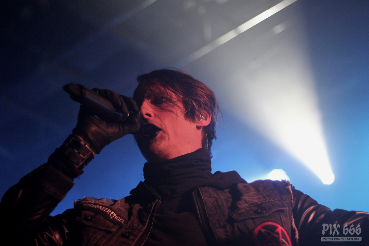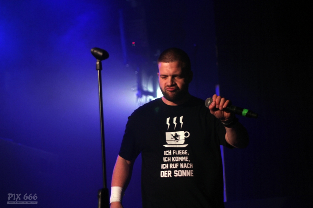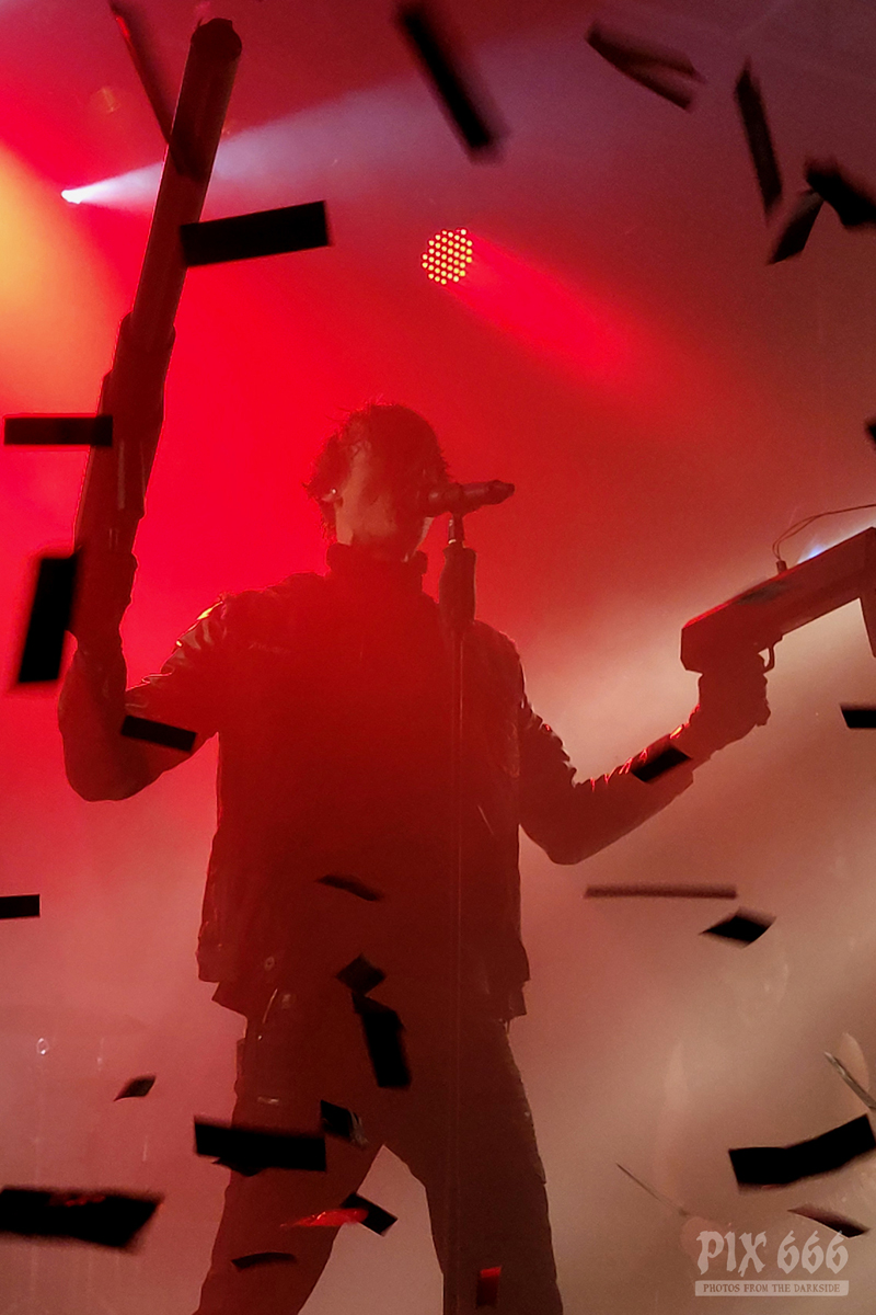 Dann folgte das wunderschöne ‚Schwarze Sonne‘ – einige haben sogar mitgesungen. „Zeigt mir eure Hände – Genau so muss das aussehen“. Danach hielt der Sänger von der Bühne aus Ausschau nach den Königinnen der Nacht. Bei ‚Psycho-Path‘ gab es dann noch einen echten Knalleffekt, als aus zwei Gewehren eine ordentliche Ladung Papierstreifen abgefeuert wurde.