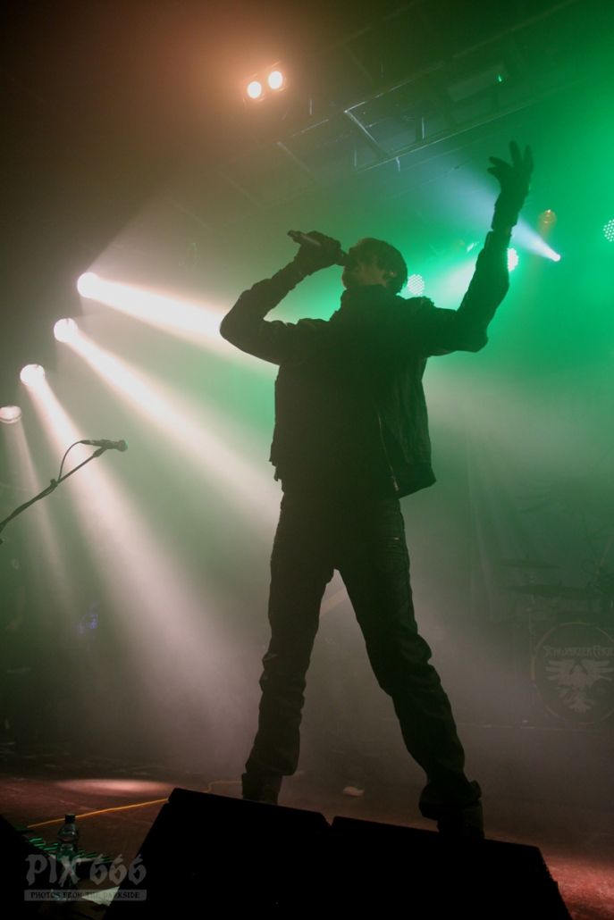 Schwarzer Engel begannen ihre Show mit zwei Songs von ihrem aktuellen Album ‚Sieben‘ „Wien, geht’s euch gut?“ fragte Sänger Dave und die Fans antworteten mit stürmischem Jubel.