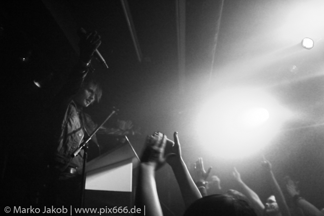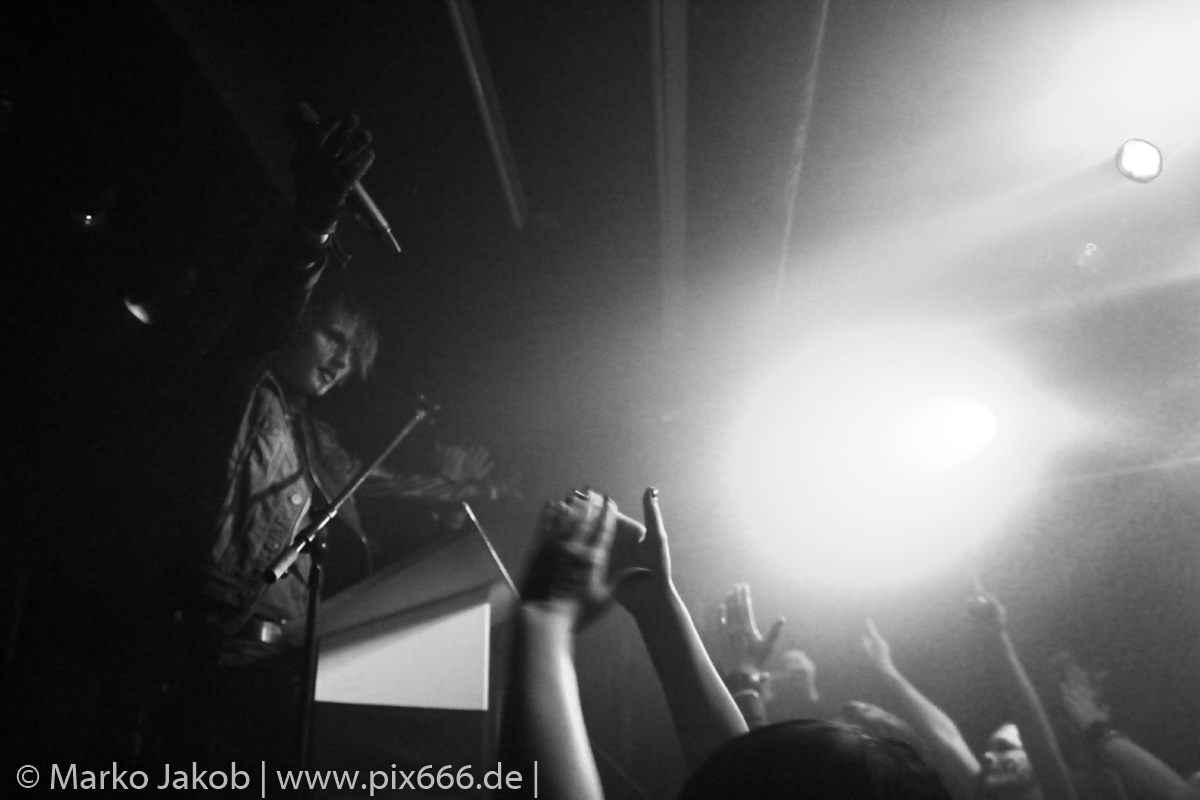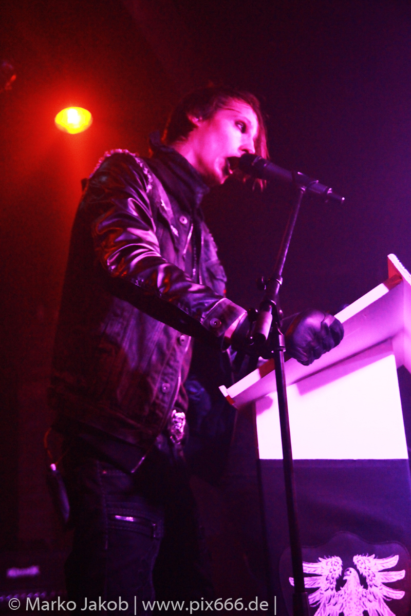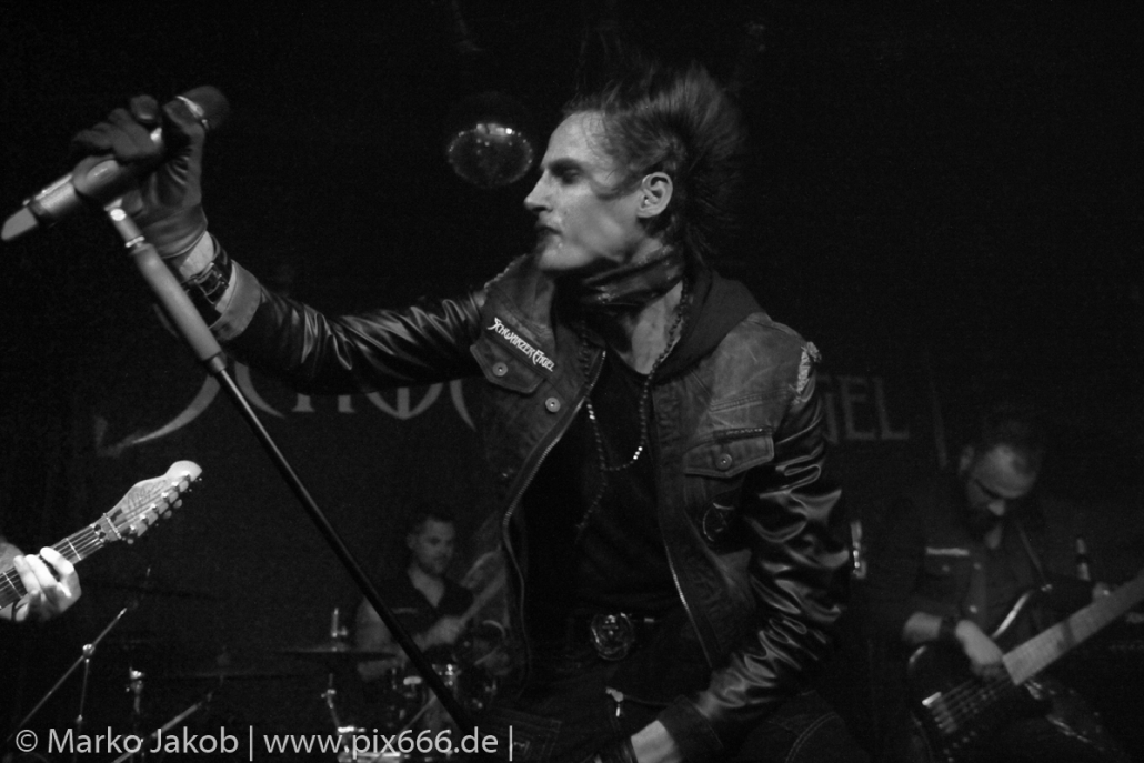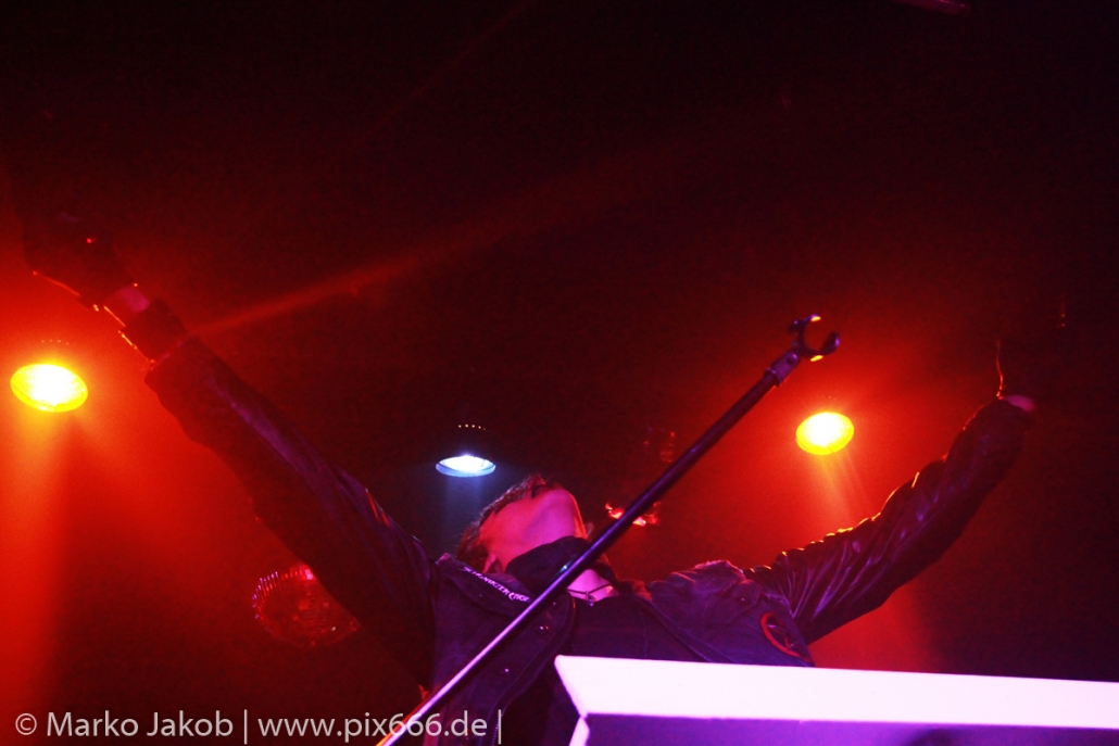 Das Publikum war nun komplett vor der Bühne versammelt, auch die Fans, die nur wegen Schwarzer Engel gekommen waren, wollten nun natürlich das Geschehen aus der Nähe betrachten. „Wollt ihr mit uns feiern?“ fragte Sänger Dave das Berliner Publikum vor dem Song ‚Schwarze Sonne‘ von der gleichnamigen 2013er EP. JA- sie wollten, und zwar alle. Es entwickelte sich ein stimmungsvolles Konzert, wobei sowohl die Band als auch das Publikum Anteil der dieser tollen Atmosphäre hatten.