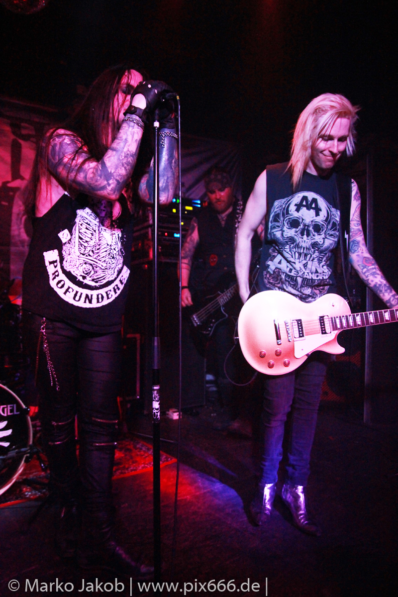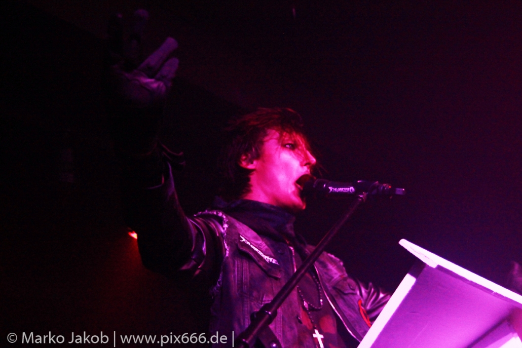 Den Abend eröffneten The Fright aus Thüringen, die ihre Musik selbst als Horrock’n’Roll bezeichnen, eine Mischung aus Horrorpunk und Hardrock im Stil der späten 80er Jahre. Die 2002 gegründete Band hat bisher 5 Alben veröffentlicht. Sie waren unter anderem bereits mit den finnischen Gothic Helden von The 69 Eyes auf großer Deutschlandtour.