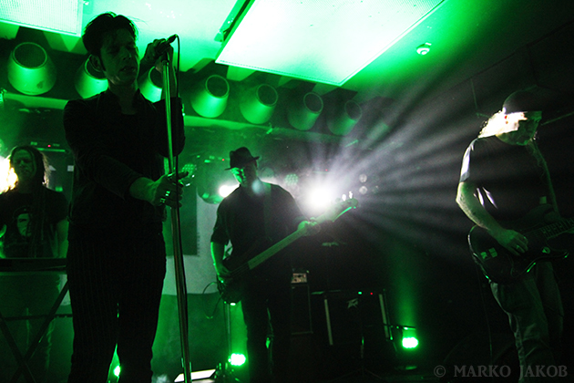 This breath-taking concert took place in almost complete darkness. The sparsely lit stage gave the Goth, Post-Punk and Wave music an appropriately gloomy and mystical setting. Due to the relatively late start of the event, the Bi Nuu was already well filled as the evening got underway and as the show began, the club was nearly completely sold-out.