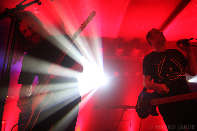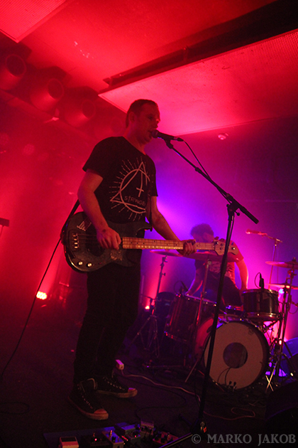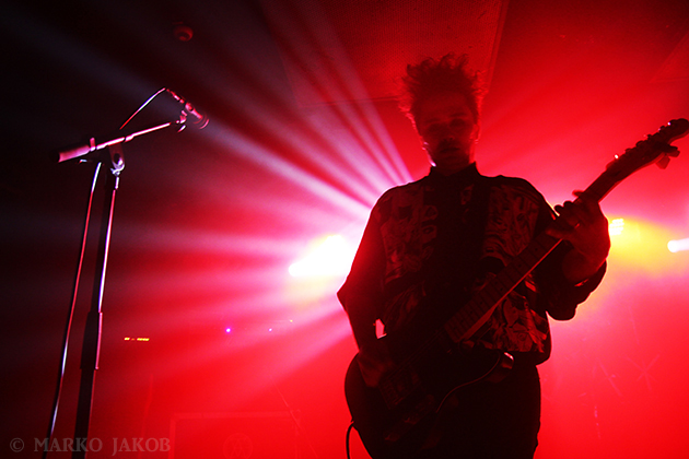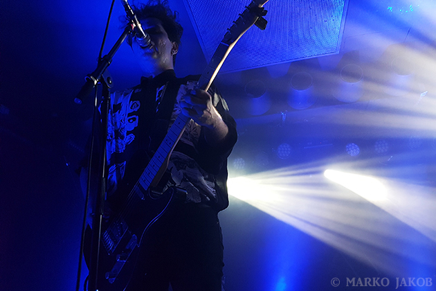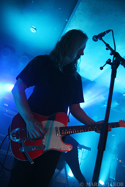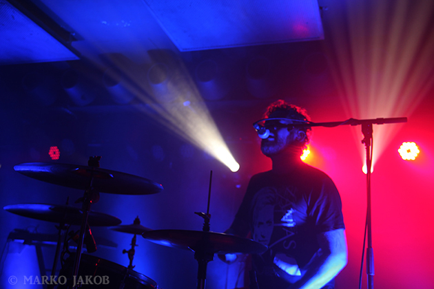 At midnight, Volkan Caner (vocals, guitar) and Doruk Öztürkcan (keyboard) came on stage. Immediately they noticed that not all devices were connected and tried in vain on the dark stage to correct the situation. A fan helped out and gave Doruk his smartphone to use it as a flashlight. Soon the problem was solved and the concert could begin. Crashing drumbeats and the dominant, hypnotic guitars control the sound of the Turks. Of course, the Turkish lyrics make it difficult for most of the audience to sing along. Instead one can immerse themselves completely to the music and dance without distraction, and after a few minutes, almost everyone was doing so. The band played themselves into a frenzy and presented well known songs like ‘Soluk’ and ‘Kasvetli Kutlama’.
