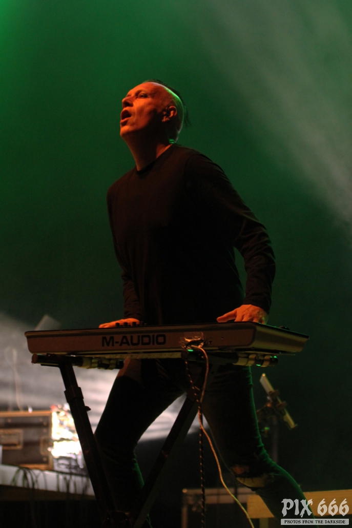 Solar Fake hatten – wie gewohnt – das Publikum sofort im Griff und auf Betriebstemperatur. Auch auf der Bühne war von Beginn an Action. Sänger Sven Friedrich zog sich bereits nach dem dritten Song die Jacke aus, obwohl es sich inzwischen auf etwa 15 Grad abgekühlt hatte.