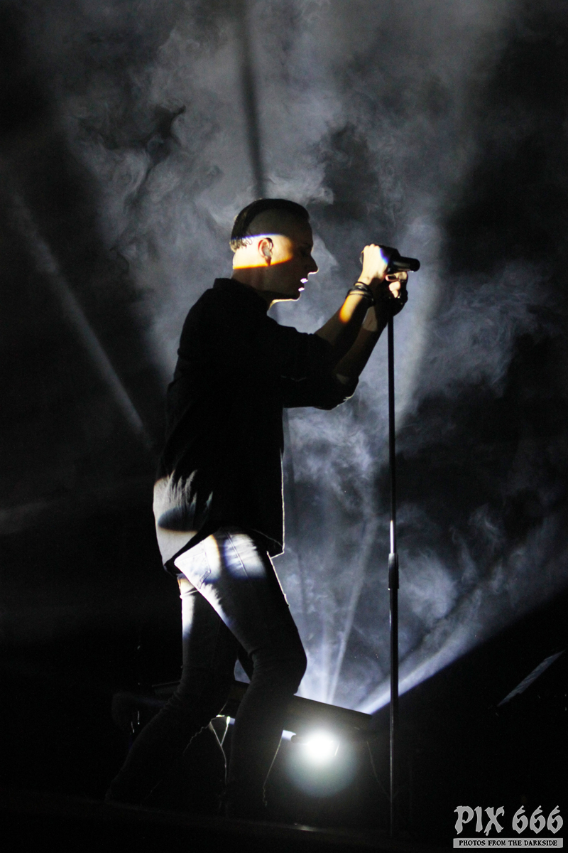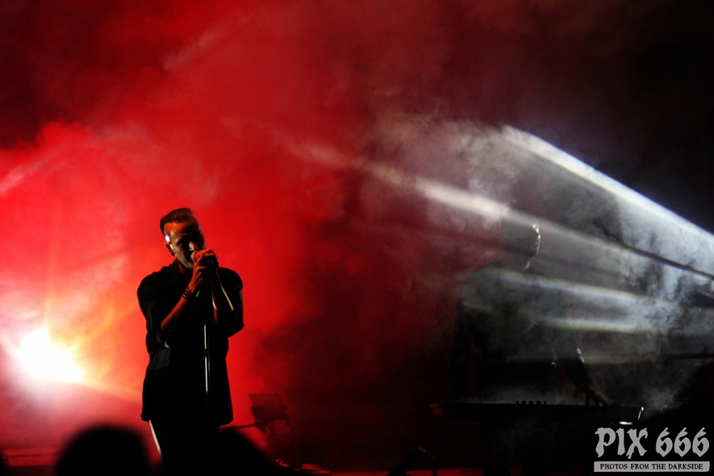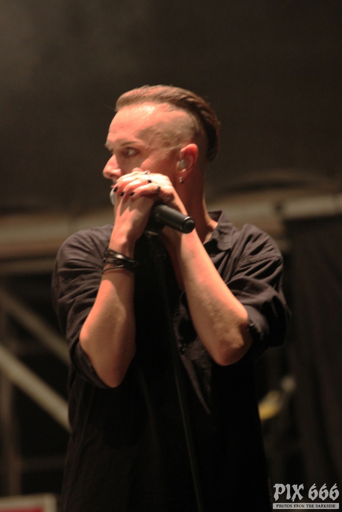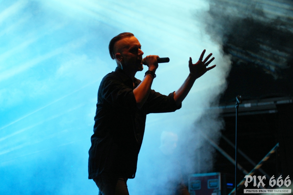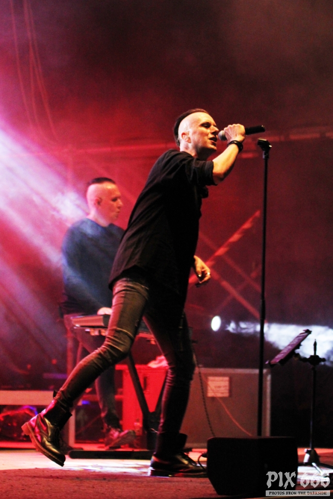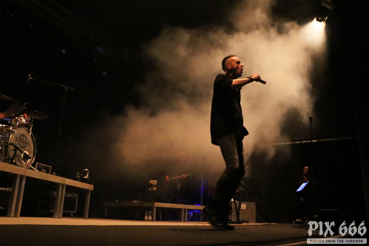 Das Gelände füllte sich nur zögerlich. Aber pünktlich zu Konzertbeginn war die Parkbühne dann ganz in ‚Schwarz‘. Viele Besucher trugen Solar Fake Fanshirts oder die coolen Shadowplay e.V. Jacken – eine gute Wahl, denn nach Sonnenuntergang wurde es spürbar kälter. Die Open Air Veranstaltung war mit knapp über 500 Menschen ausverkauft. Dafür wurden 500 Stühle auf dem Areal verteilt – die Stühle waren in Vierergruppen aufgestellt – mit jeweils genügend Sicherheitsabstand zu allen Seiten.