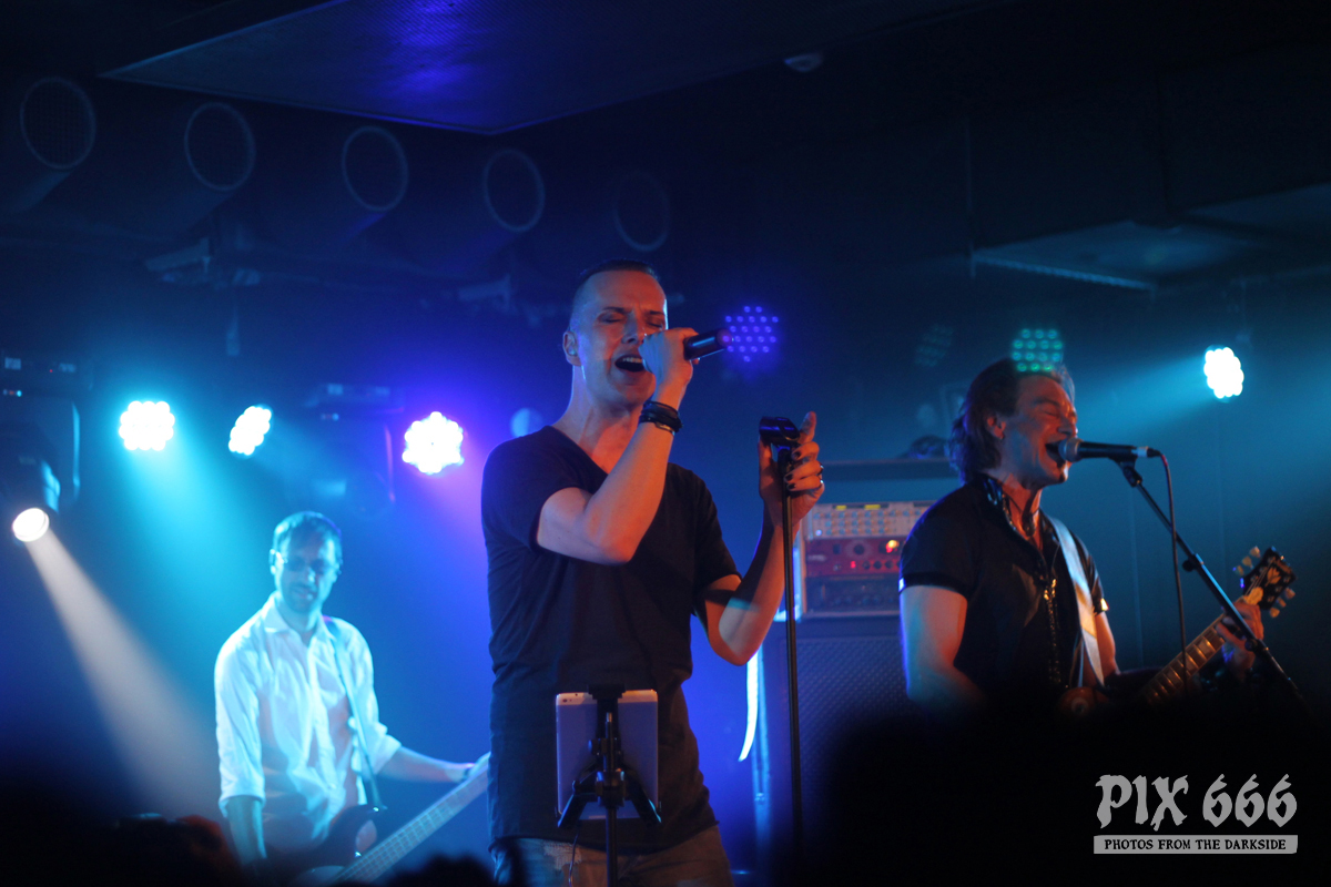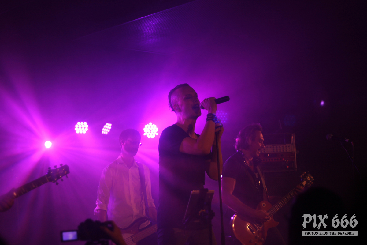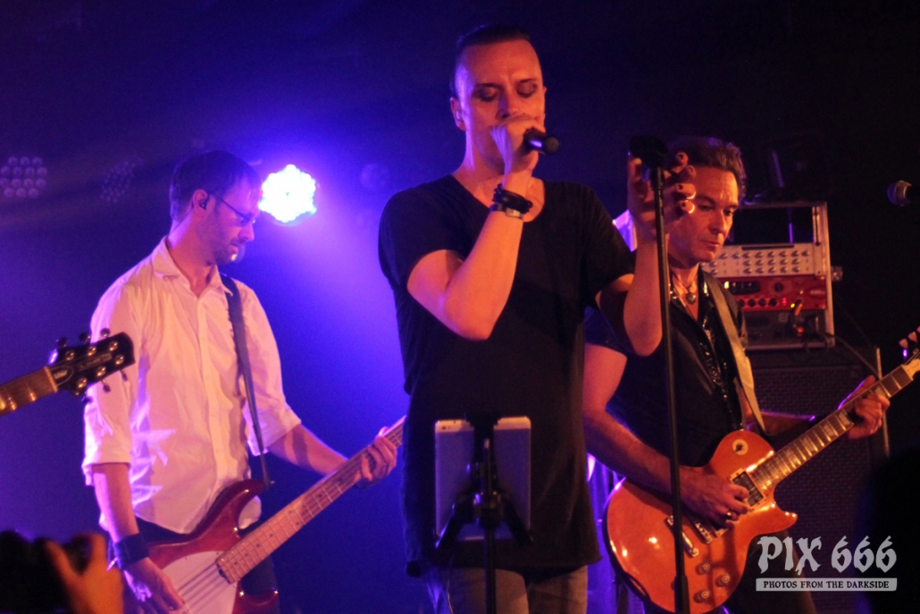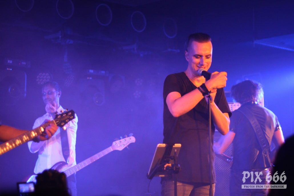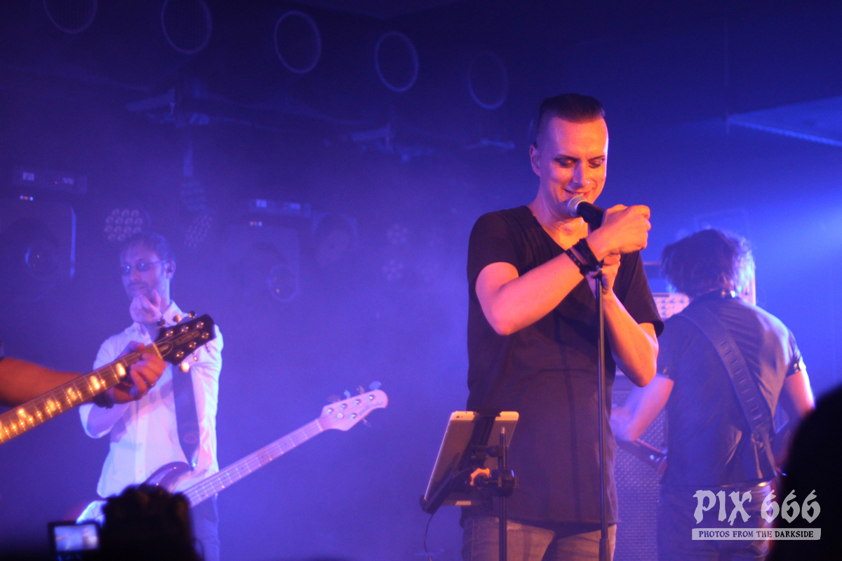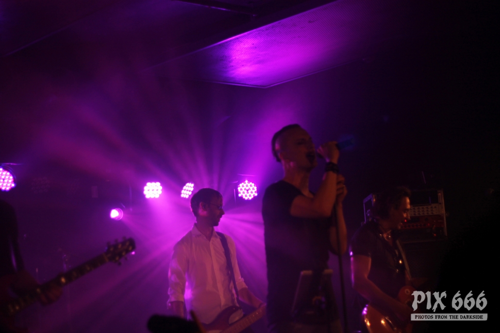 Nach nur 20 Minuten Pause war alles angerichtet für die letzte Band des Abends. Um 22.25 Uhr begannen Solar Fake ihren Aufrtitt. Sven tauschte sein schwarzes Shirt vom Auftritt zuvor gegen ein schwarzes Hemd. Los ging es heute Abend wie zuletzt gewohnt mit ‚Sick of you‘ und ‚Under Control‘. Die Stimmung war bei Solar Fake natürlich ausgelassener als bei Zeraphine. Bei tollem Electrosound lässt es sich nun mal besser springen und tanzen als bei melancholischem Dark Rock. ‚No Apologies‘ spielten Solar Fake heute zum ersten Mal mit Schlagzeug – und es klang so richtig gut. Generell war der Sound in dem kleinen Club auf absolut hohem Niveau. Bei ‚All the Things you say‘ sang Sven in der Mitte die falsche Strophe – aber das kann passieren, wenn man an einem Abend 37 Songs mit zwei verschiedenen Bands singt. Nun war auch bei Solar Fake die Zeit der Live Premieren angesagt – total cool interpretierte Cover von She Wants Revenge und Blink 182. Vielleicht gibt es ja beim nächsten Fanclub Event dann eine Solar Fake Cover CD … ???