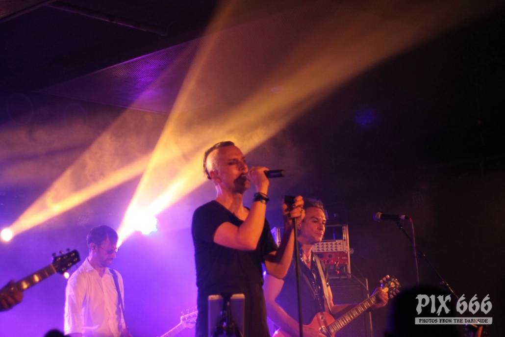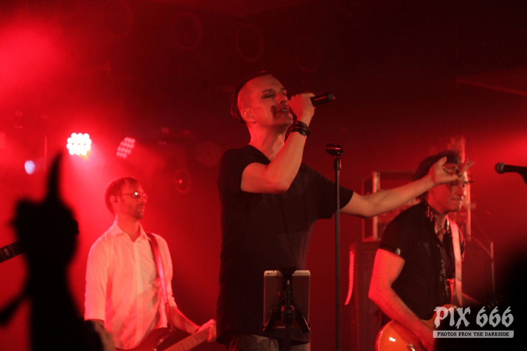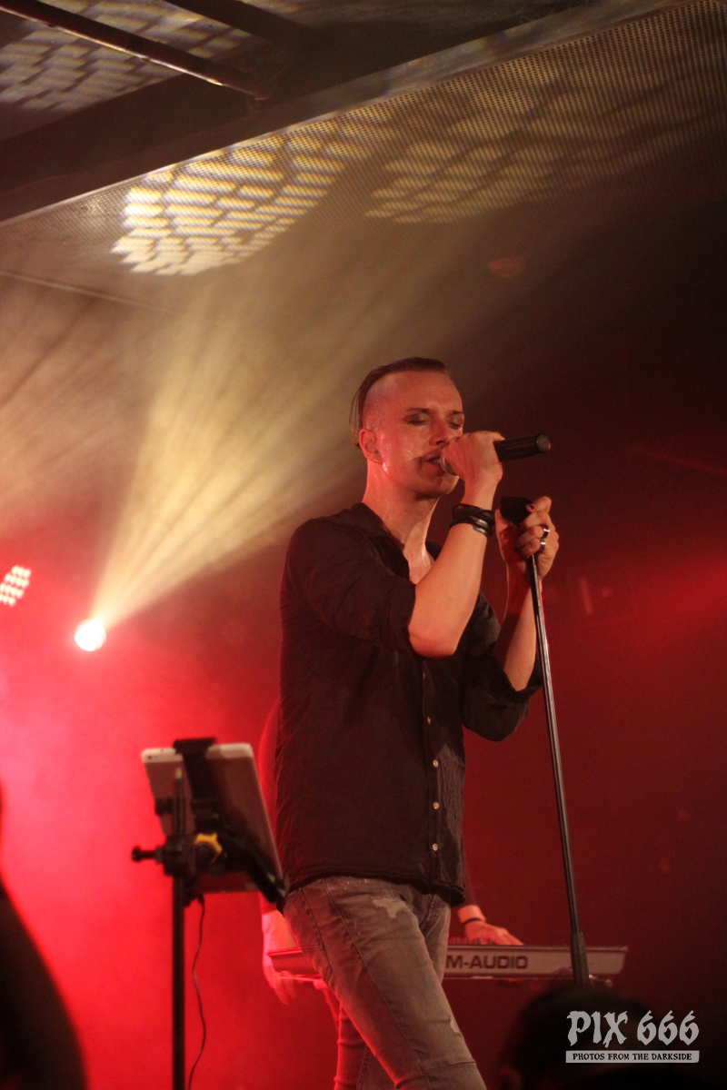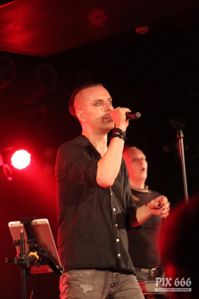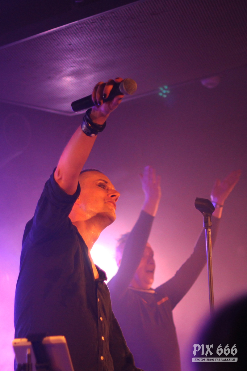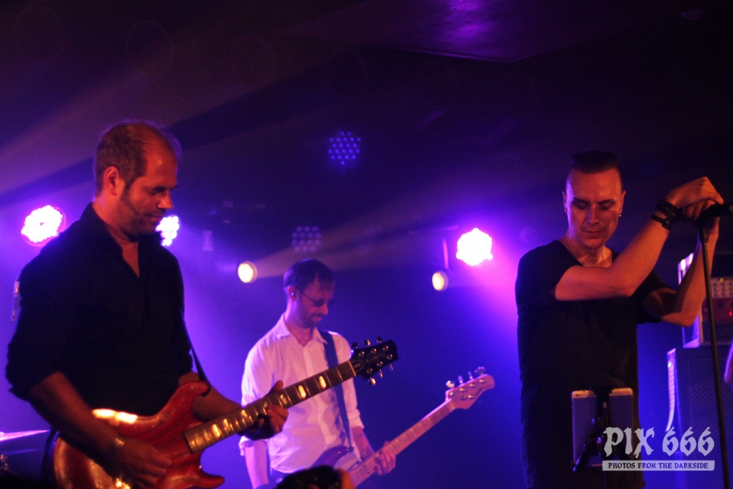 Nach nur 20 Minuten Pause war alles angerichtet für die letzte Band des Abends. Um 22.25 Uhr begannen Solar Fake ihren Aufrtitt. Sven tauschte sein schwarzes Shirt vom Auftritt zuvor gegen ein schwarzes Hemd. Los ging es heute Abend wie zuletzt gewohnt mit ‚Sick of you‘ und ‚Under Control‘. Die Stimmung war bei Solar Fake natürlich ausgelassener als bei Zeraphine. Bei tollem Electrosound lässt es sich nun mal besser springen und tanzen als bei melancholischem Dark Rock. ‚No Apologies‘ spielten Solar Fake heute zum ersten Mal mit Schlagzeug – und es klang so richtig gut. Generell war der Sound in dem kleinen Club auf absolut hohem Niveau. Bei ‚All the Things you say‘ sang Sven in der Mitte die falsche Strophe – aber das kann passieren, wenn man an einem Abend 37 Songs mit zwei verschiedenen Bands singt. Nun war auch bei Solar Fake die Zeit der Live Premieren angesagt – total cool interpretierte Cover von She Wants Revenge und Blink 182. Vielleicht gibt es ja beim nächsten Fanclub Event dann eine Solar Fake Cover CD … ???