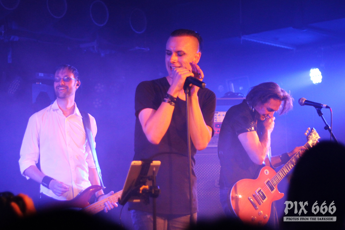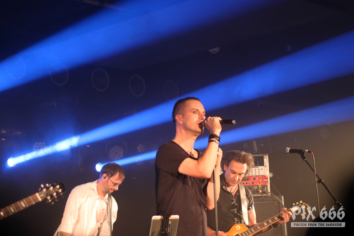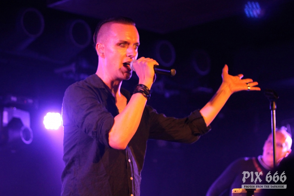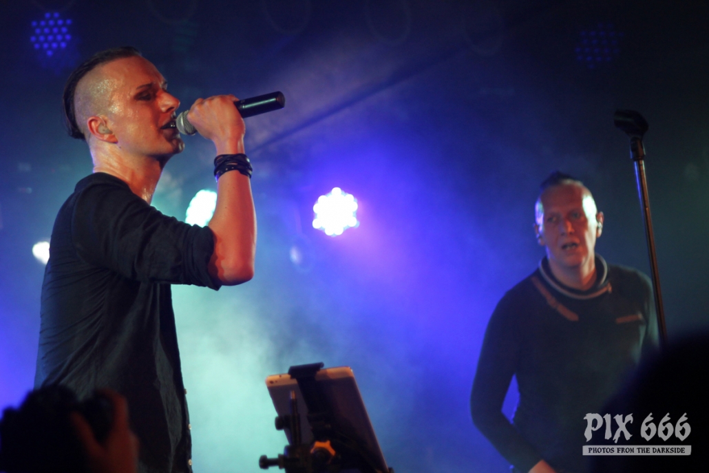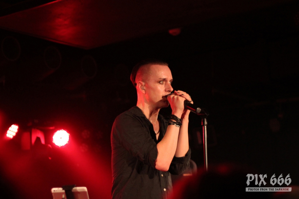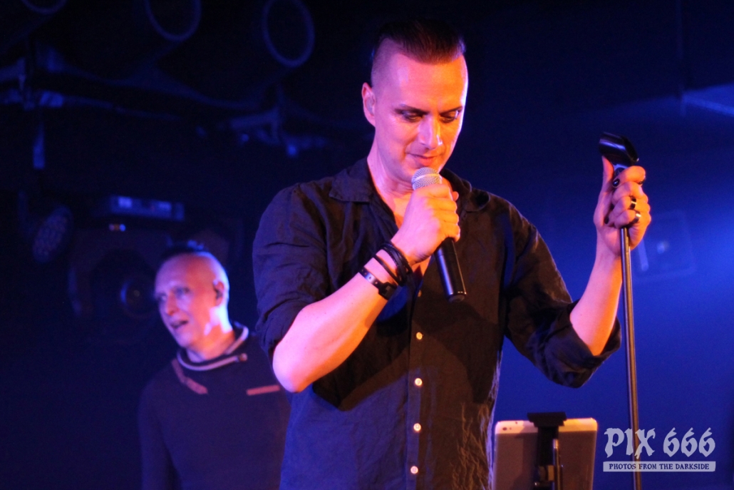 Nach nur 20 Minuten Pause war alles angerichtet für die letzte Band des Abends. Um 22.25 Uhr begannen Solar Fake ihren Aufrtitt. Sven tauschte sein schwarzes Shirt vom Auftritt zuvor gegen ein schwarzes Hemd. Los ging es heute Abend wie zuletzt gewohnt mit ‚Sick of you‘ und ‚Under Control‘. Die Stimmung war bei Solar Fake natürlich ausgelassener als bei Zeraphine. Bei tollem Electrosound lässt es sich nun mal besser springen und tanzen als bei melancholischem Dark Rock. ‚No Apologies‘ spielten Solar Fake heute zum ersten Mal mit Schlagzeug – und es klang so richtig gut. Generell war der Sound in dem kleinen Club auf absolut hohem Niveau. Bei ‚All the Things you say‘ sang Sven in der Mitte die falsche Strophe – aber das kann passieren, wenn man an einem Abend 37 Songs mit zwei verschiedenen Bands singt. Nun war auch bei Solar Fake die Zeit der Live Premieren angesagt – total cool interpretierte Cover von She Wants Revenge und Blink 182. Vielleicht gibt es ja beim nächsten Fanclub Event dann eine Solar Fake Cover CD … ???