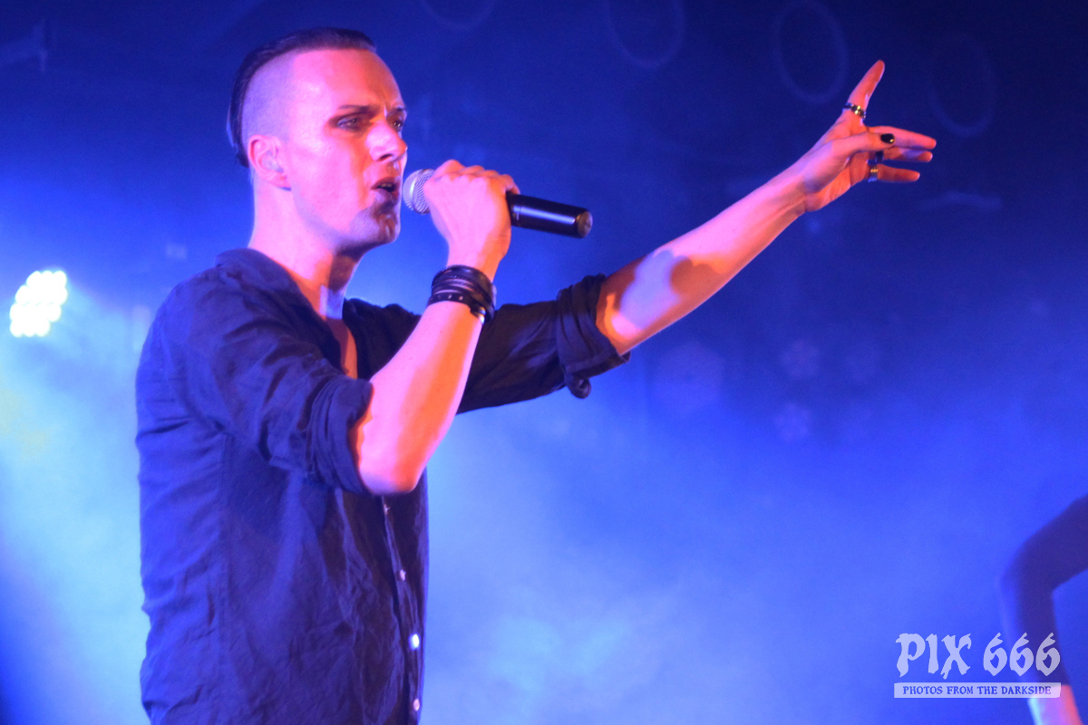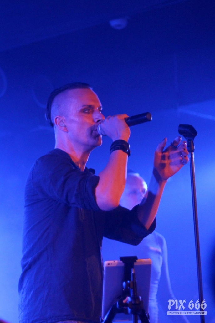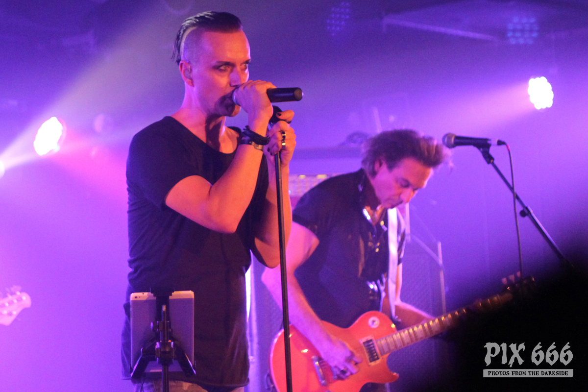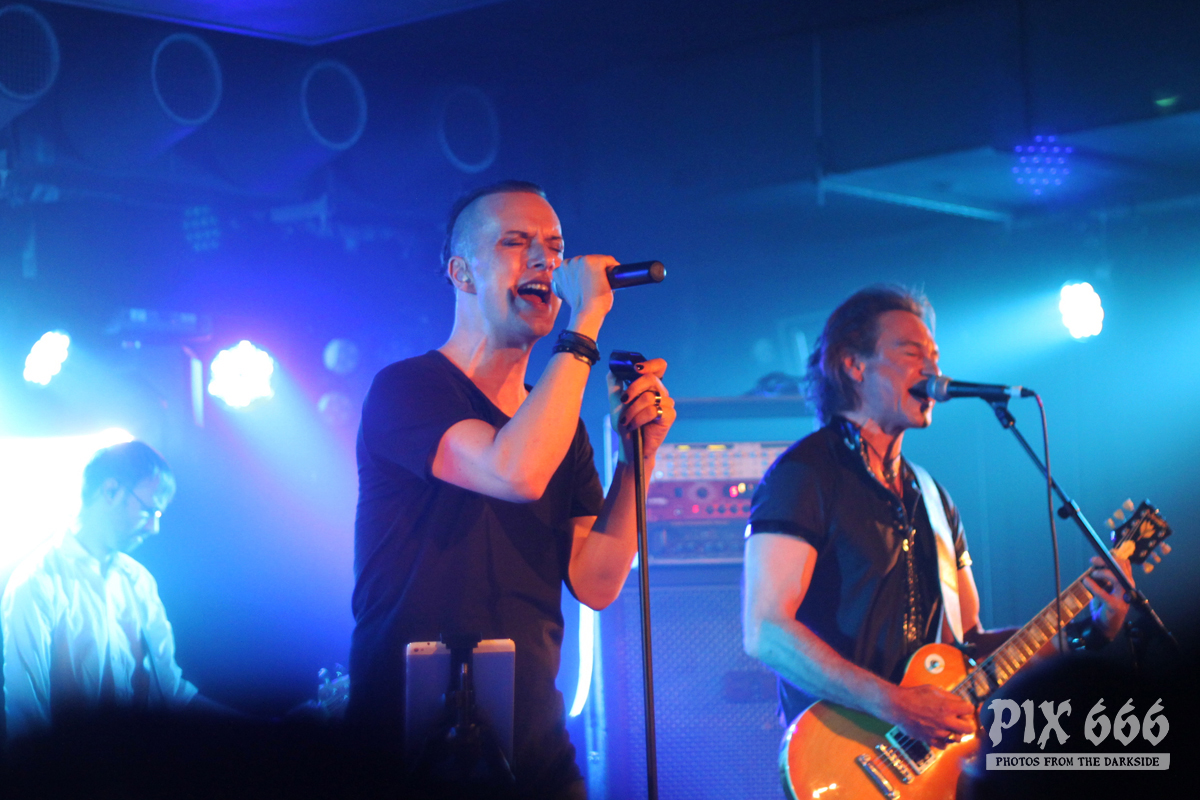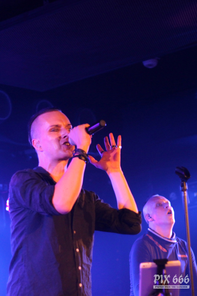 Nach nur 20 Minuten Pause war alles angerichtet für die letzte Band des Abends. Um 22.25 Uhr begannen Solar Fake ihren Aufrtitt. Sven tauschte sein schwarzes Shirt vom Auftritt zuvor gegen ein schwarzes Hemd. Los ging es heute Abend wie zuletzt gewohnt mit ‚Sick of you‘ und ‚Under Control‘. Die Stimmung war bei Solar Fake natürlich ausgelassener als bei Zeraphine. Bei tollem Electrosound lässt es sich nun mal besser springen und tanzen als bei melancholischem Dark Rock. ‚No Apologies‘ spielten Solar Fake heute zum ersten Mal mit Schlagzeug – und es klang so richtig gut. Generell war der Sound in dem kleinen Club auf absolut hohem Niveau. Bei ‚All the Things you say‘ sang Sven in der Mitte die falsche Strophe – aber das kann passieren, wenn man an einem Abend 37 Songs mit zwei verschiedenen Bands singt. Nun war auch bei Solar Fake die Zeit der Live Premieren angesagt – total cool interpretierte Cover von She Wants Revenge und Blink 182. Vielleicht gibt es ja beim nächsten Fanclub Event dann eine Solar Fake Cover CD … ???