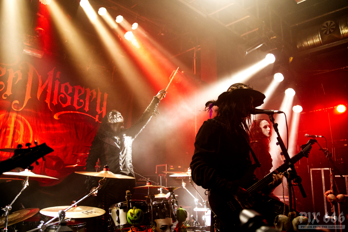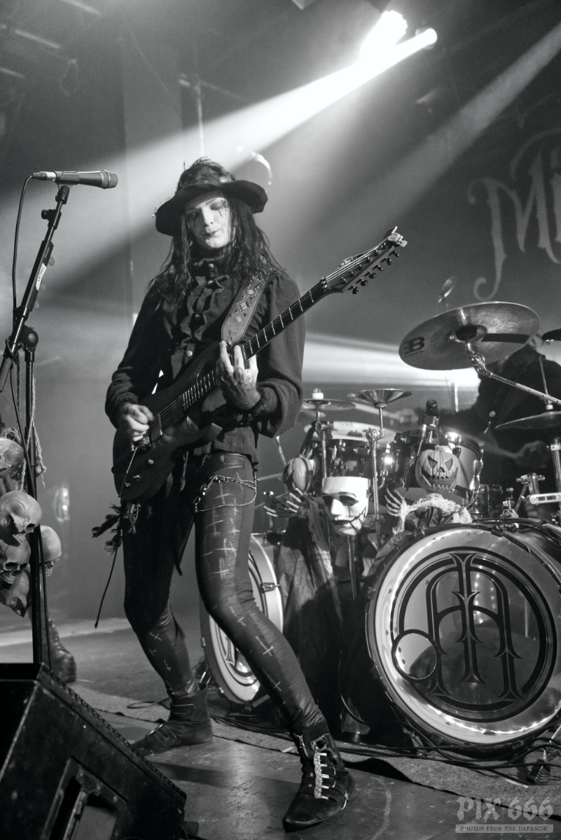 Mister Misery sind längst keine Unbekannten mehr. Die vor fast genau fünf Jahren gegründete Band hat bisher zwei Alben veröffentlicht und war im vergangenen Sommer Gast beim legendären Wacken Open Air. Somit waren am heutigen Abend nicht nur die Headliner ein absolutes Highlight, auch der Support Act lockte bereits mehrere hundert Fans in die ((Szene)) Wien. Die Jungs um den Sänger Harley Vendetta legten nach dem Intro mit dem Song ‚Mister Hyde‘ vom aktuellen Album los. Auch bei den folgenden vier Titel spielten sich die Schweden quer durchs 2021er Album ‚A Brighter Side Of Death‘. In den ersten Reihen ging inzwischen richtig die Post ab, nur einige Leute, die ganz hinten standen, warteten glaube ich ausschließlich auf The 69 Eyes.