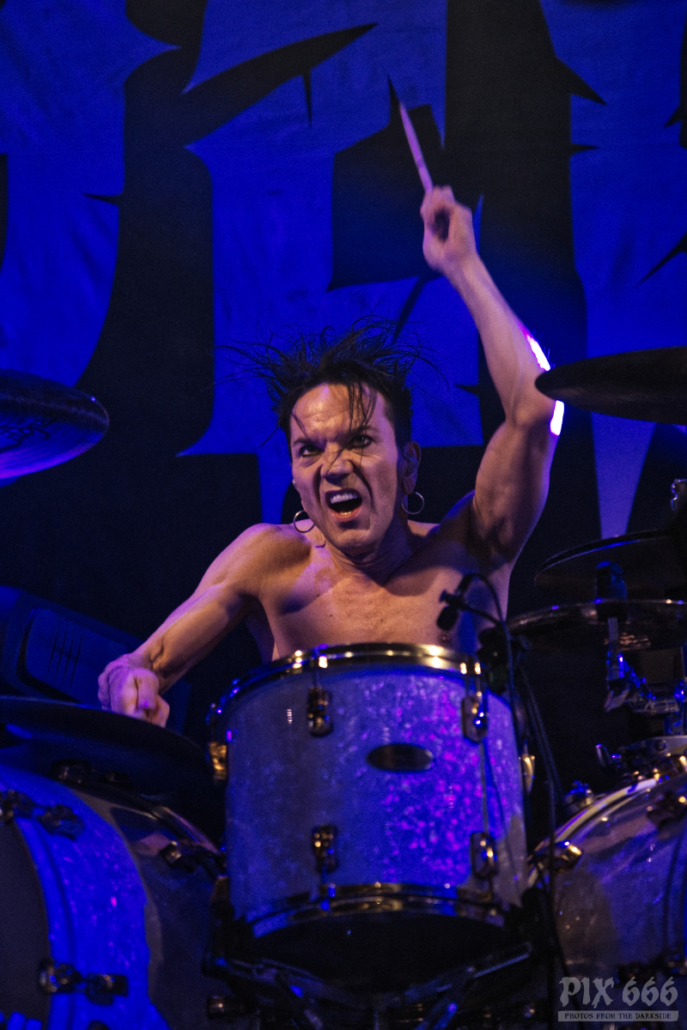 Jyrki bedankte sich dann bei den Fans und sagte, „ihr habt euch kein bisschen verändert – ich seid hier die verdammten Vampire“. Kein The 69 Eyes Konzert ohne ‚Lost Boys‘ – der Song mit der meisten Energie sollte den Schlusspunkt des Abends bilden. Jyrki stieg während des Songs ins Publikum und sang zusammen mit den Fans. Er bahnte sich einen Weg bis ganz nach hinten und verschwand aus dem Club. Ein Blick um die Ecke zeigte, dass der Sänger zum Merch abgebogen war und dort schon auf die Fans wartete. The 69 Eyes boten eine grandiose Show mit einem furiosen Finale.